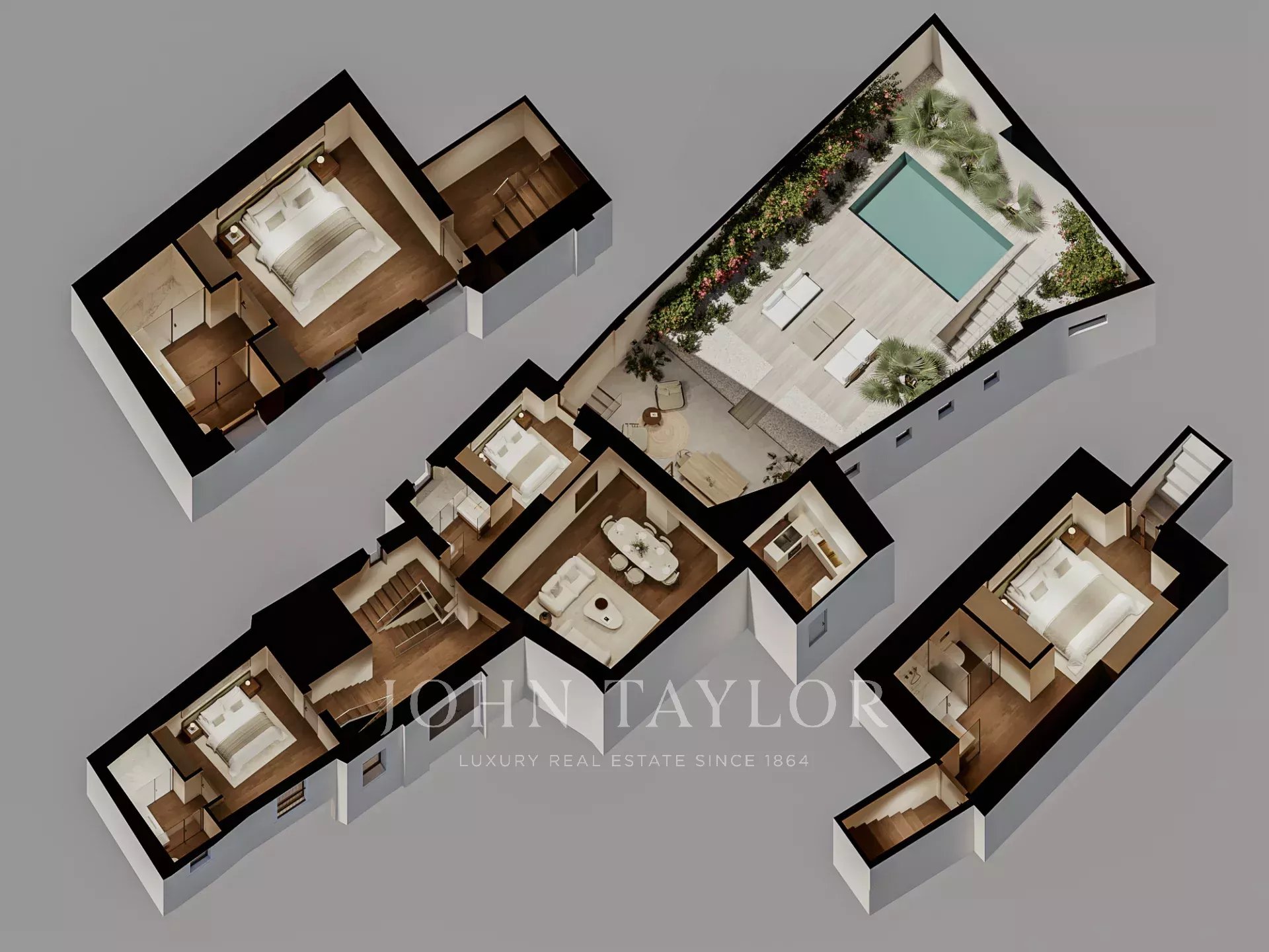 L'edificio è in fase di ristrutturazione completa, il cui completamento è previsto per settembre 2026. Il progetto si concentra sulla conservazione della storia e sull'adattamento al comfort moderno, allo stile e alla vita di alto livello. Questo appartamento duplex al piano terra offre 323 m2 con quattro camere da letto, ciascuna con bagno privato, un bagno per gli ospiti, un soggiorno/sala da pranzo con accesso diretto all'area esterna, una cucina separata su misura con elettrodomestici Miele, anch'essa con accesso al portico esterno coperto, al giardino paesaggistico e alla piscina privata per un totale di 112 m2. L'appartamento è dotato di riscaldamento a pavimento, aria condizionata centralizzata, doppi vetri, pavimenti in rovere e un ripostiglio separato.
