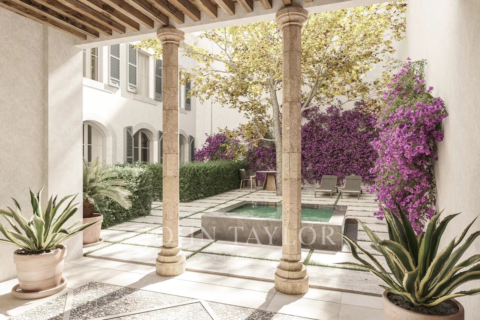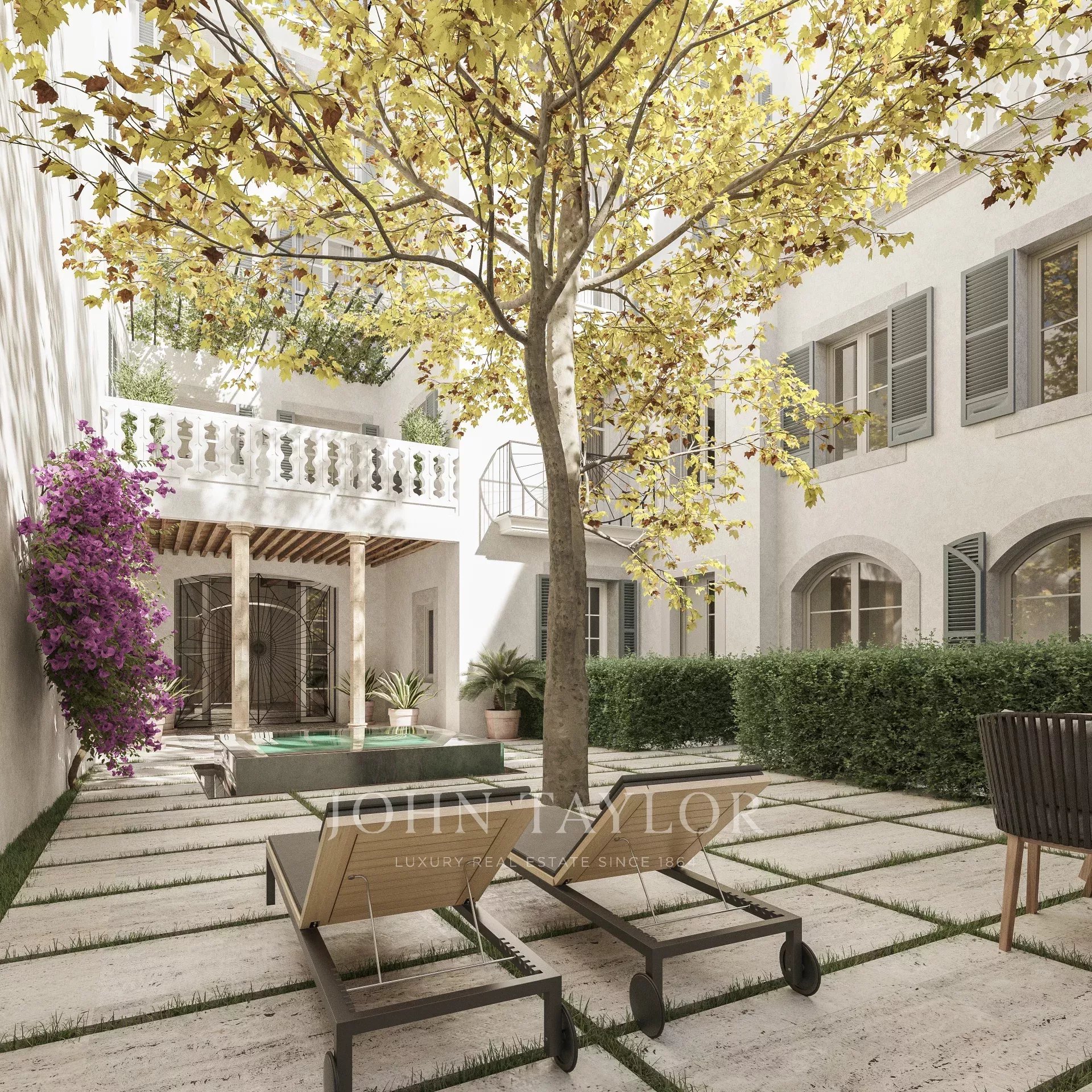 Questo nuovo favoloso progetto, attualmente in costruzione, sarà trasformato in una splendida residenza di 5 unità costruita intorno a un giardino privato. Questo elegante complesso è parte integrante della Città Vecchia e offre una vera e propria oasi lussureggiante di pace, ombra estiva e tranquillità (in inverno, i grandi alberi di latifoglie perdono le foglie e lasciano passare la luce del sole). Le unità variano da appartamenti con giardino, duplex e triplex, da 81 m2 a 190 m2, con 1, 2 e 3 camere da letto. Sia le unità al piano terra che quelle all'ultimo piano sono dotate di spazi esterni, ideali per la ricreazione o il puro relax. Il progetto si concentra sul ripristino dell'edificio al suo splendore originale con tutti i vantaggi della vita moderna, come soffitti con travi a vista, finestre a tutta altezza, riscaldamento a pavimento, cucine completamente attrezzate con elettrodomestici Siemens, aria condizionata centralizzata e sistema di automazione domestica, e l'utilizzo di materiali nobili come la pietra naturale di Binissalem e i pavimenti in rovere.