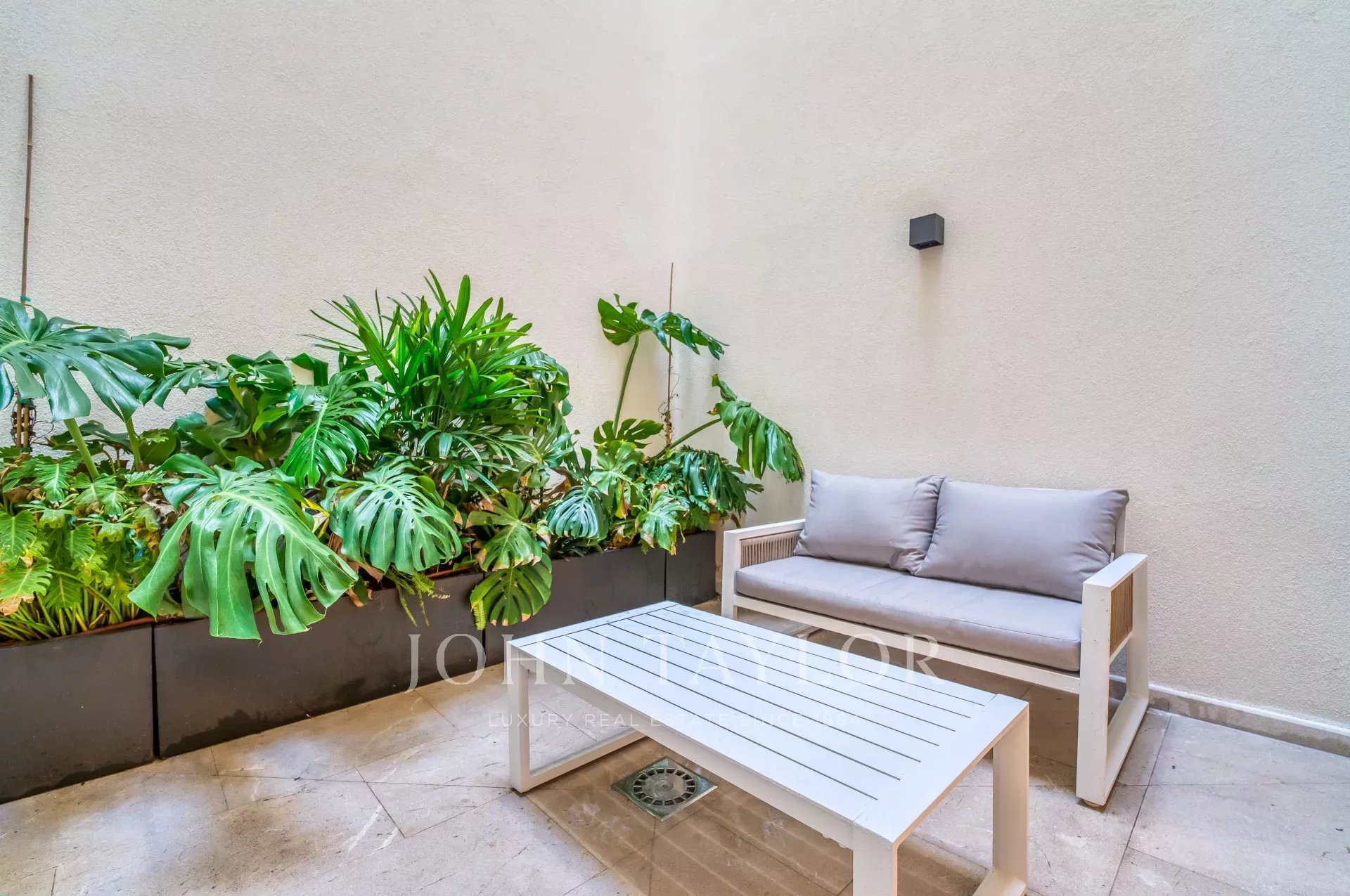 Situato in una tranquilla Plaza nel cuore del centro storico di Palma, questo lussuoso appartamento è composto da due camere da letto, tre bagni (due en-suite, un bagno per gli ospiti), un accogliente patio e una terrazza privata sul tetto. Mentre l'ingresso offre una pianta aperta per la zona cucina/pranzo/soggiorno, le camere da letto creano una tranquilla privacy sul retro dell'appartamento e dell'edificio. Le grandi finestre personalizzate, i pavimenti in legno e i toni caldi degli interni assicurano un ambiente accogliente in tutte le stanze. Un vero punto di forza della proprietà è la terrazza privata sul tetto per godersi il sole o intrattenere gli amici. Per il vostro comfort, l'intero appartamento è dotato di riscaldamento a pavimento, aria condizionata e domotica e offre un ripostiglio al piano d'ingresso dell'edificio. Se necessario, è possibile acquistare in aggiunta un parcheggio in garage nello stesso edificio.