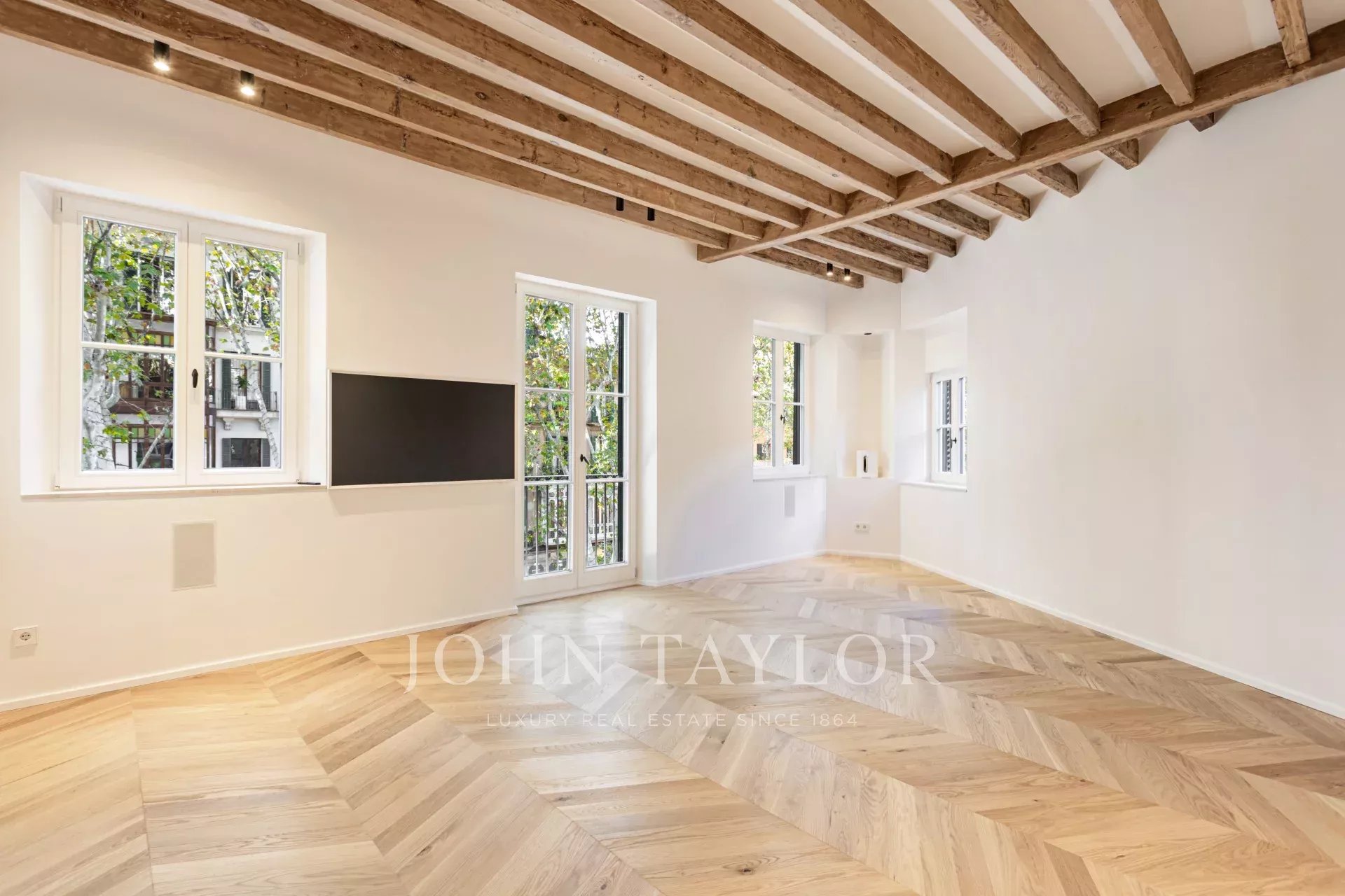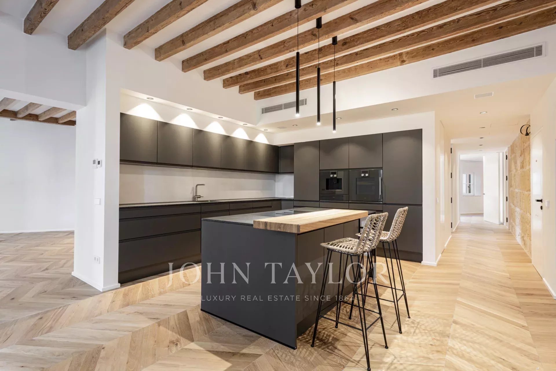 Scoprite questo eccezionale appartamento di lusso, situato nel cuore del centro storico di Palma, sulla rinomata Rambla. Completata nell'ottobre 2024, questa proprietà combina l'eleganza moderna con il fascino storico, offrendo un accesso diretto al vivace stile di vita di Palma, ai ristoranti e allo shopping. L'appartamento vanta una spaziosa disposizione a pianta aperta con cucina completamente attrezzata, sala da pranzo e soggiorno. Le finestre a tutta altezza inondano lo spazio di luce naturale, mettendo in risalto gli splendidi pavimenti in legno di quercia naturale, le pareti originali in pietra marés e le autentiche travi in legno. Questa miscela di design moderno e materiali tradizionali crea un'atmosfera calda e accogliente. La proprietà comprende tre camere da letto e tre bagni, due dei quali sono ensuite. La camera da letto principale offre uno spogliatoio privato, garantendo comfort e lusso. Una delle caratteristiche principali è la terrazza comunitaria con vista mozzafiato sulla Rambla alberata, ideale per rilassarsi o intrattenere gli ospiti. Possibilità di affittare un posto auto a pochi metri di distanza. Questa splendida proprietà combina perfettamente finiture di alto livello con il fascino del centro storico di Palma, rendendola una scelta ideale per chi cerca una vita di lusso in una posizione privilegiata.