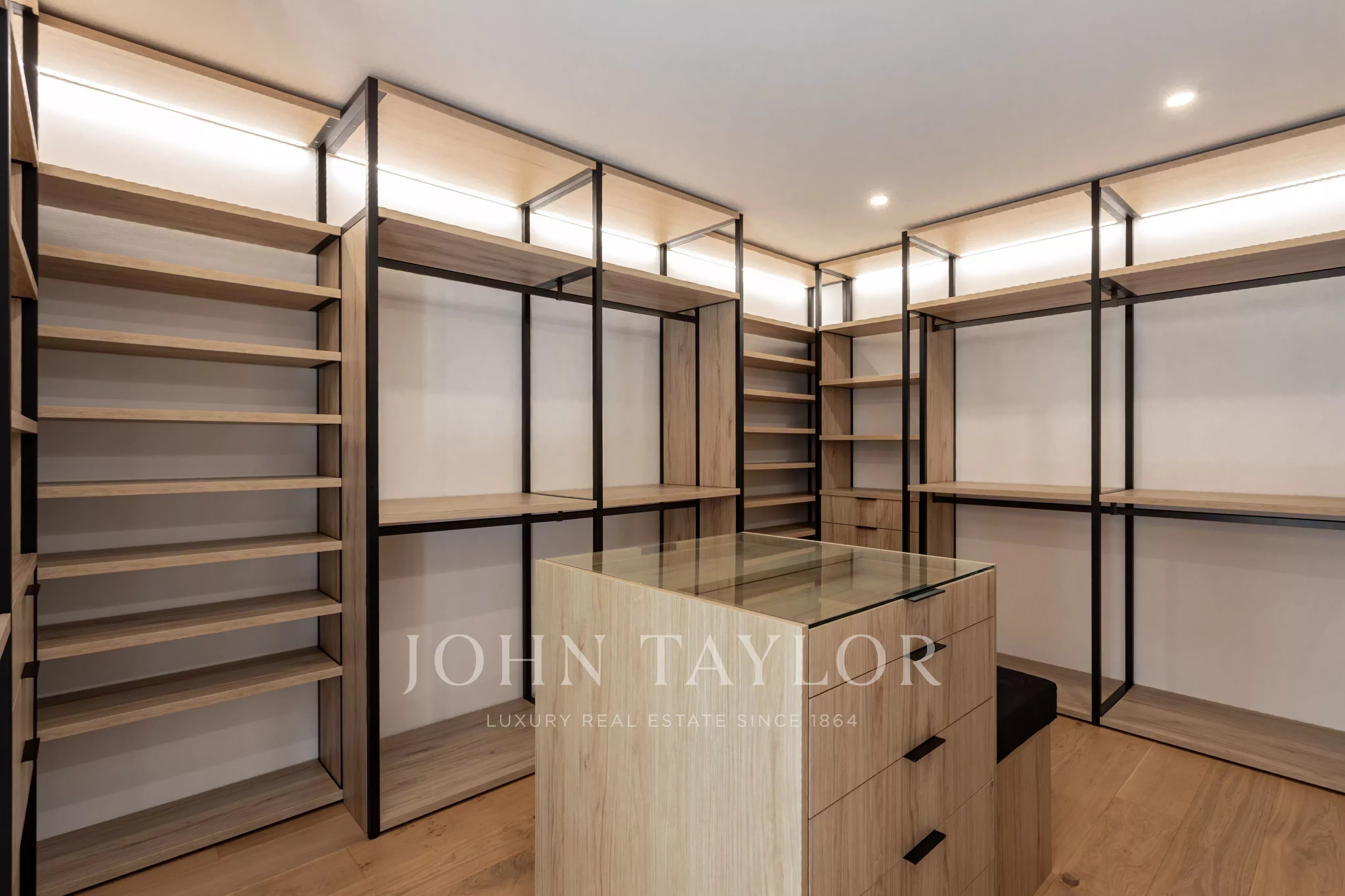 Adiacente alla cucina c'è una zona lavanderia separata con ulteriore spazio di archiviazione. La suite del proprietario è un rifugio privato, con un'ampia camera da letto, un bagno en-suite e due zone spogliatoio. L'appartamento comprende anche altre due camere da letto, un bagno completo e un bagno per gli ospiti.