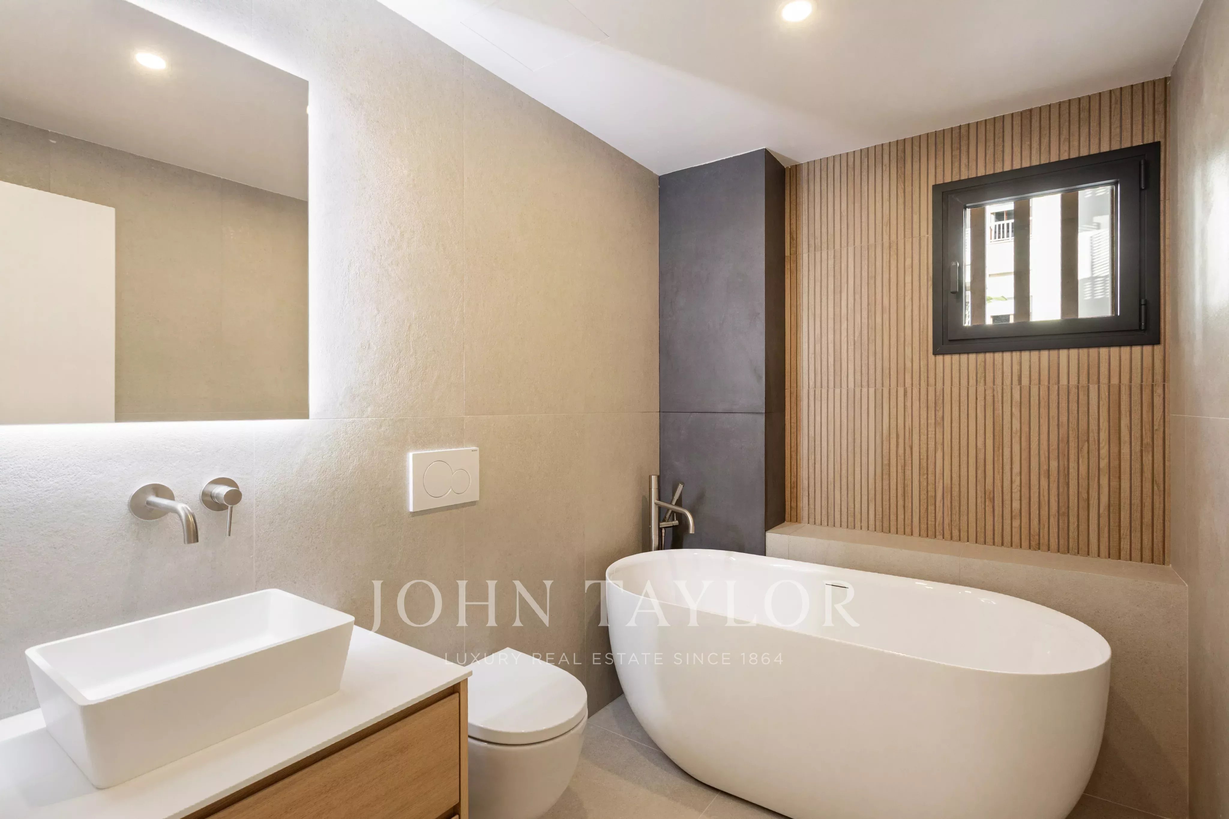 Questo fantastico appartamento completamente ristrutturato si trova in una delle zone più ambite e confortevoli del centro storico, a pochi passi da Jaime III, pur rimanendo libero dal traffico e dal rumore. La nuova disposizione prevede uno spazioso open space con soggiorno, sala da pranzo e cucina di design completamente attrezzata, completa di armadietti per i vini. Questo luminoso spazio abitativo si affaccia senza soluzione di continuità su una terrazza coperta di 30 m², ideale per pranzare all'aperto e rilassarsi.