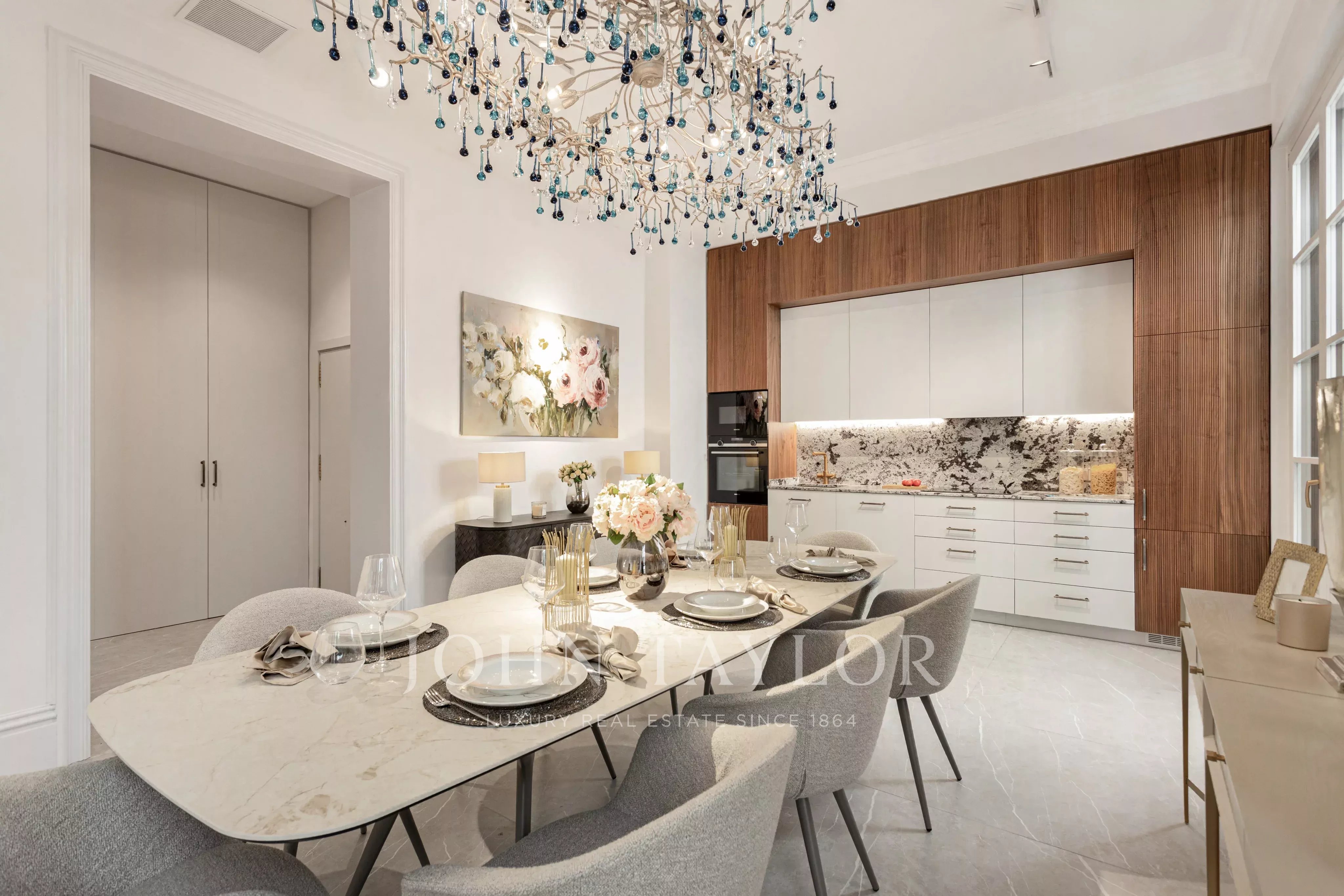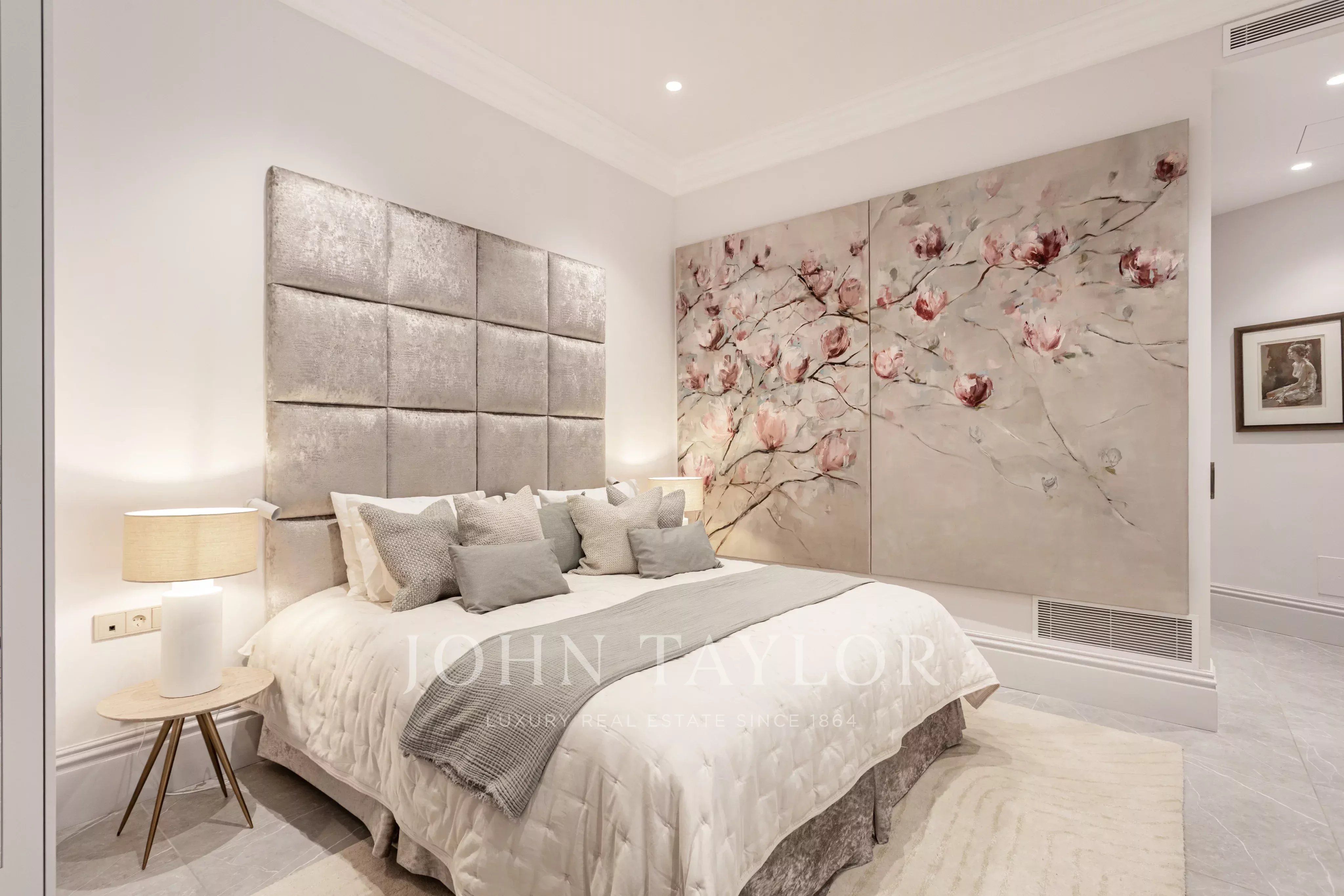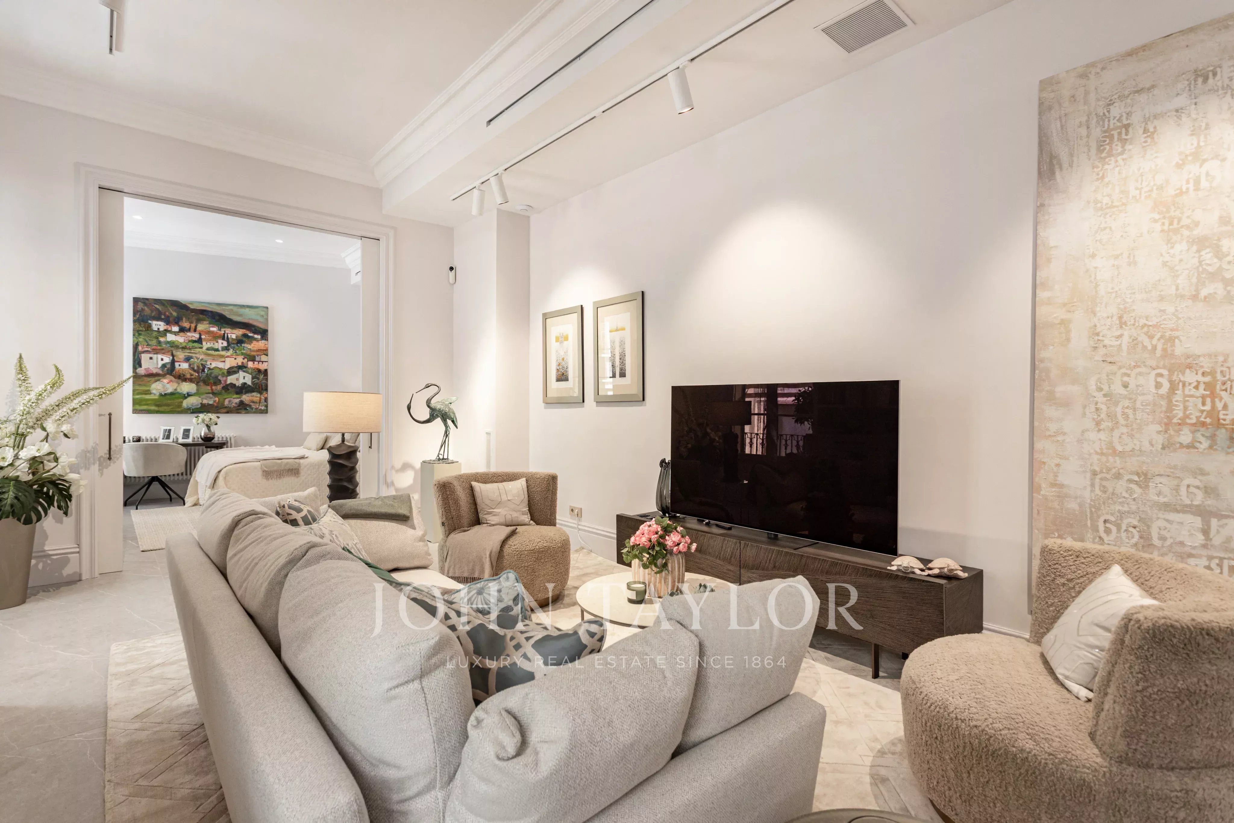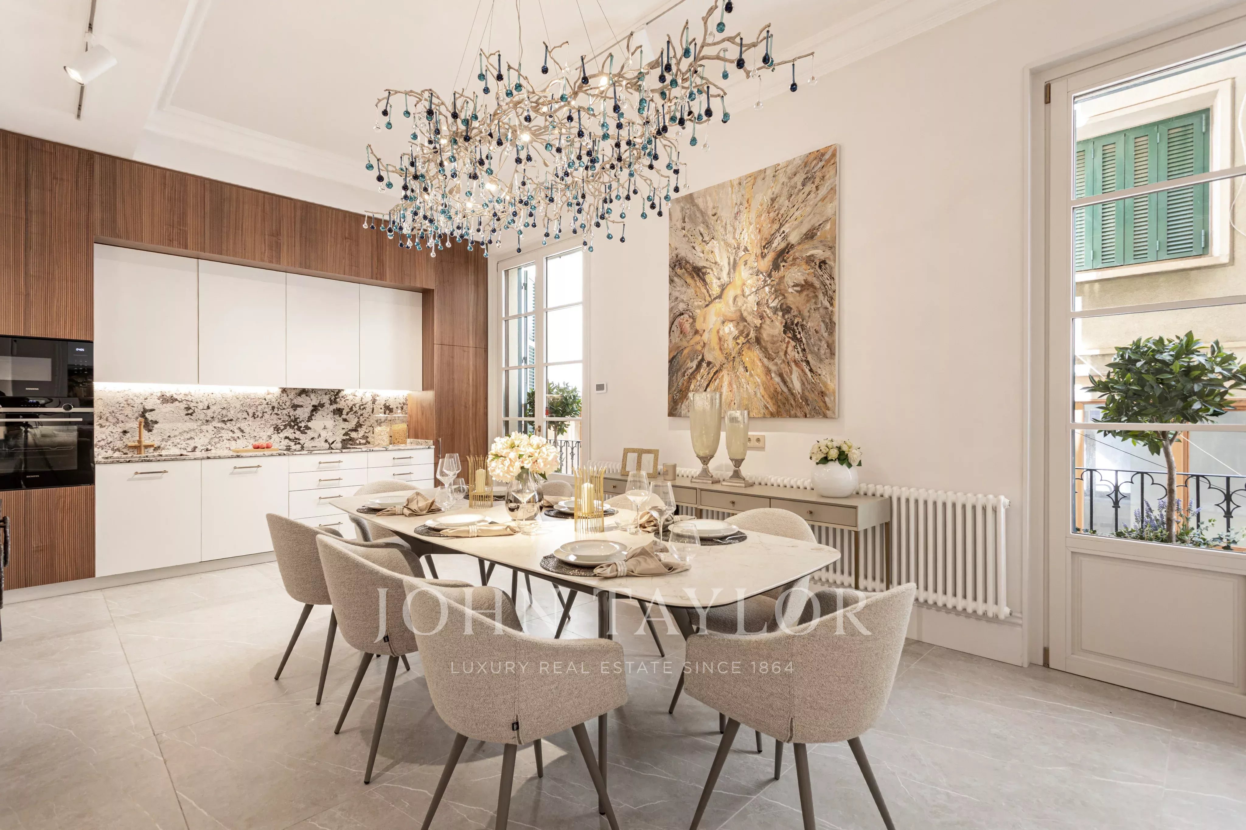 Offre un design d'interni impeccabile, una cucina a pianta aperta molto spaziosa completamente attrezzata, zona pranzo e soggiorno eleganti, con molta luce naturale grazie alle sue finestre dal pavimento al soffitto. Un incantevole balcone francese aggiunge eleganza e carattere all'appartamento. L'appartamento dispone di due camere da letto grandi, ognuna con bagno privato. Inoltre, c'è un ufficio e una lavanderia. Una perfetta combinazione di comfort, stile e posizione privilegiata.