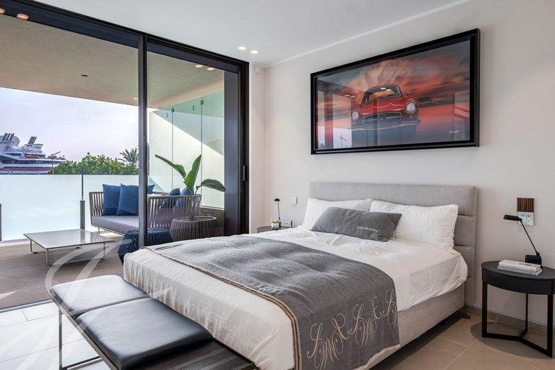 Questo nuovo e lussuoso complesso residenziale fronte mare si trova a pochi minuti dal centro della città. La moderna ed elegante struttura asimmetrica del complesso è stata appositamente progettata per offrire una spettacolare vista sul mare e sul porto e molta luce naturale, oltre a garantire a ogni appartamento una privacy assoluta. In totale ci sono 12 appartamenti e 3 attici duplex, ognuno con parcheggio privato nel garage sotterraneo. L'edificio offre anche una vasta gamma di aree comuni: diverse terrazze, piscine esterne e interne, una spa con area fitness e una sauna. Questo elegante appartamento al secondo piano dispone di 2 camere da letto con impressionante vista sul mare, una cucina di design di alta qualità, 2 bagni e molto spazio di archiviazione, oltre a una spaziosa terrazza coperta. Le immagini incluse sono dell'appartamento e dell'edificio.