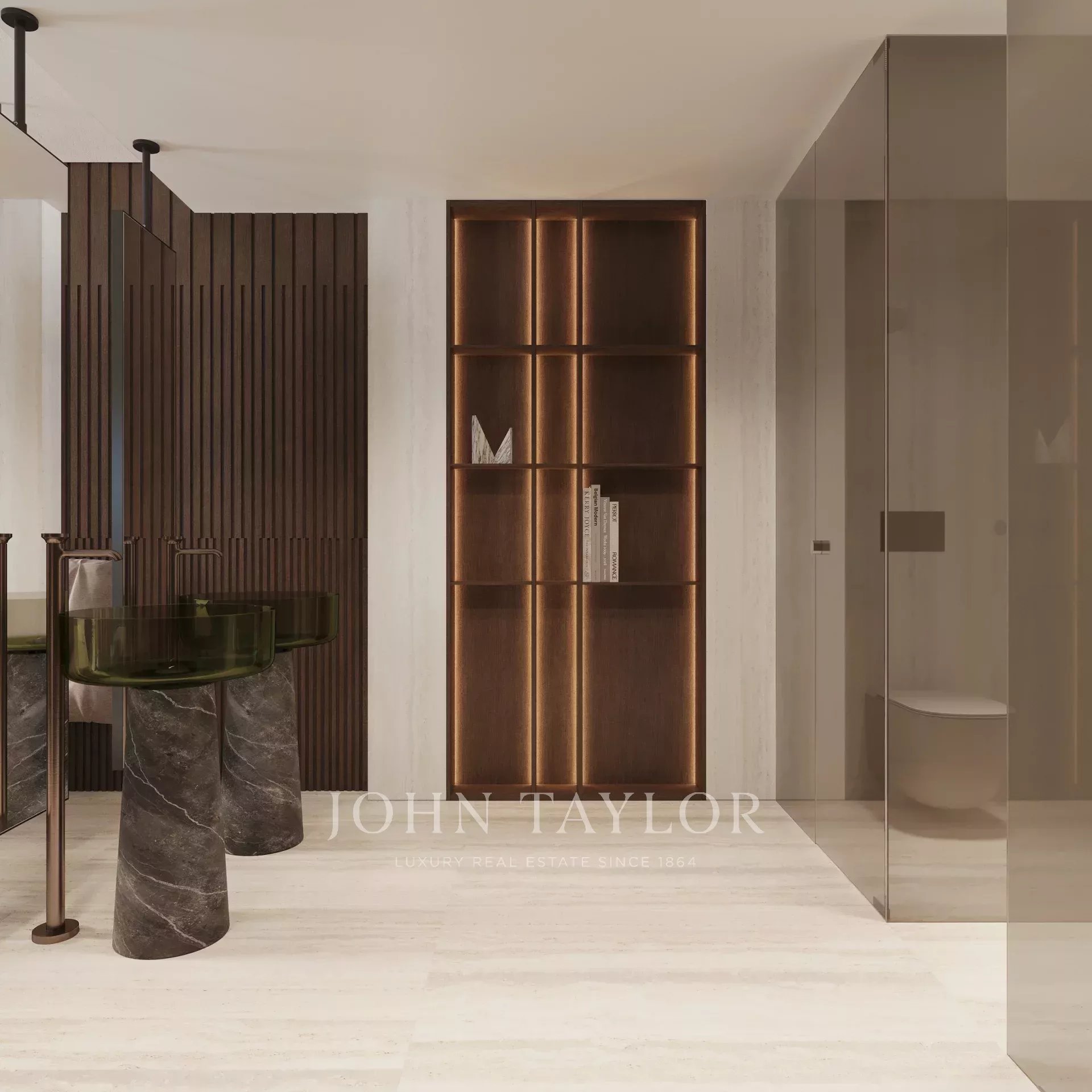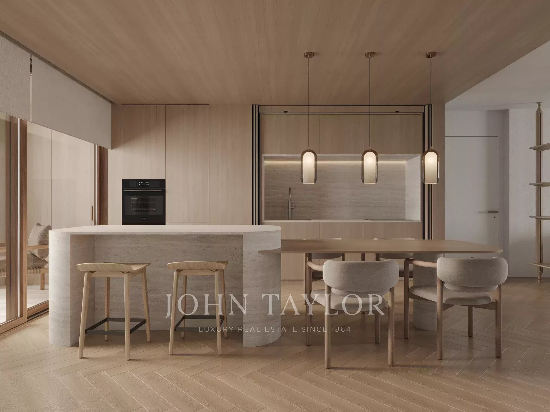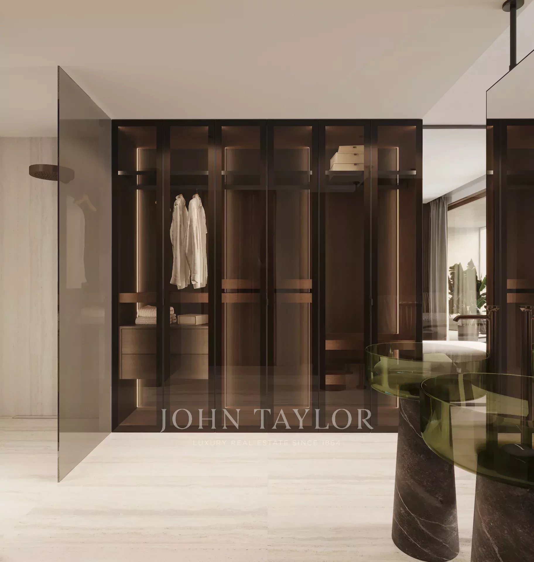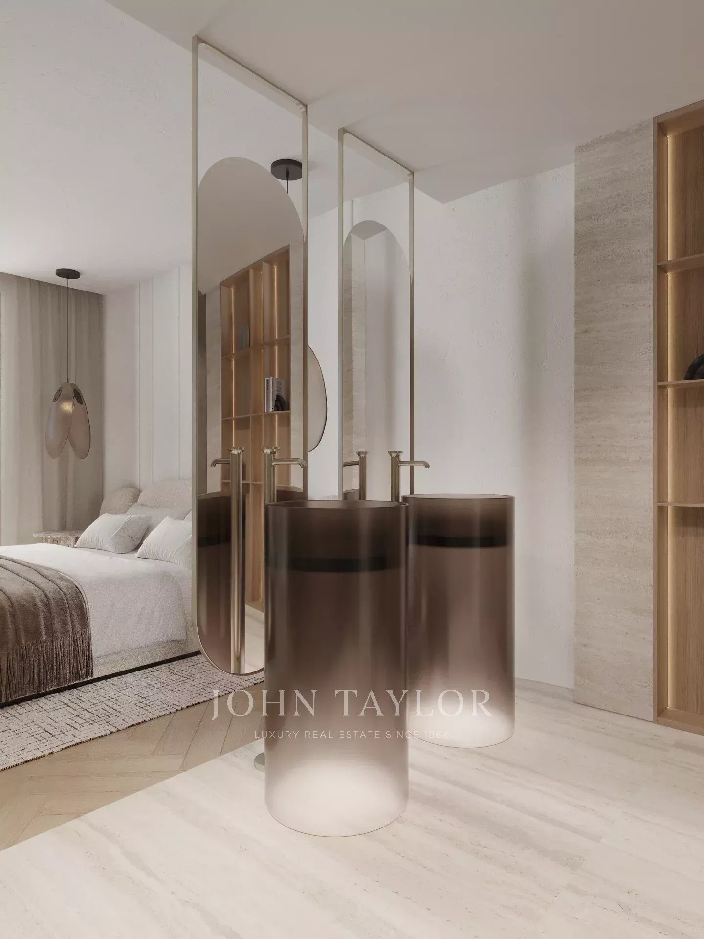 Questo fantastico triplex offre un piano terra con cucina, sala da pranzo e soggiorno a pianta aperta completamente attrezzati, da cui si accede alla terrazza esterna, oltre a due camere da letto con bagno privato. Il livello inferiore comprende una magnifica camera da letto principale con cabina armadio e bagno privato, un'altra camera da letto e un bagno. Un'area di intrattenimento completa questo piano. Il piano inferiore comprende un garage per due auto e un ripostiglio. La superficie interna totale è di 261 m² con una terrazza di 26 m².