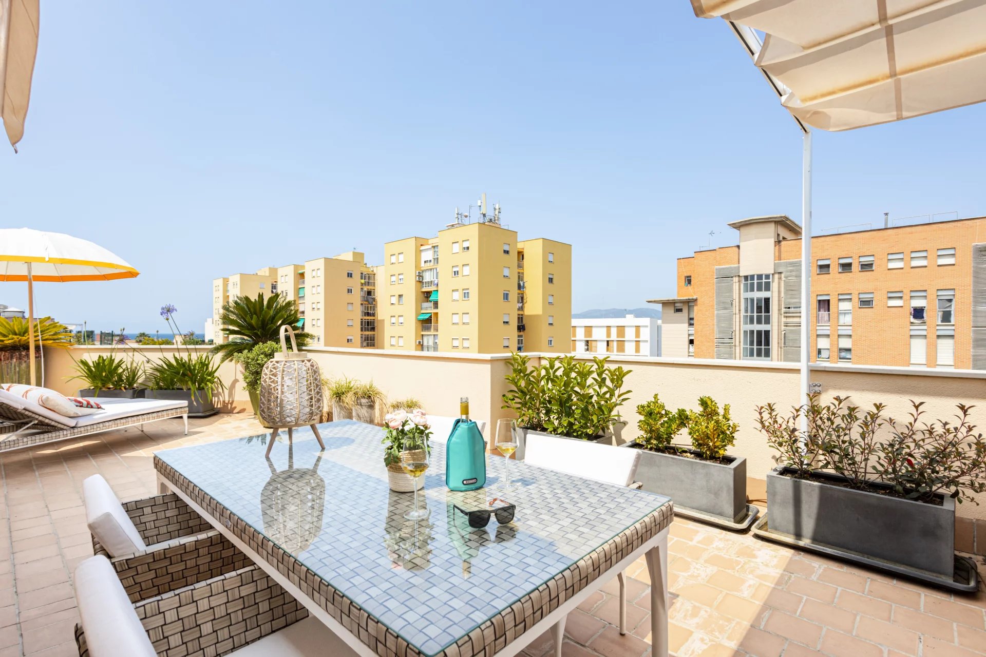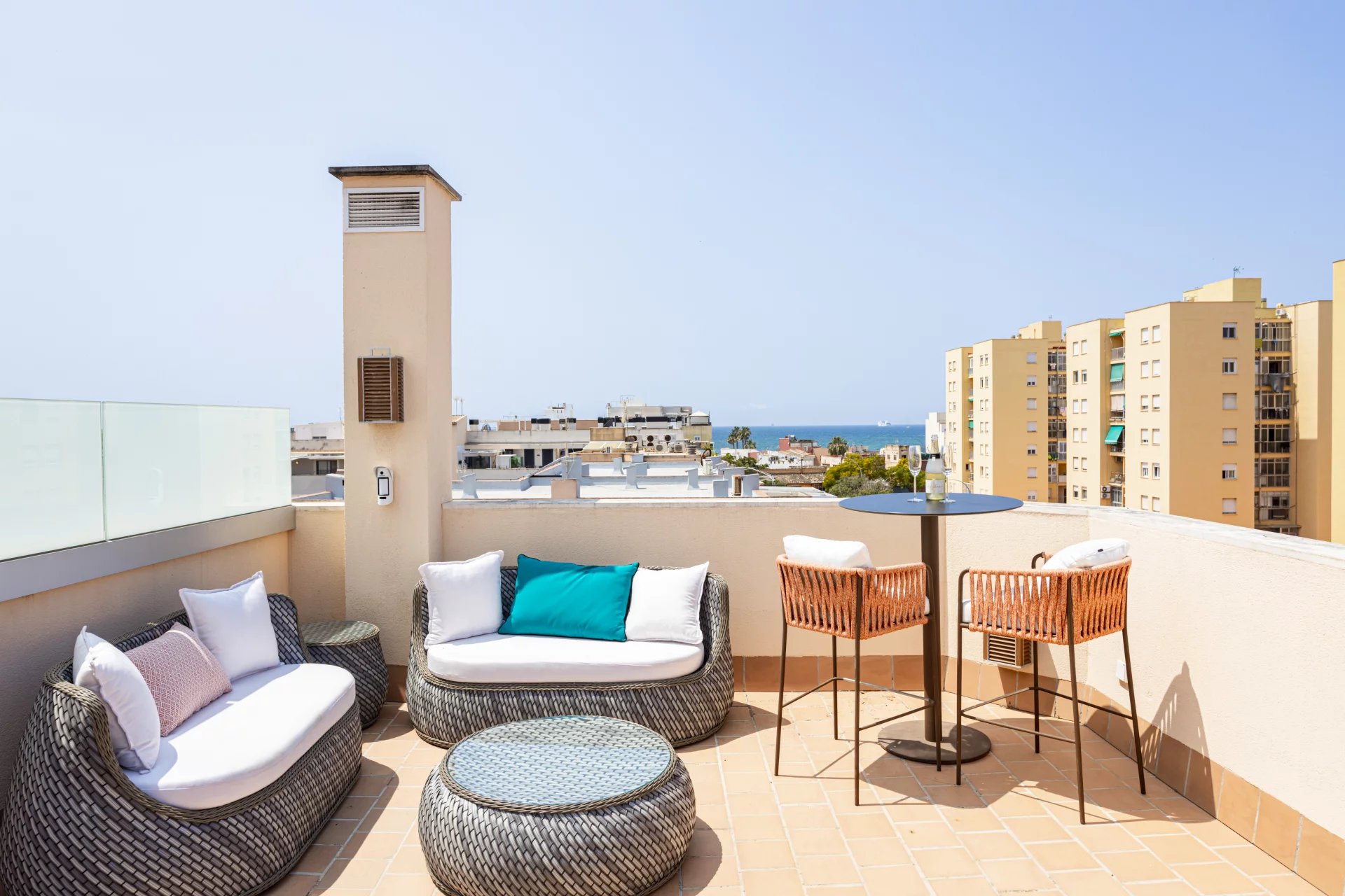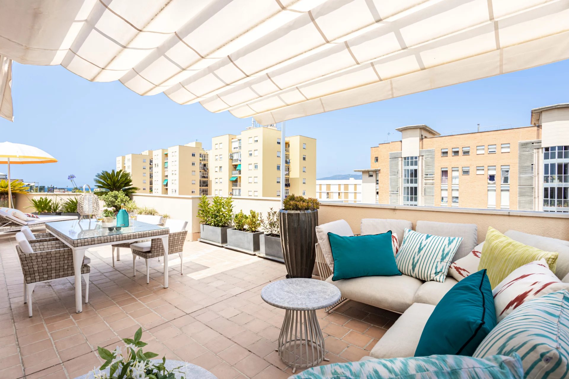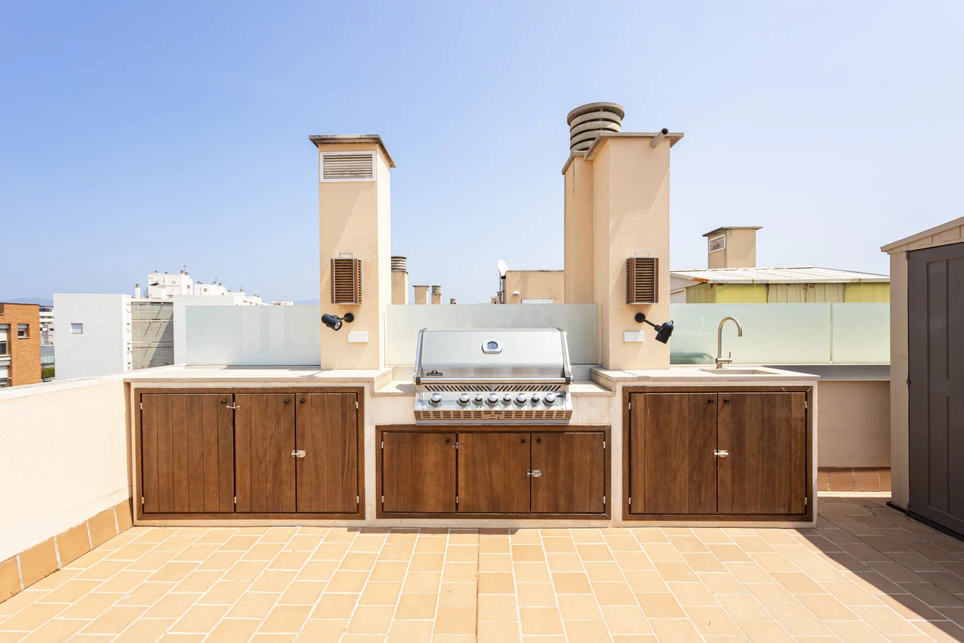 Il punto forte di questo attico di lusso a Palma è l'ampia terrazza sul tetto, completa di cucina esterna completamente attrezzata, grill di livello professionale e diverse aree lounge. Da qui si può godere di una vista panoramica sul mare e intrattenere gli ospiti.