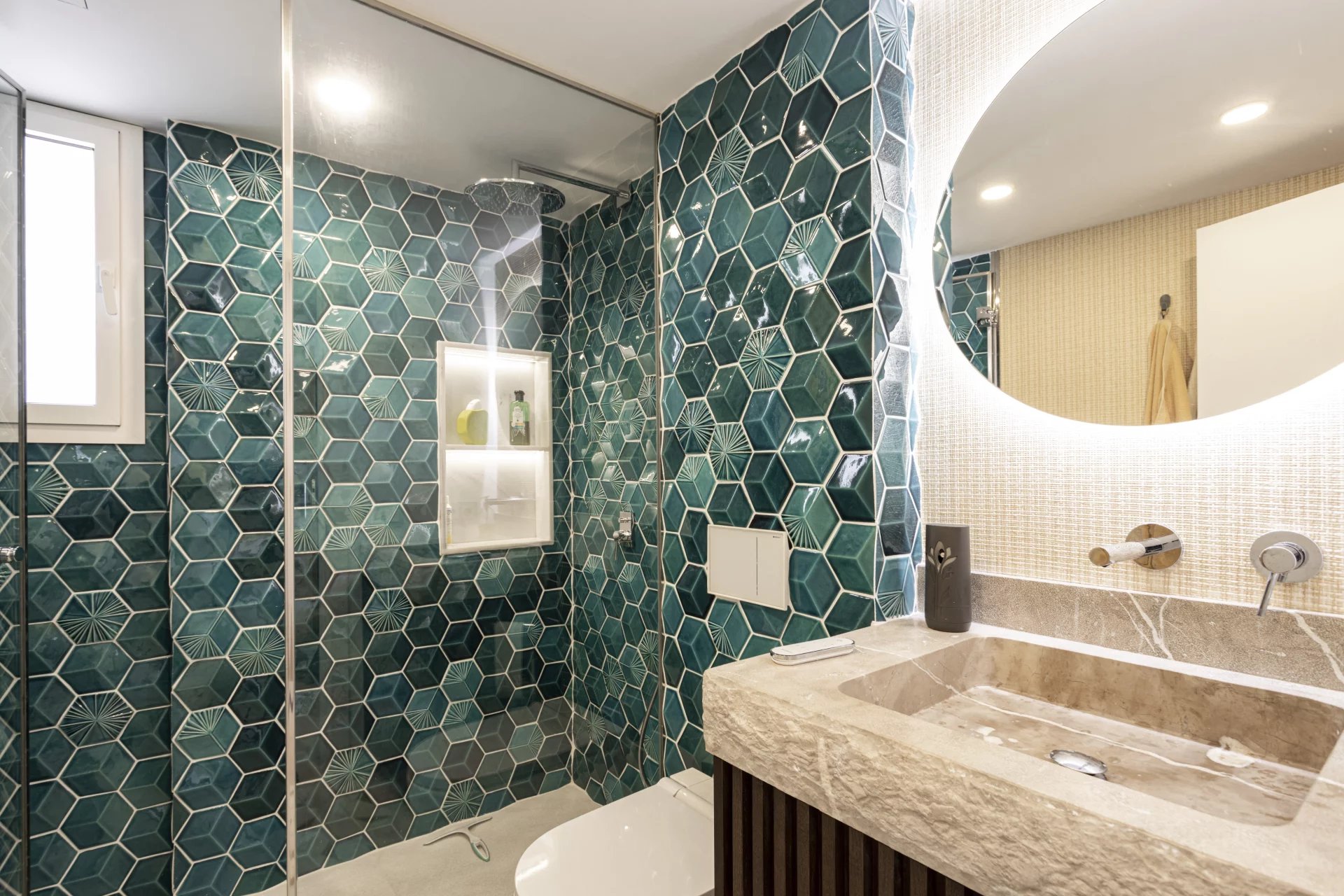 Questo splendido attico in vendita a Portixol offre una combinazione di eleganza contemporanea e fascino mediterraneo a soli 5 minuti a piedi dalla spiaggia. Completamente ristrutturato e curato da un interior designer professionista, l'immobile dispone di 61 m² di spazio abitativo elegante e 125 m² di terrazze private distribuite su due livelli.