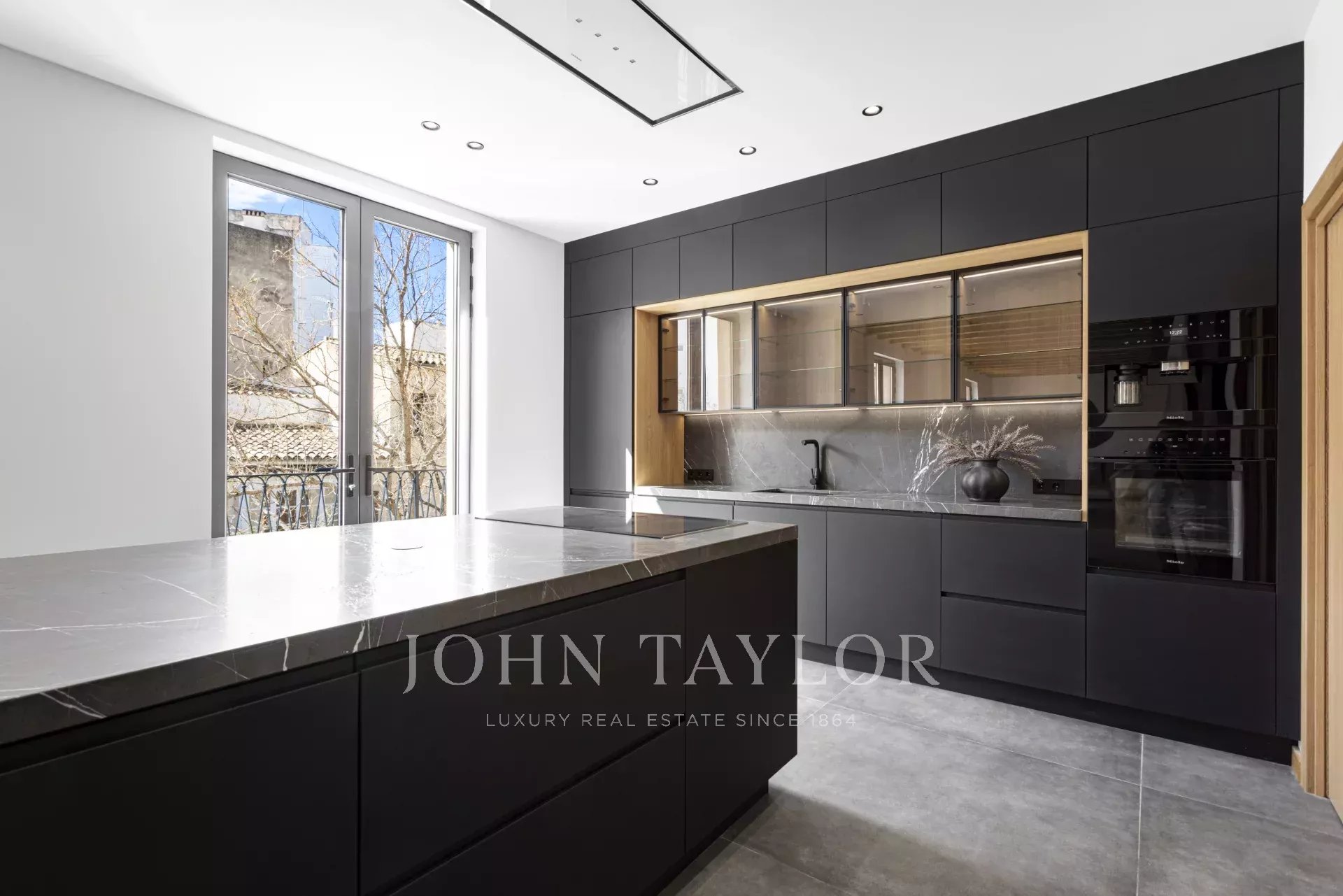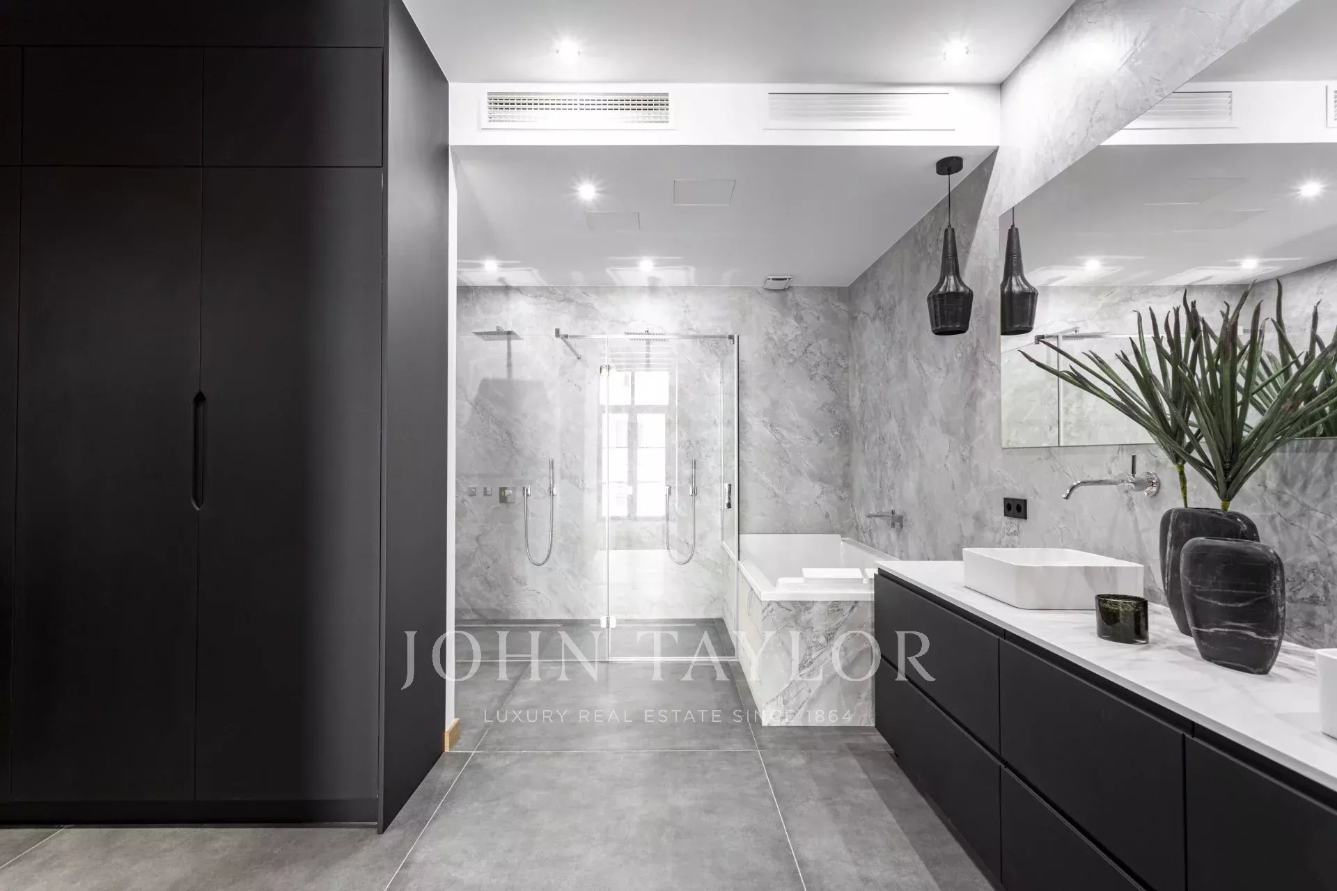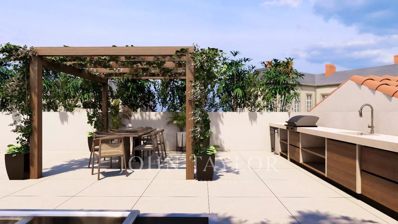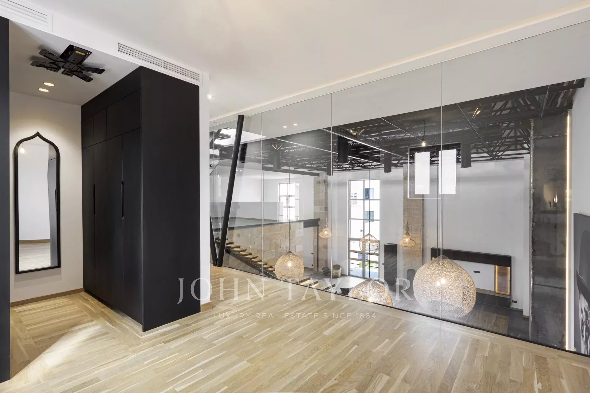 La camera da letto principale, con zona spogliatoio e bagno privato, garantisce il massimo comfort di vita su un unico piano. Al primo piano si accede tramite le "scale galleggianti" alle altre due camere da letto, entrambe con bagno privato, e a un'ulteriore area salotto. La terrazza sul tetto di 100 mq è senza dubbio il fiore all'occhiello, con una cucina esterna, una zona pranzo e un'area lounge completate dal dolce suono della fontana d'acqua. La proprietà dispone di parcheggio esterno, riscaldamento a pavimento, aria condizionata centralizzata e viene venduta arredata.