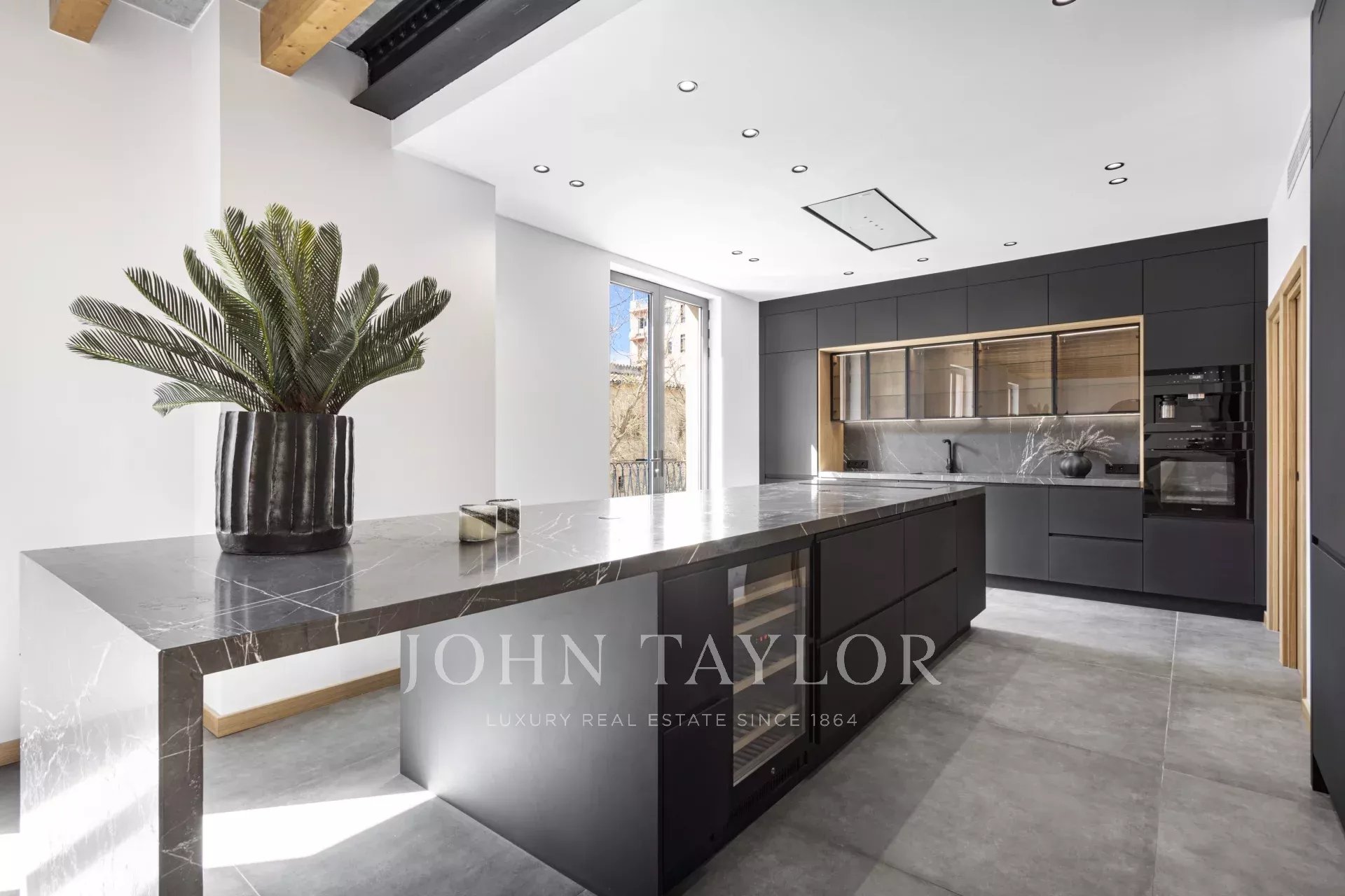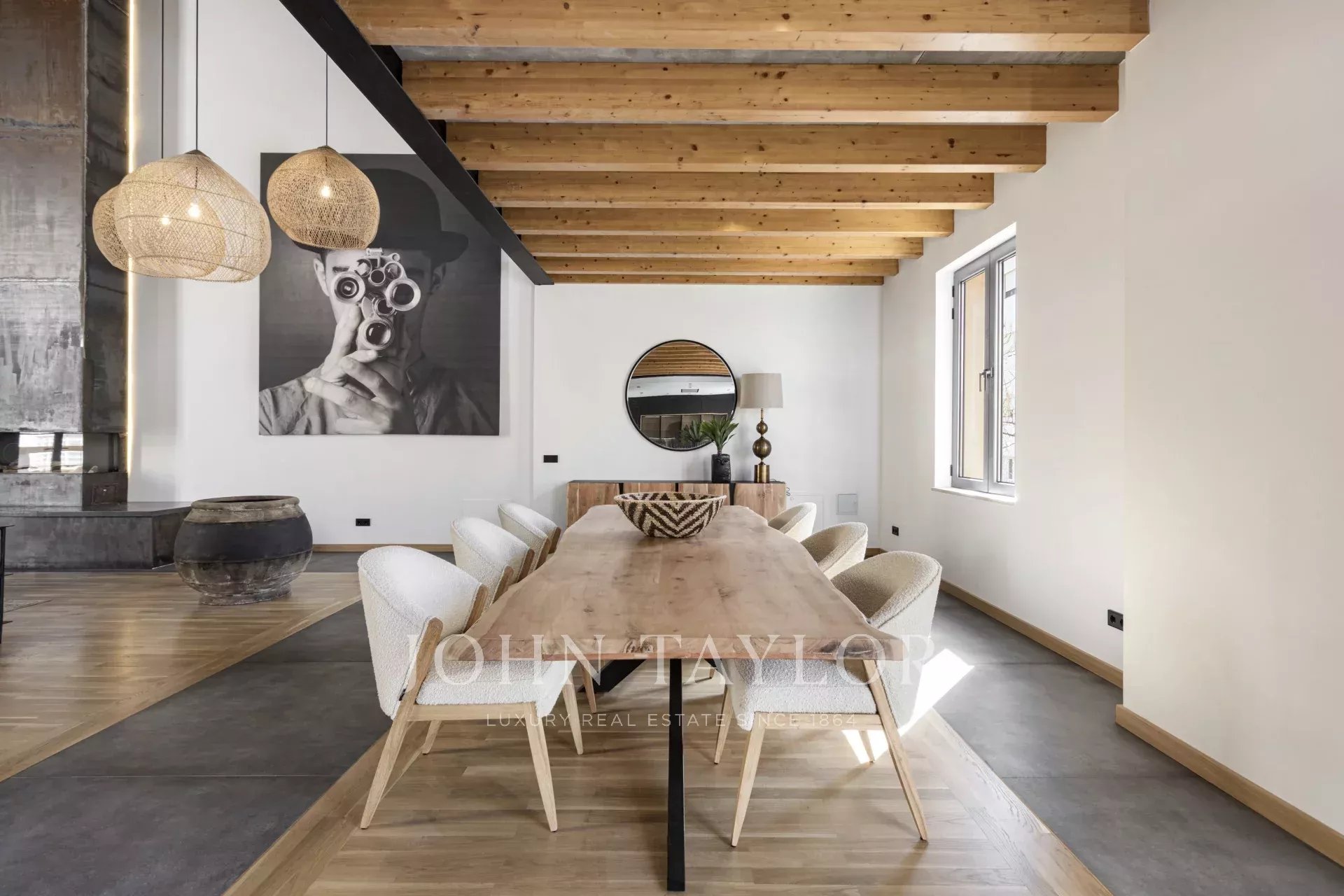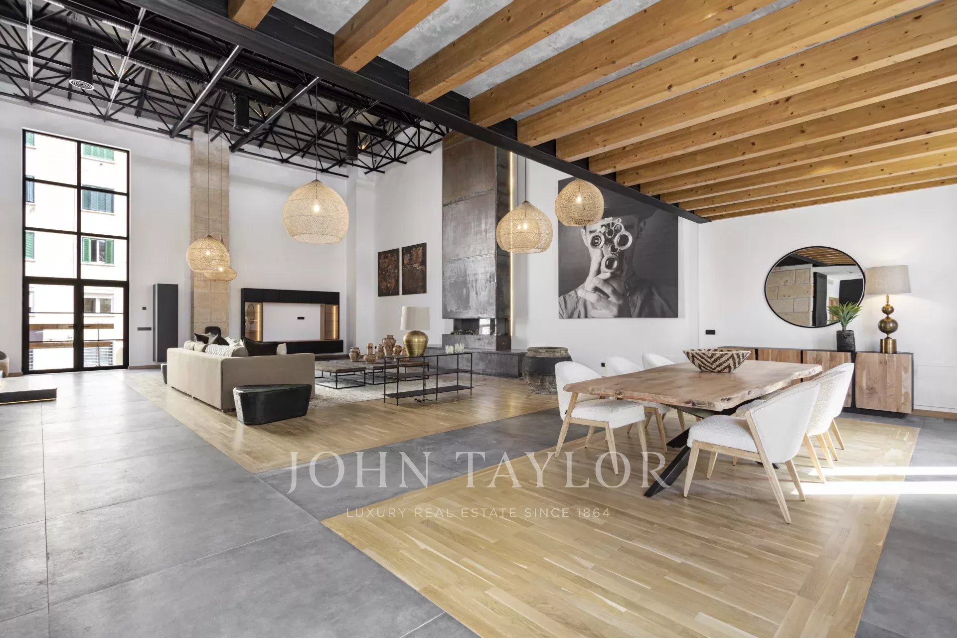 Entrando, si rimane colpiti dai soffitti alti 6,80 m2 , dall'immensa luce naturale e dallo spazio che la proprietà offre. Il piano terra comprende un magnifico open space di 166 mq, che comprende una cucina completamente attrezzata con isola e posti a sedere informali, una zona pranzo formale e una zona giorno con camino aperto.