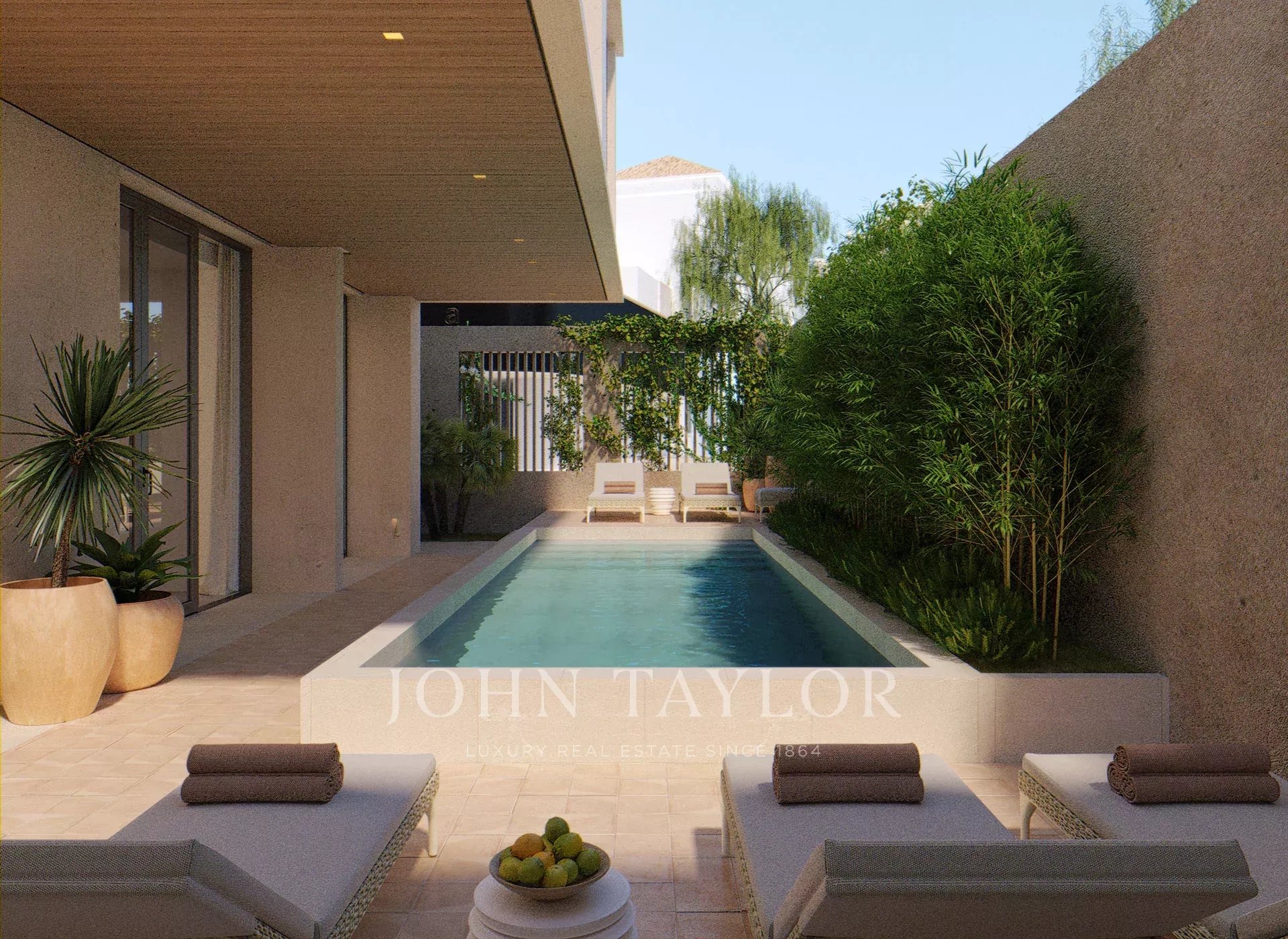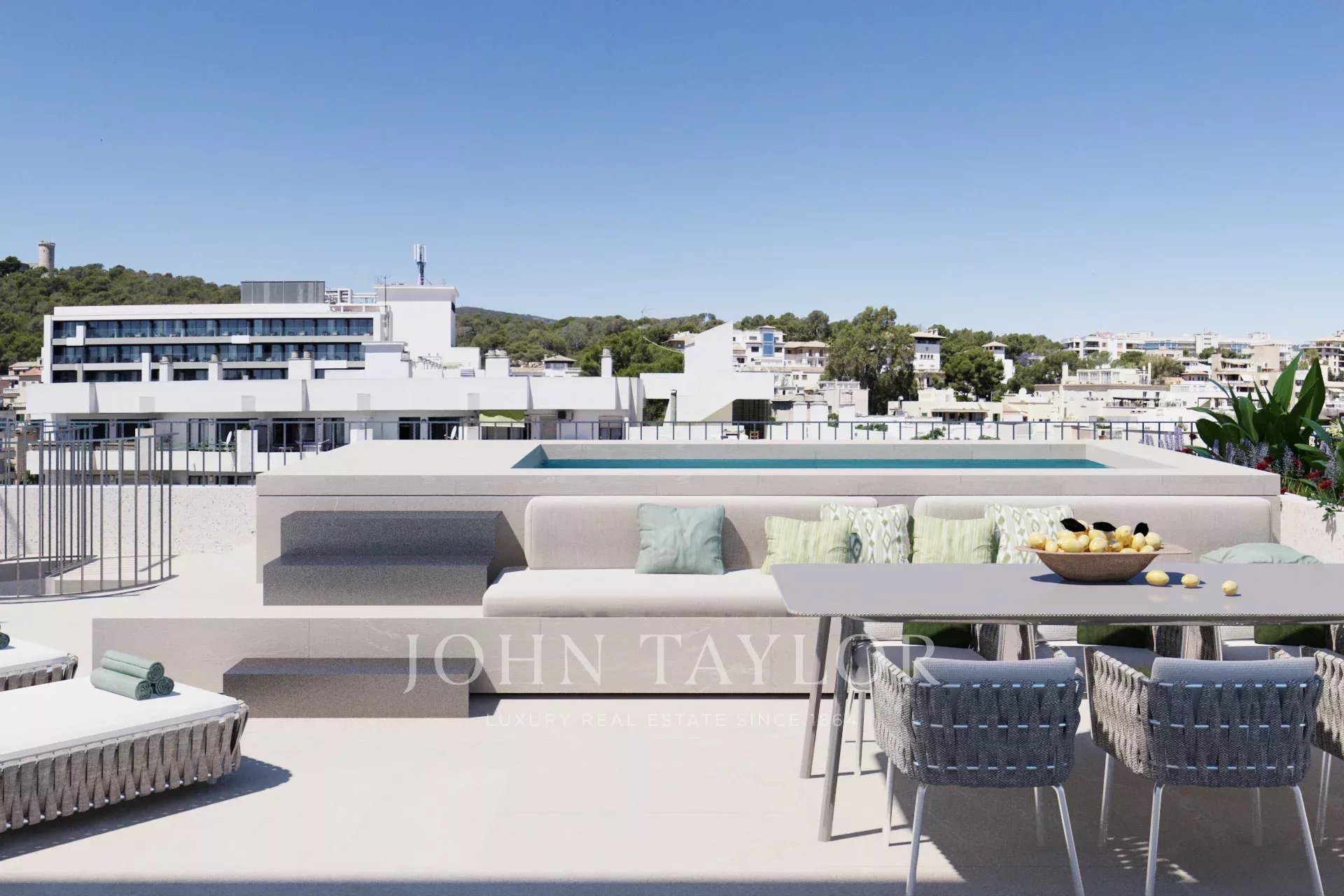 L'attico dispone di una terrazza privata sul tetto con piscina e area lounge con graziose fioriere con elementi verdi tutt'intorno e un totale di 74 m2 di spazio abitativo interno, 14,8 m2 di terrazza coperta a livello e 73 m2 di spazio esterno che comprende due camere da letto e due bagni e una splendida cucina a pianta aperta, zona pranzo e salotto. L'appartamento è dotato di riscaldamento a pavimento e aria condizionata, illuminazione indiretta, pavimenti in pietra e legno, elettrodomestici di ottimo livello e tutti i materiali per bagno, cucina e pavimenti sono di Porcelanosa. Un posto auto sotterraneo e un ripostiglio sono inclusi nel prezzo. È disponibile un elenco di extra che possono essere aggiunti, come una pergola con nebulizzatore rinfrescante per le calde giornate e notti estive. Il completamento del progetto è previsto per maggio 2024.