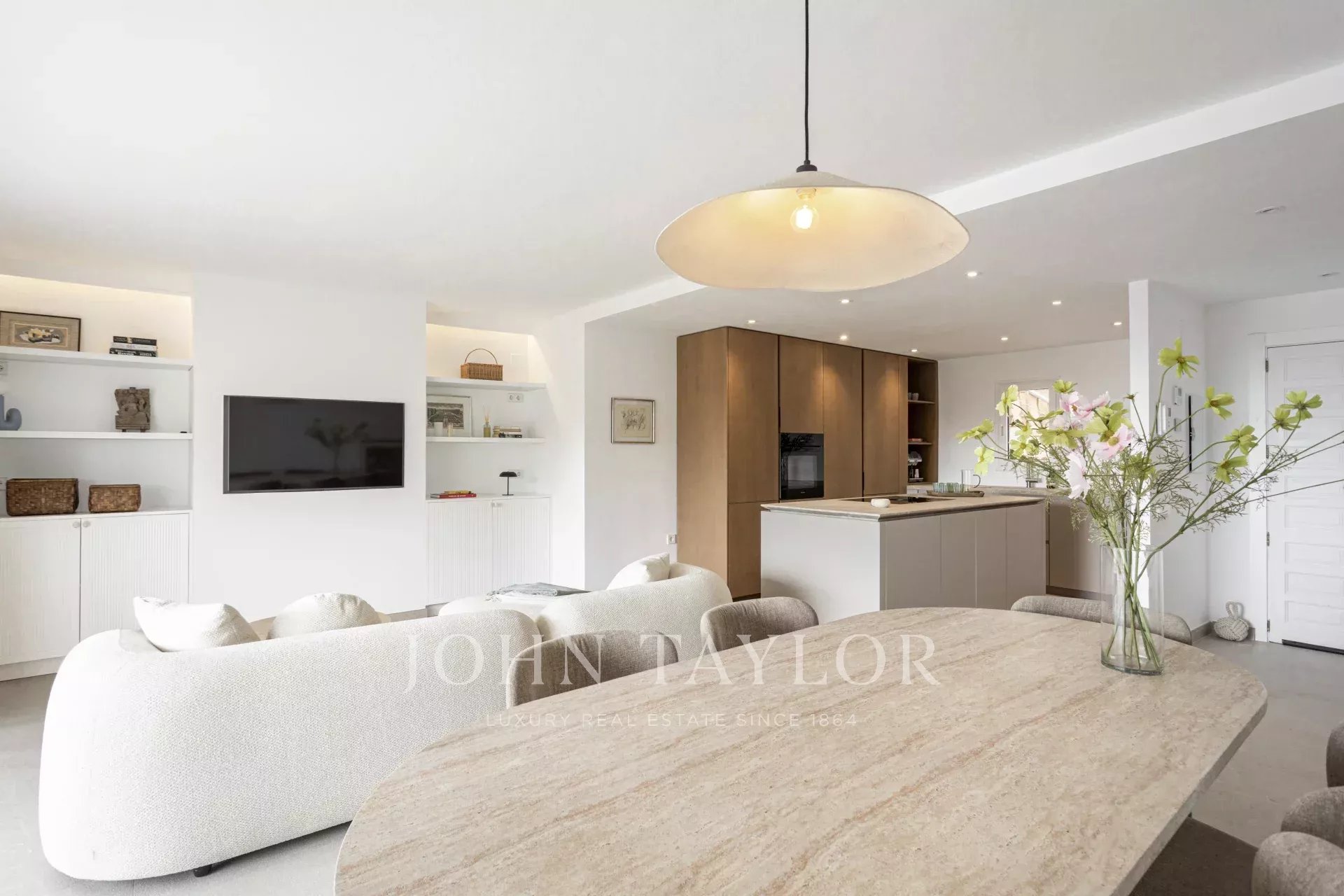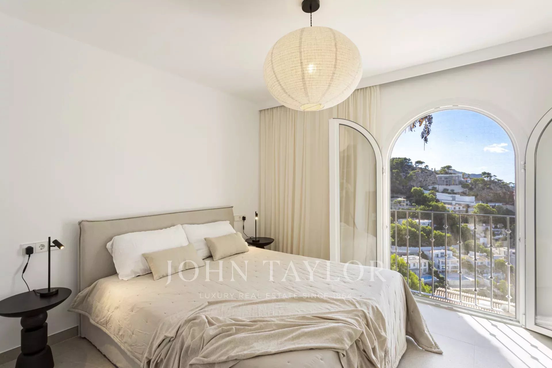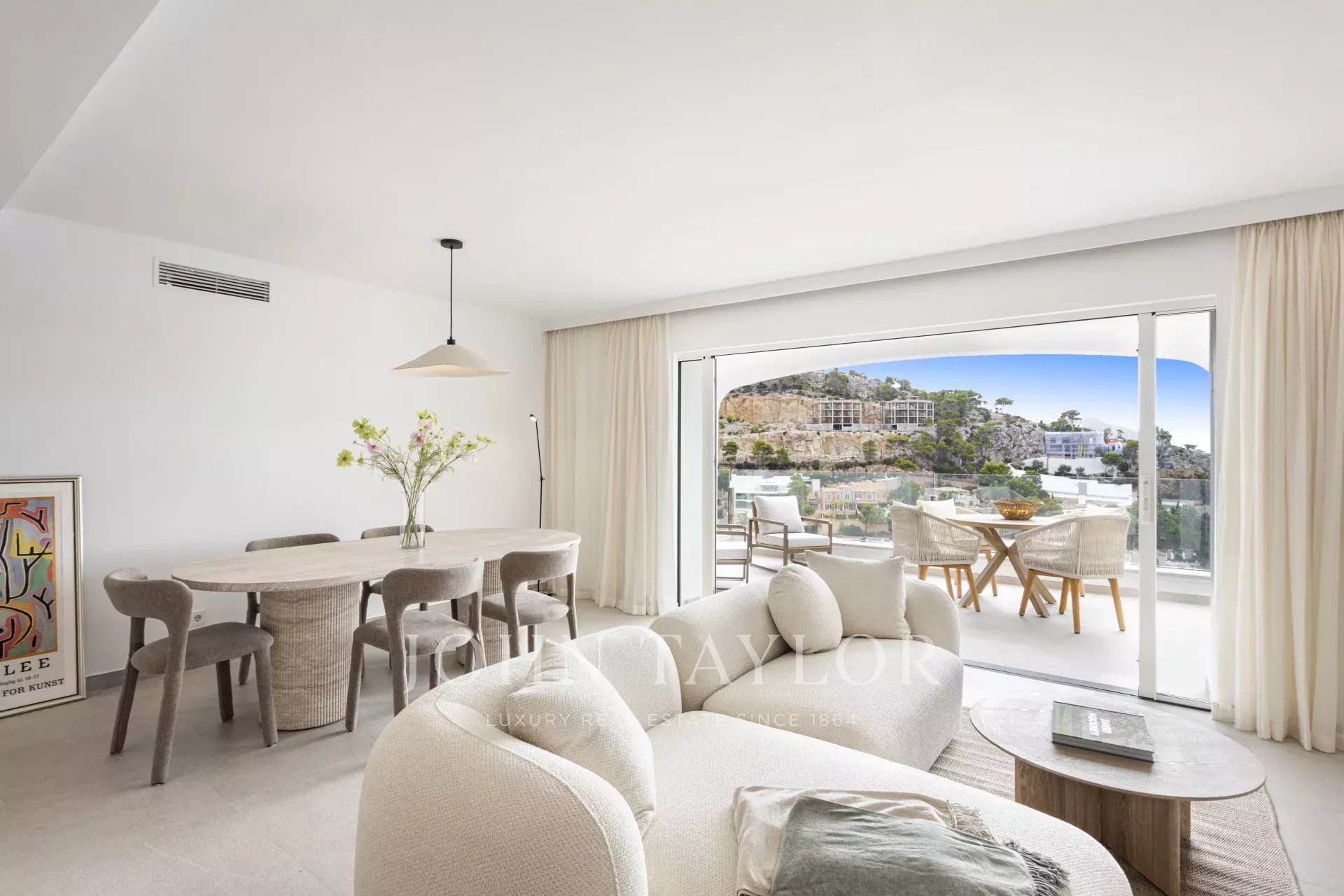 L'ampia zona pranzo-soggiorno e la cucina sono inondate di luce naturale e si collegano senza sforzo alla terrazza, creando l'ambiente perfetto per intrattenersi o rilassarsi godendo di una vista panoramica sulla costa.