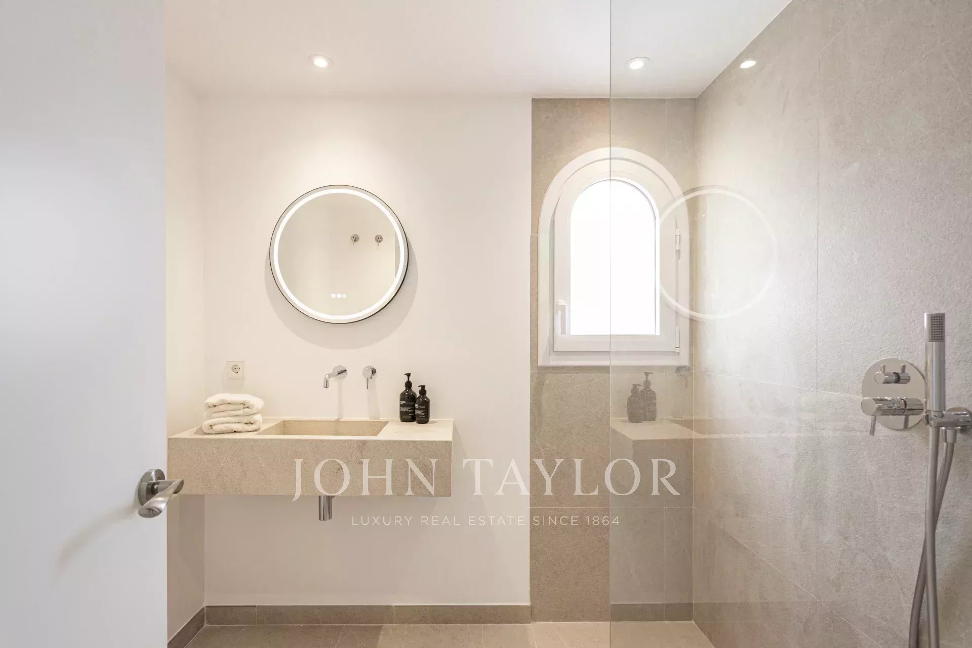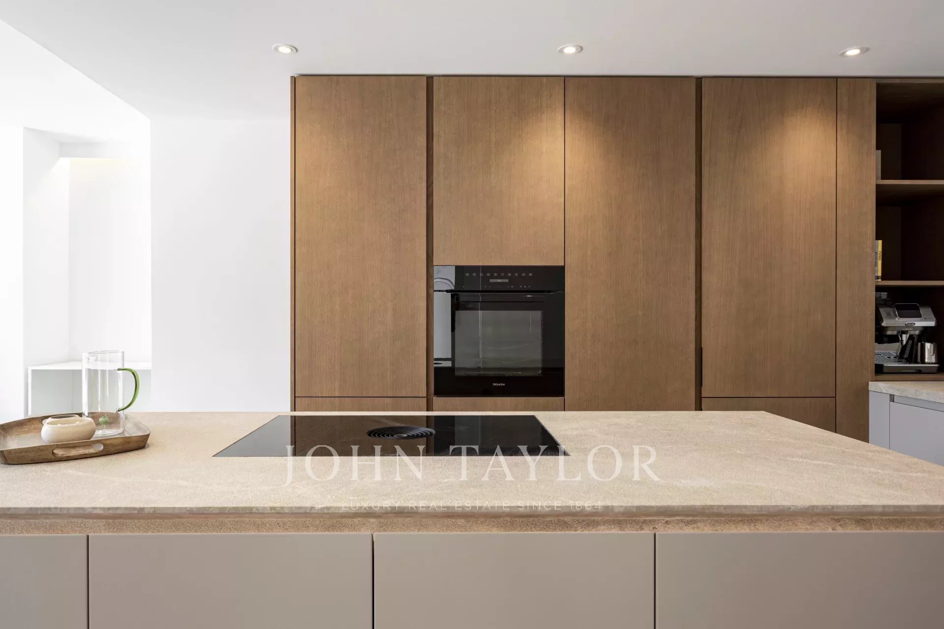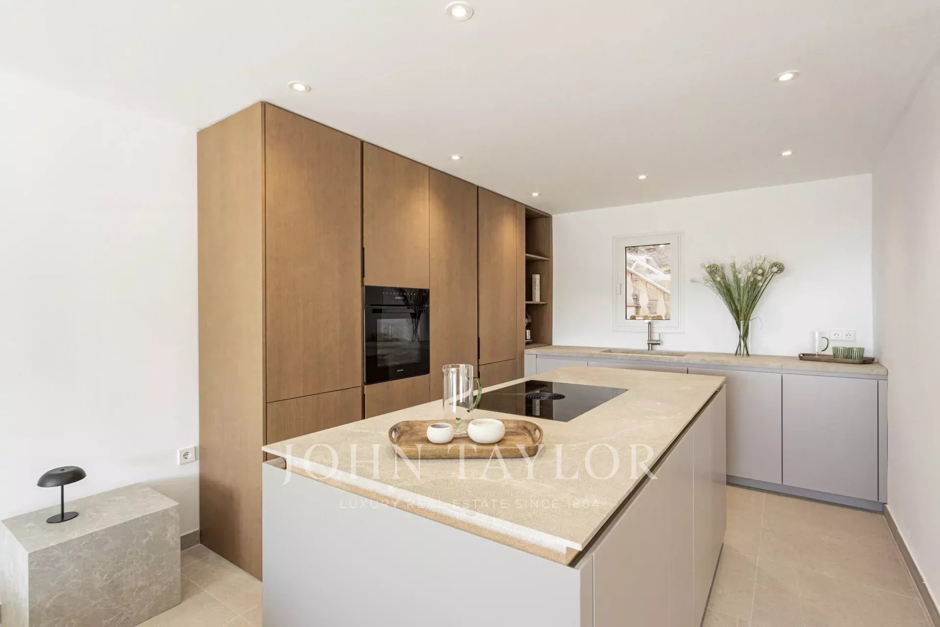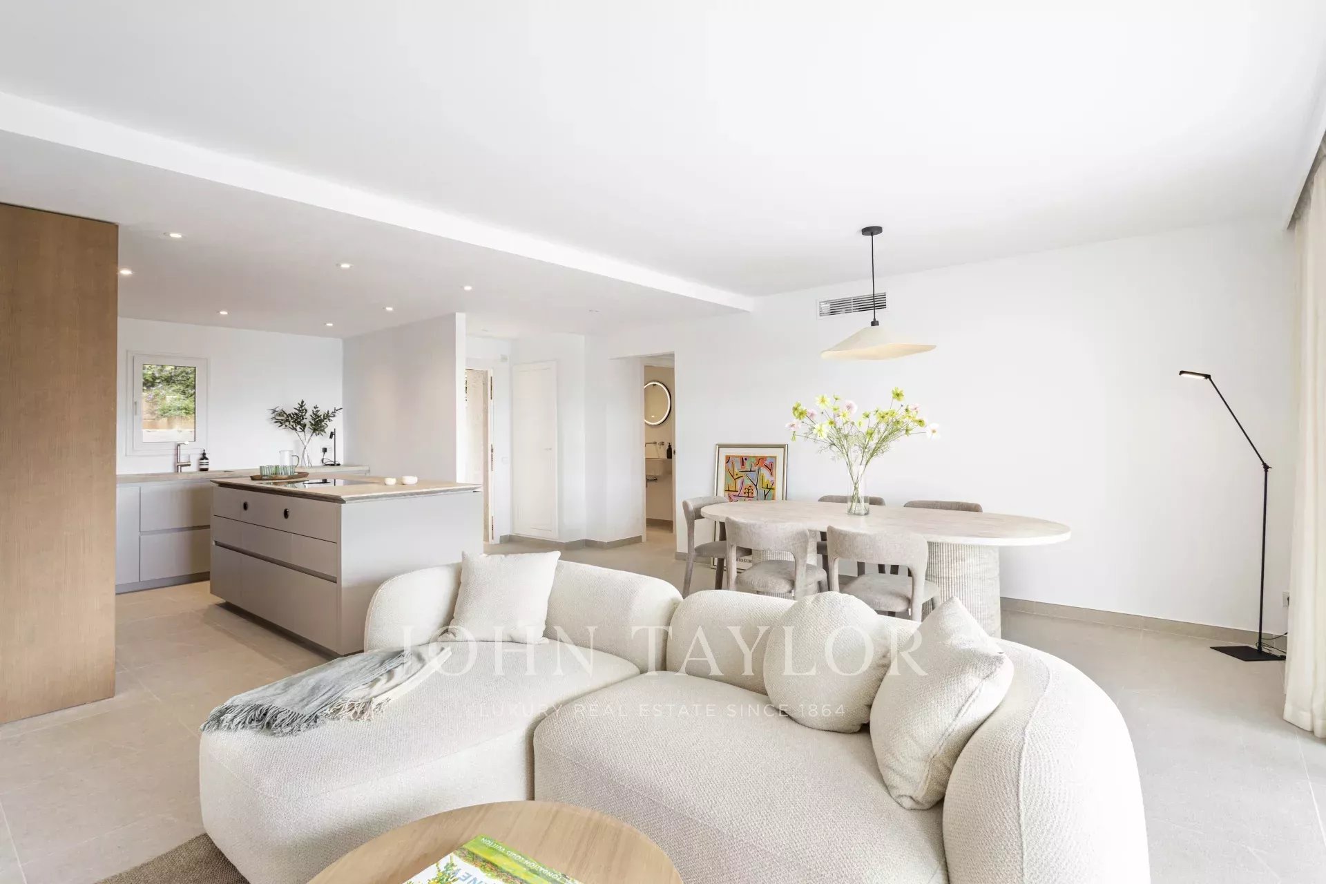 L'ampia zona pranzo-soggiorno e la cucina sono inondate di luce naturale e si collegano senza sforzo alla terrazza, creando l'ambiente perfetto per intrattenersi o rilassarsi godendo di una vista panoramica sulla costa.
