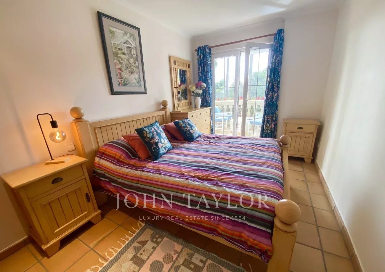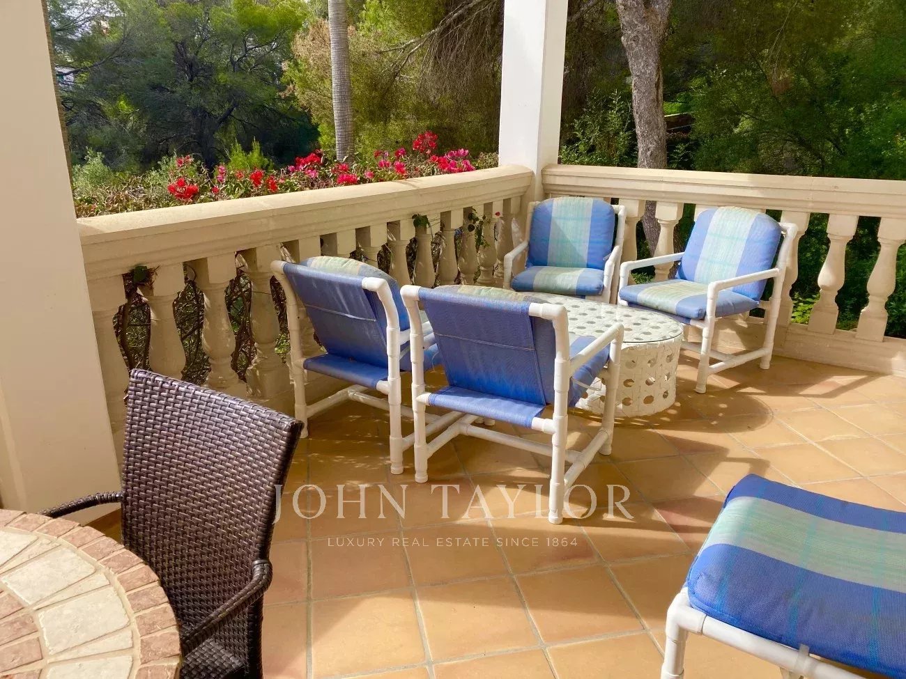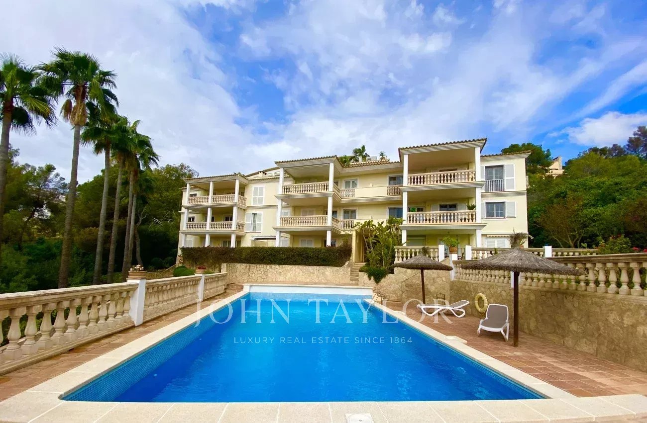 Situato in una distinta comunità recintata nella prestigiosa enclave di Portals Nous, questo elegante appartamento offre una combinazione impeccabile di raffinatezza, comfort e privacy. Il suo ampio soggiorno, impreziosito da un accogliente camino, si apre armoniosamente su una terrazza privata con vista panoramica sui lussureggianti giardini comuni e sulla piscina, offrendo un ambiente sereno ed esclusivo. La moderna cucina, dotata di elettrodomestici di alta gamma e progettata in toni neutri, è completata da un pratico spazio lavanderia separato. Un'affascinante sala per la colazione aggiunge un tocco accogliente e funzionale, con accesso diretto sia al soggiorno che alla cucina. La disposizione della proprietà comprende due spaziose camere matrimoniali e una camera singola. La suite padronale, inondata di luce naturale, ha accesso diretto a una soleggiata terrazza esposta a sud e un elegante bagno in camera. Un secondo bagno, progettato con finiture di alta qualità, completa la disposizione interna di questa eccezionale proprietà. Progettato per la fruizione all'aperto, questo appartamento dispone di una generosa terrazza privata, ideale per rilassarsi o condividere momenti indimenticabili in un ambiente di assoluta tranquillità. La comunità, progettata con cura, offre una magnifica piscina circondata da terrazze, ombrelloni e aree giardino, creando un'oasi di pace in una delle località più ricercate di Maiorca. Inoltre, la proprietà comprende un posto auto privato in un garage sotterraneo, che offre ulteriore comodità e sicurezza. Un'opportunità unica per chi cerca esclusività, privacy e una posizione imbattibile nel cuore di Portals Nous.