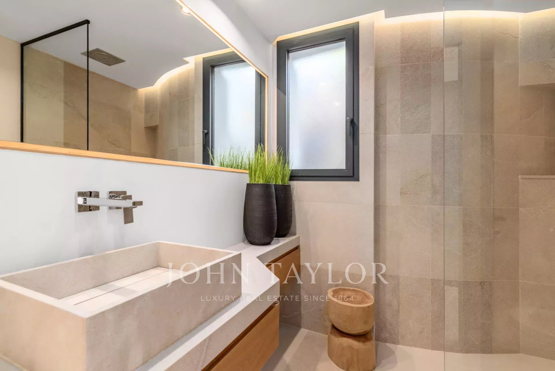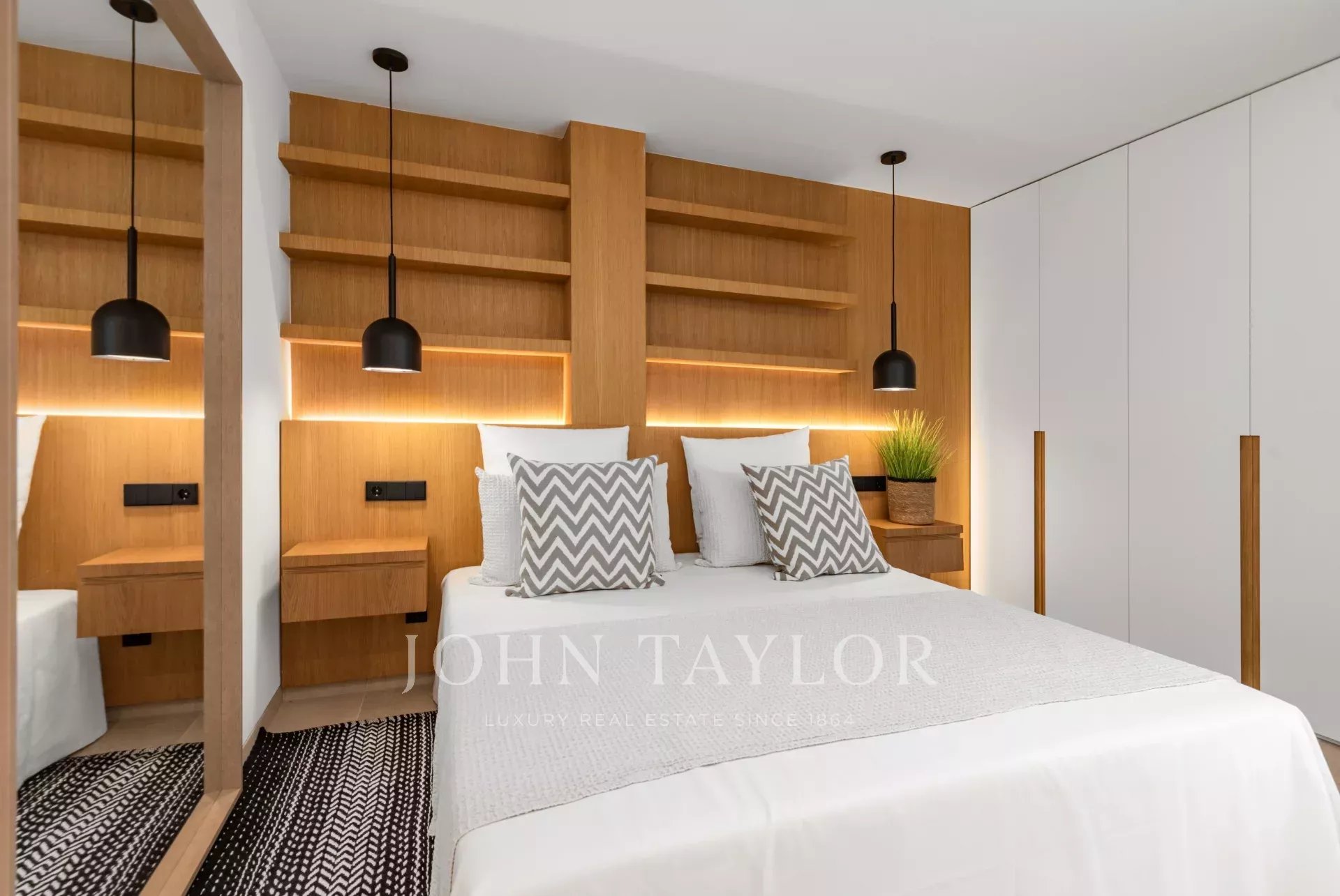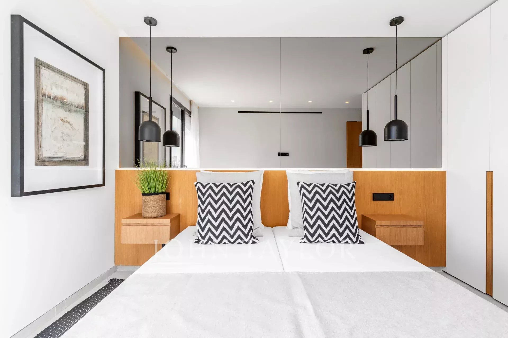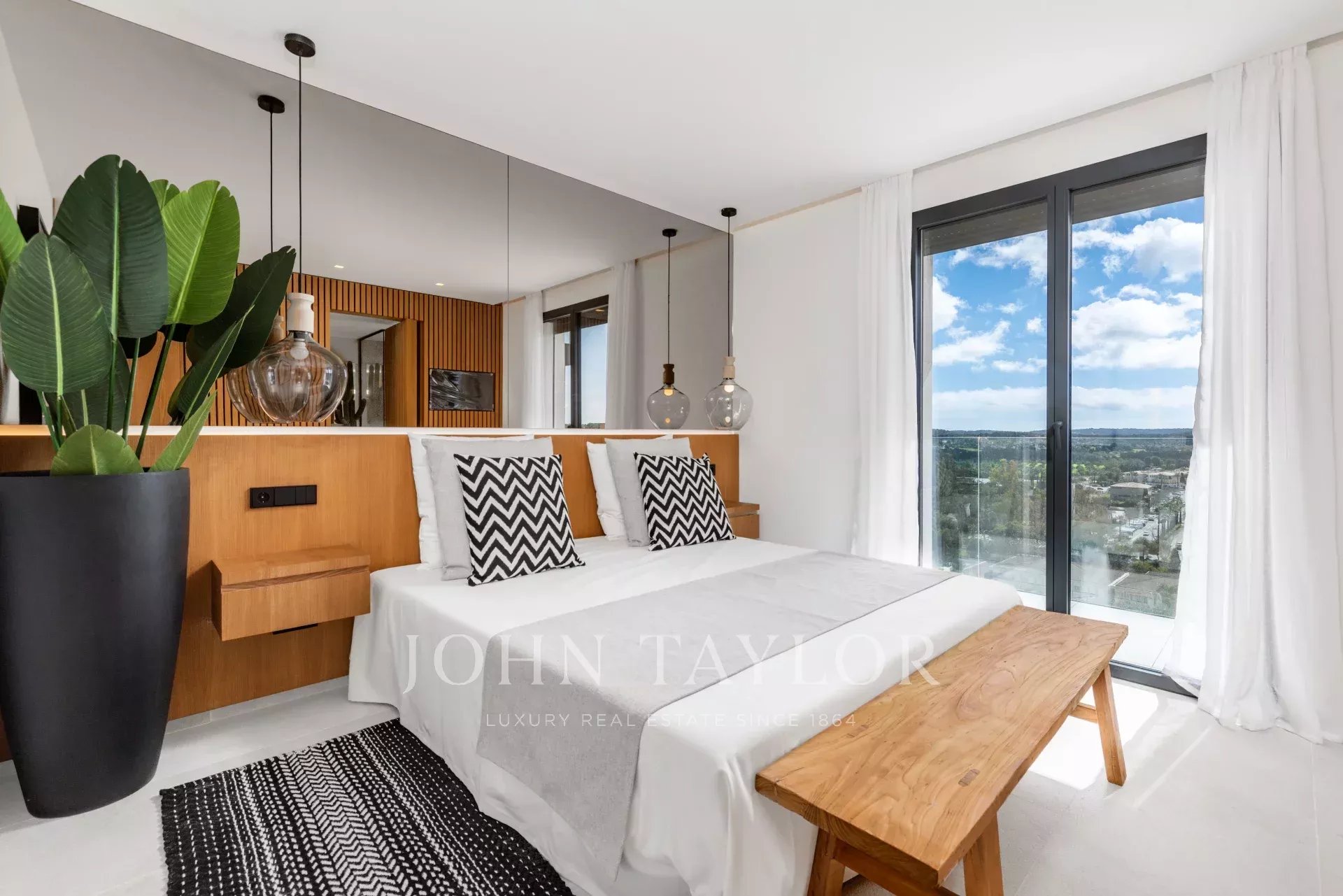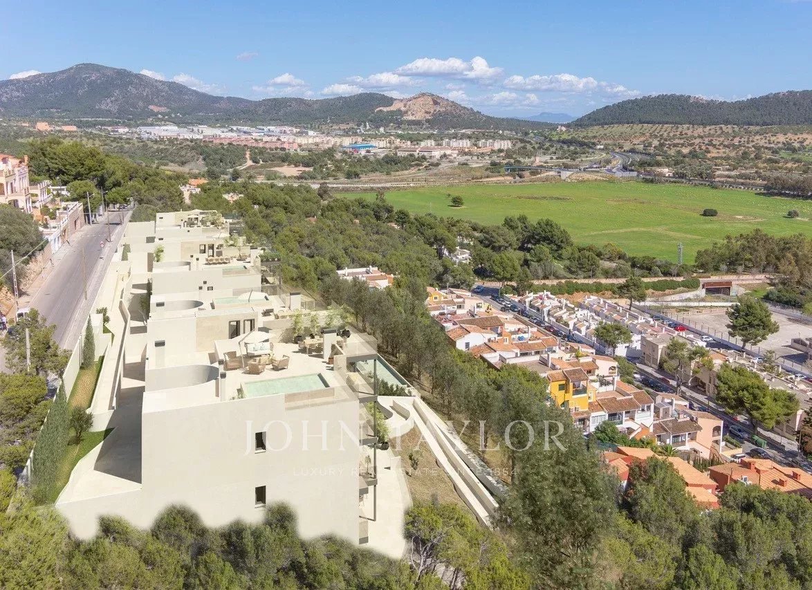 Questi moderni appartamenti sono in costruzione a Santa Ponsa. Hanno una fantastica vista panoramica su Santa Ponsa e sul campo da golf, con orientamento est-sud-ovest e splendide terrazze di 18 m2 per godere appieno dello stile di vita mediterraneo. Gli appartamenti dispongono di 4 camere da letto doppie e 3 bagni, di cui 2 en suite, dotati di materiali di alta qualità. Un luminoso soggiorno e una sala da pranzo, così come una moderna cucina aperta con elettrodomestici e un'isola cucina combinata con materiali di alta qualità, offrono comfort e benessere. Il complesso dispone di 24 unità abitative, una piscina comunitaria e un giardino mediterraneo. Un posto auto sotterraneo è incluso nel prezzo di vendita. Il progetto sarà completato nel 2025.