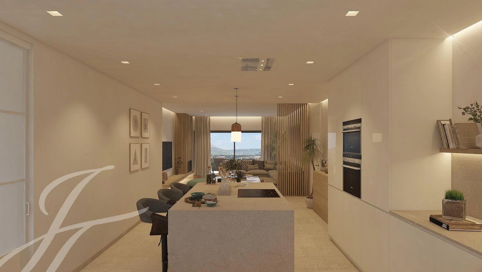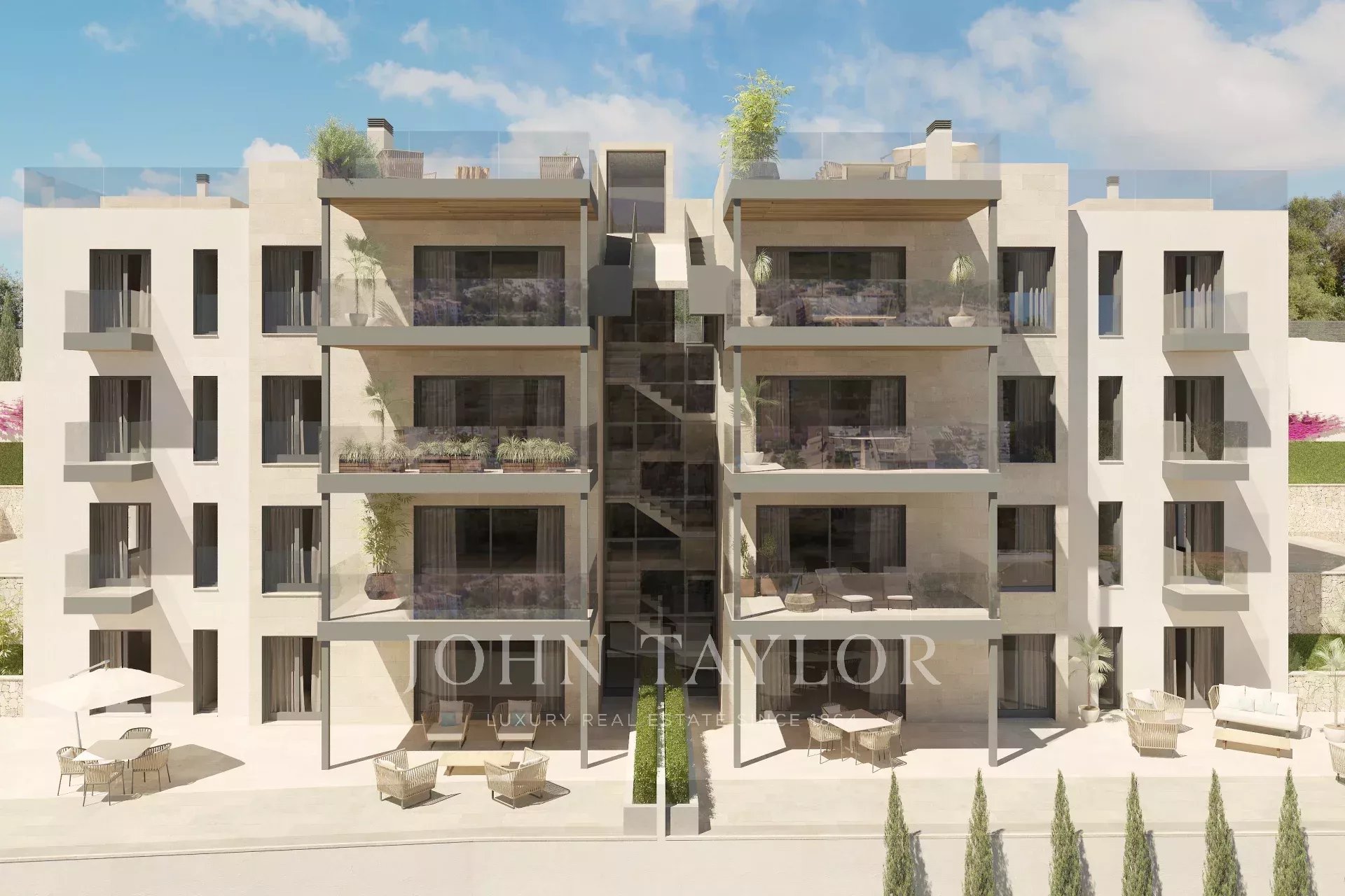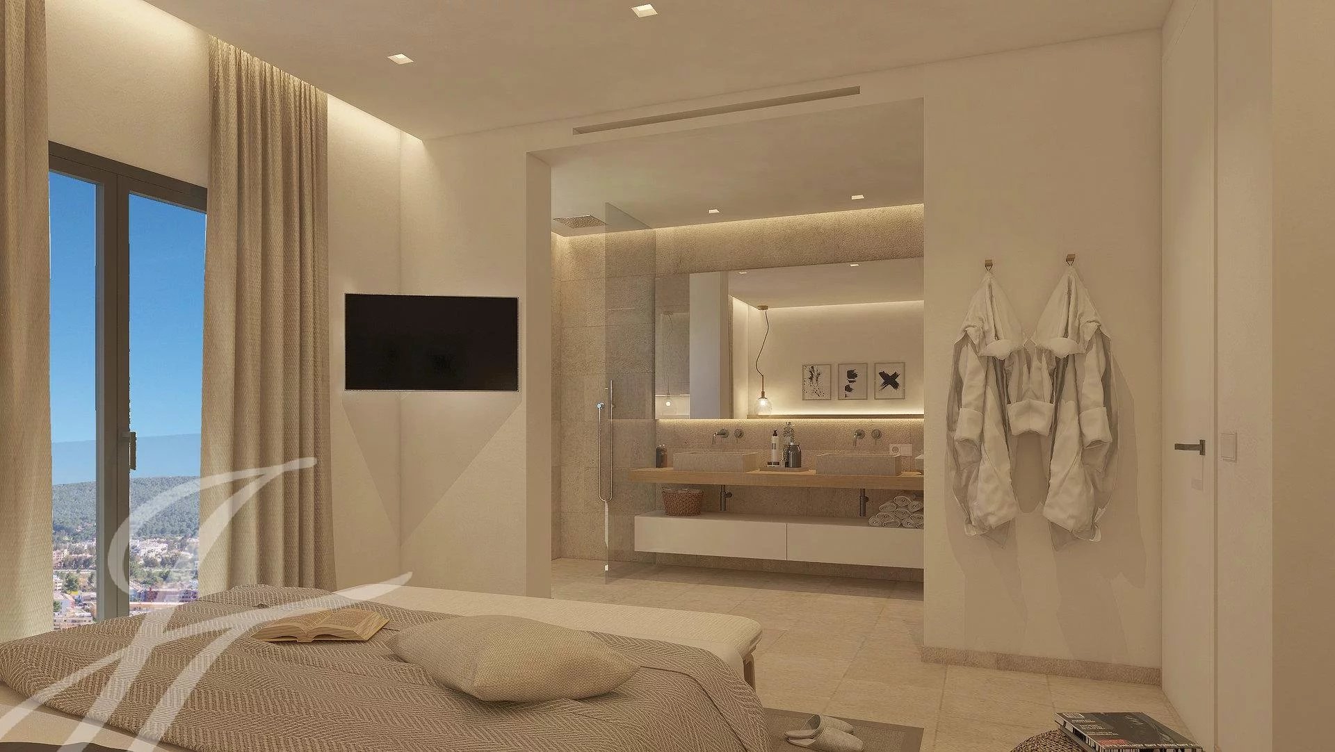 Questi moderni appartamenti sono in costruzione a Santa Ponsa. Hanno una fantastica vista panoramica su Santa Ponsa e sul campo da golf, con orientamento est-sud-ovest e splendide terrazze di 18 m2 per godere appieno dello stile di vita mediterraneo. Gli appartamenti dispongono di 4 camere da letto doppie e 3 bagni, di cui 2 en suite, dotati di materiali di alta qualità. Un luminoso soggiorno e una sala da pranzo, oltre a una moderna cucina aperta con elettrodomestici e un'isola di cucina combinata con materiali di altissima qualità, vi regaleranno comfort e benessere. Il complesso dispone di 24 unità abitative, una piscina comunitaria e un giardino mediterraneo. Un posto auto sotterraneo è incluso nel prezzo di vendita. Il progetto sarà completato nel 2025.