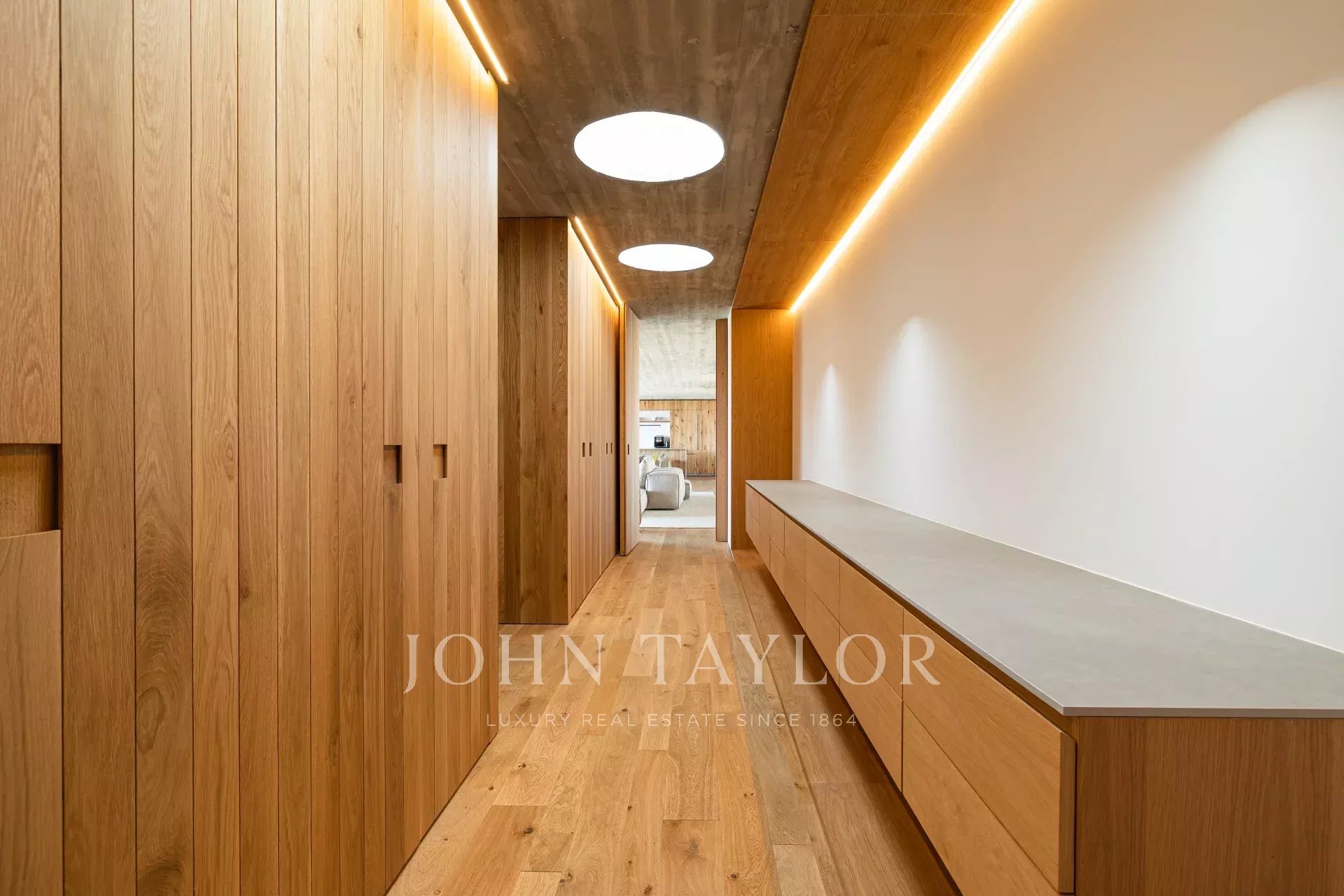La sicurezza è fondamentale con sistemi avanzati di monitoraggio perimetrale e di allarme domestico. Gli innovativi sistemi di riscaldamento a pavimento e di raffreddamento a soffitto, l'isolamento di alta qualità, i vetri riflettenti e le facciate esterne isolate garantiscono una distribuzione uniforme della temperatura e costi energetici ridotti al minimo. L'accesso biometrico con impronte digitali, i sistemi audio-video avanzati e un sistema di energia geotermica ad alte prestazioni migliorano il comfort.