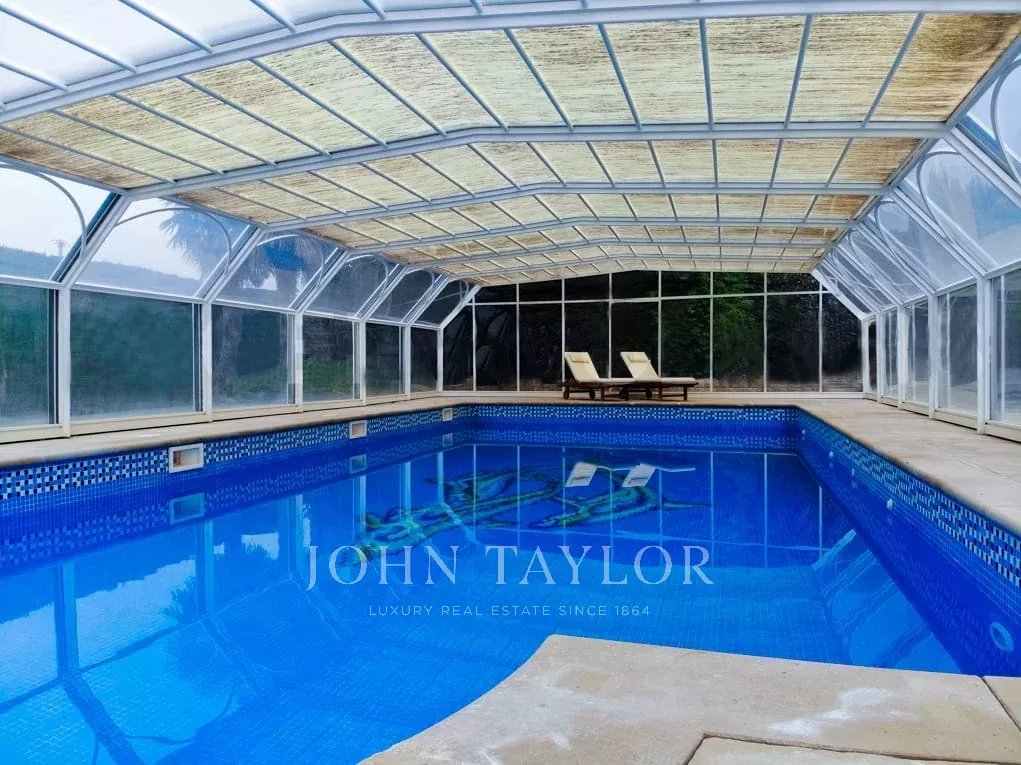 Al piano interrato, spettacolare cantina, piscina coperta riscaldata con getto d'acqua controcorrente, sauna finlandese per oltre 6 persone, bagno per gli ospiti, ripostiglio e locale tecnico.