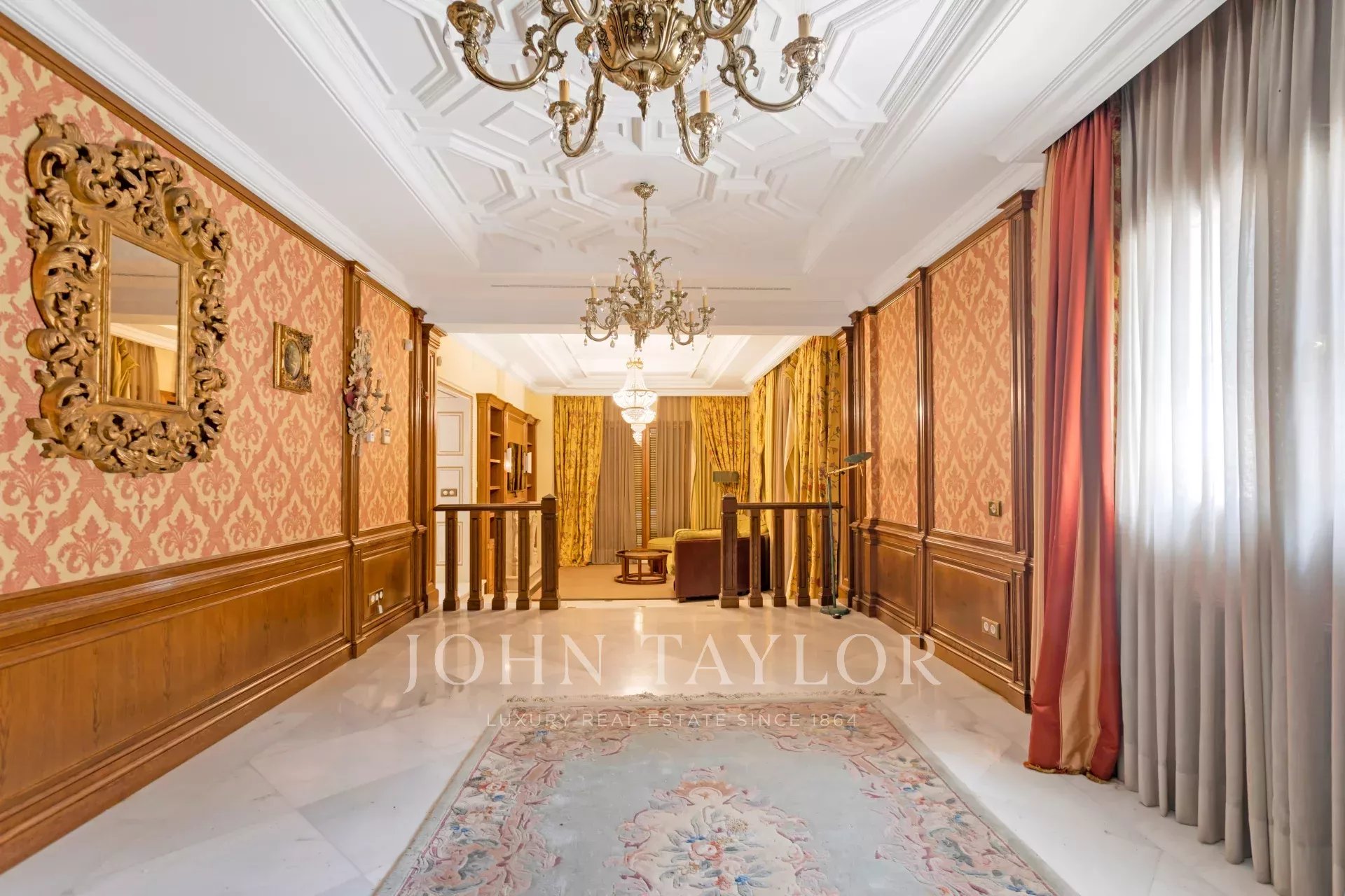 John Taylor presenta in ESCLUSIVA questo imponente palazzo neoclassico di fronte al campo da golf La Moraleja I. Ha 1.250m2 costruiti su un terreno di 2.550m2.