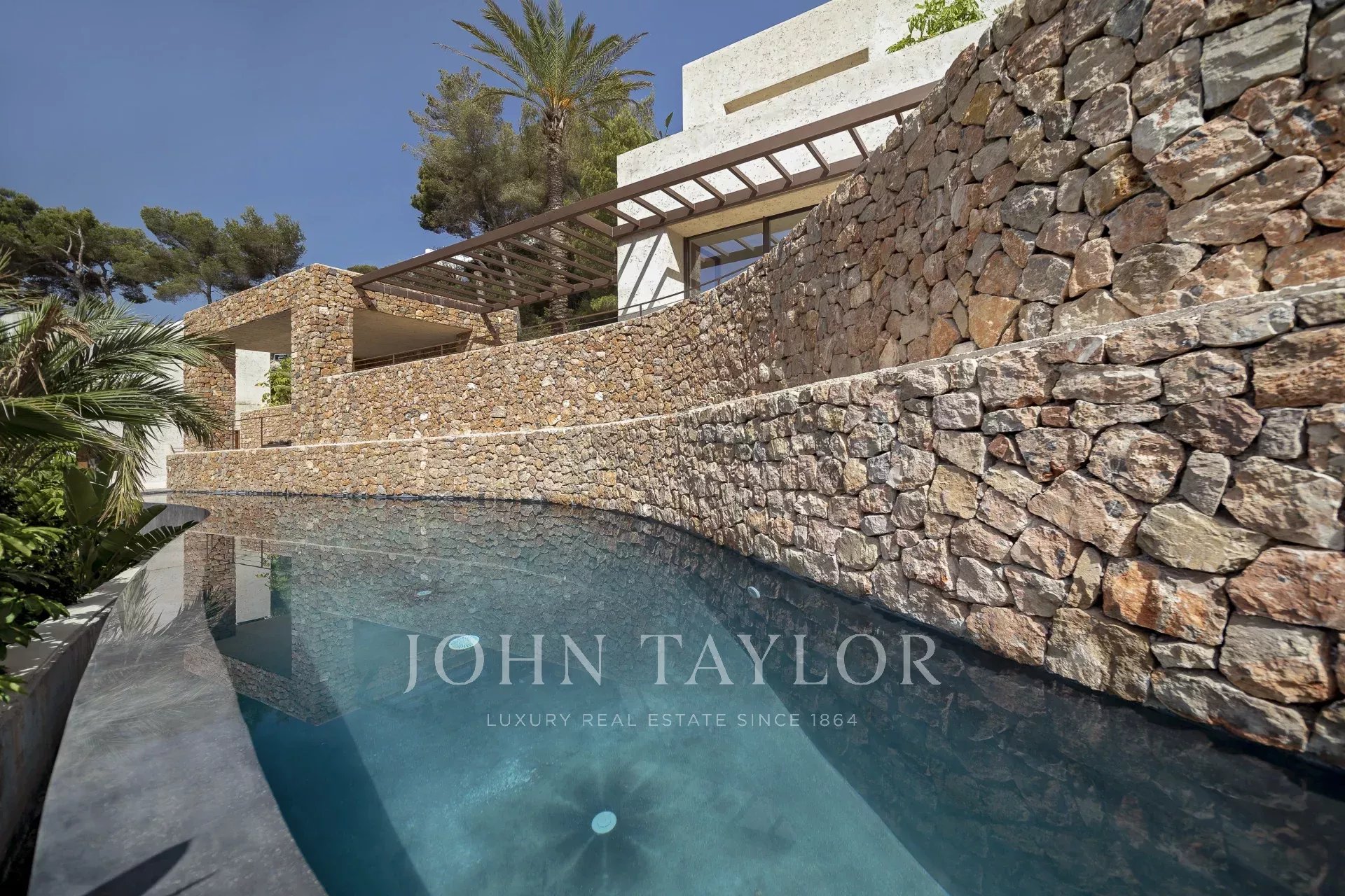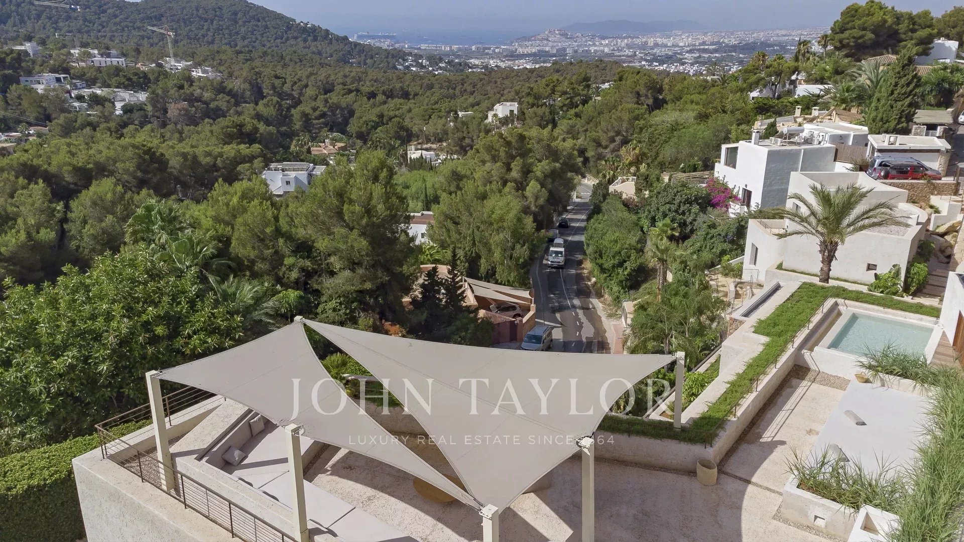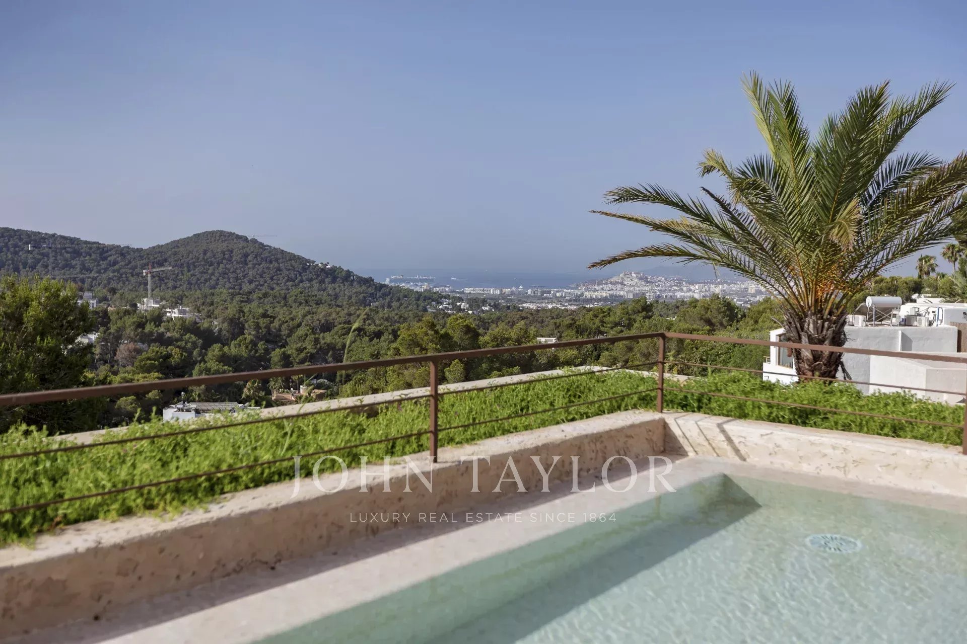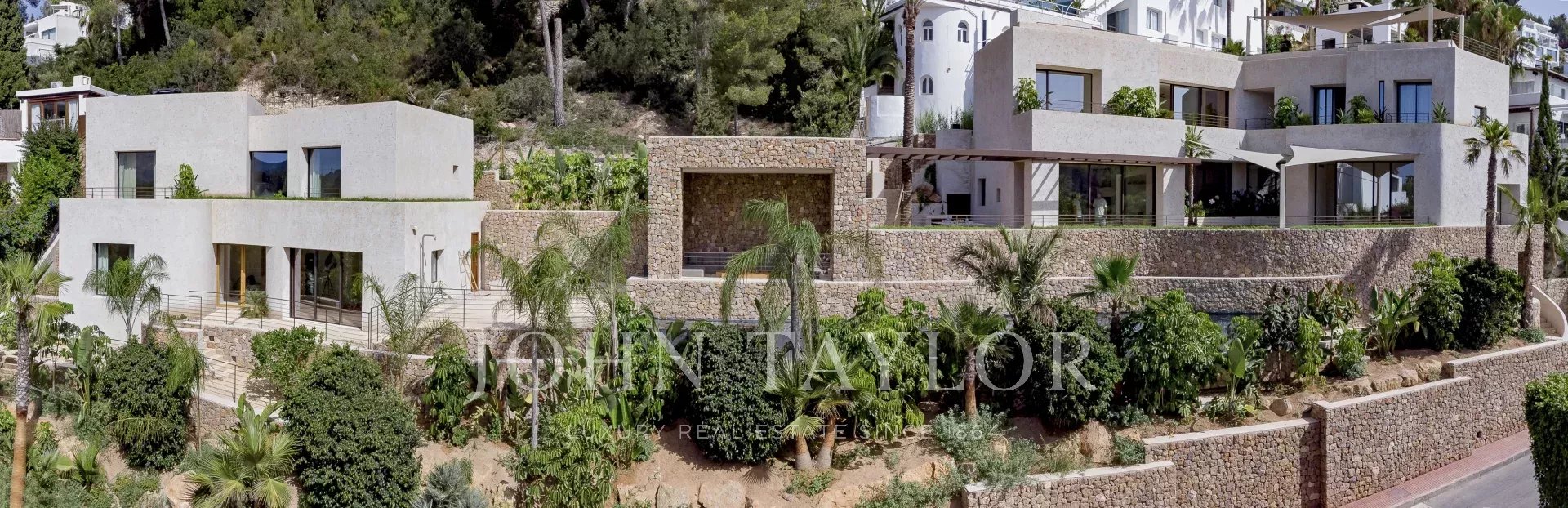 L'intera casa si affaccia su Ibiza e sul Mar Mediterraneo, con un'architettura molto mediterranea e le sue piante in piscina rendono questa casa unica nella zona.