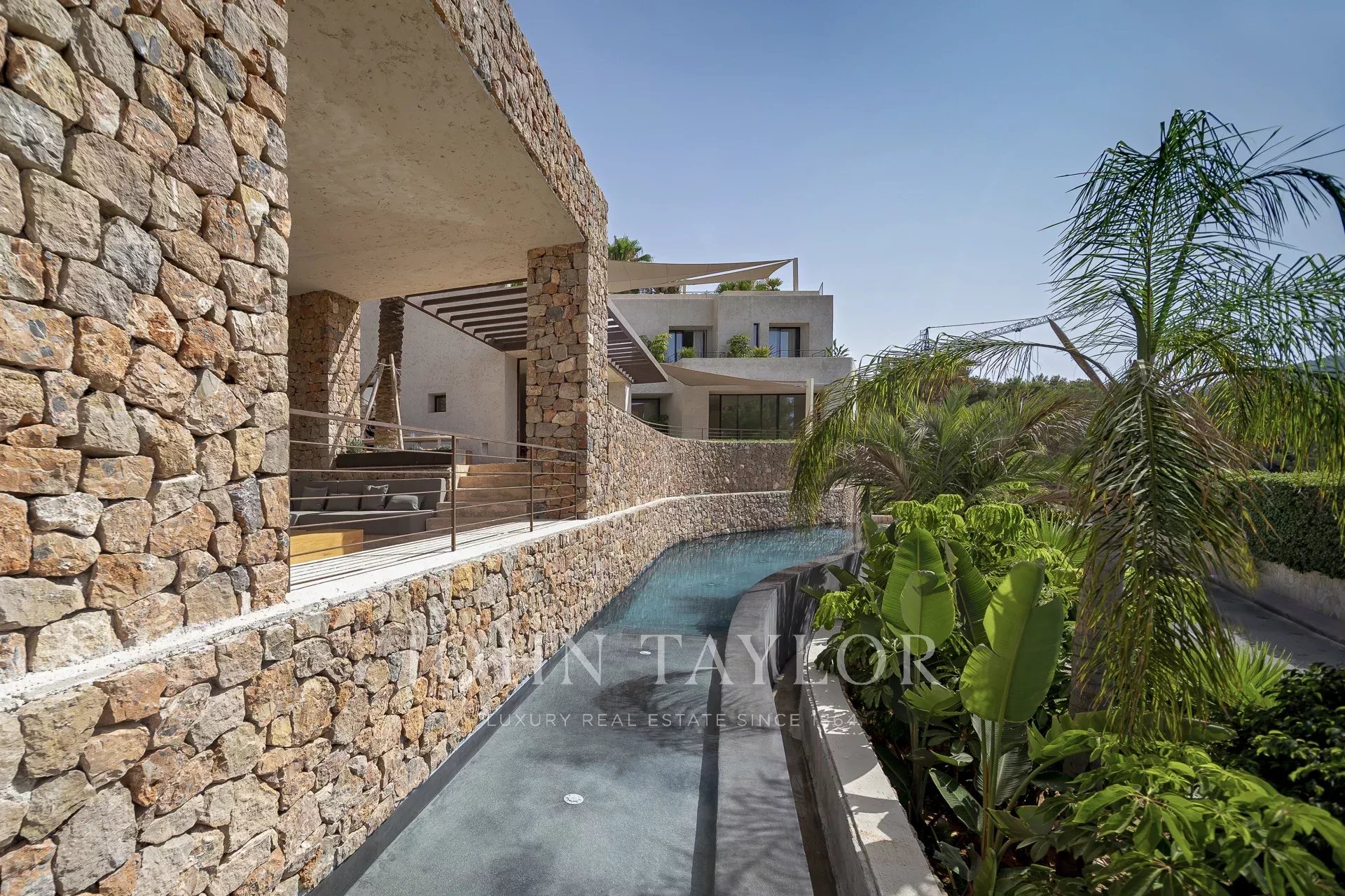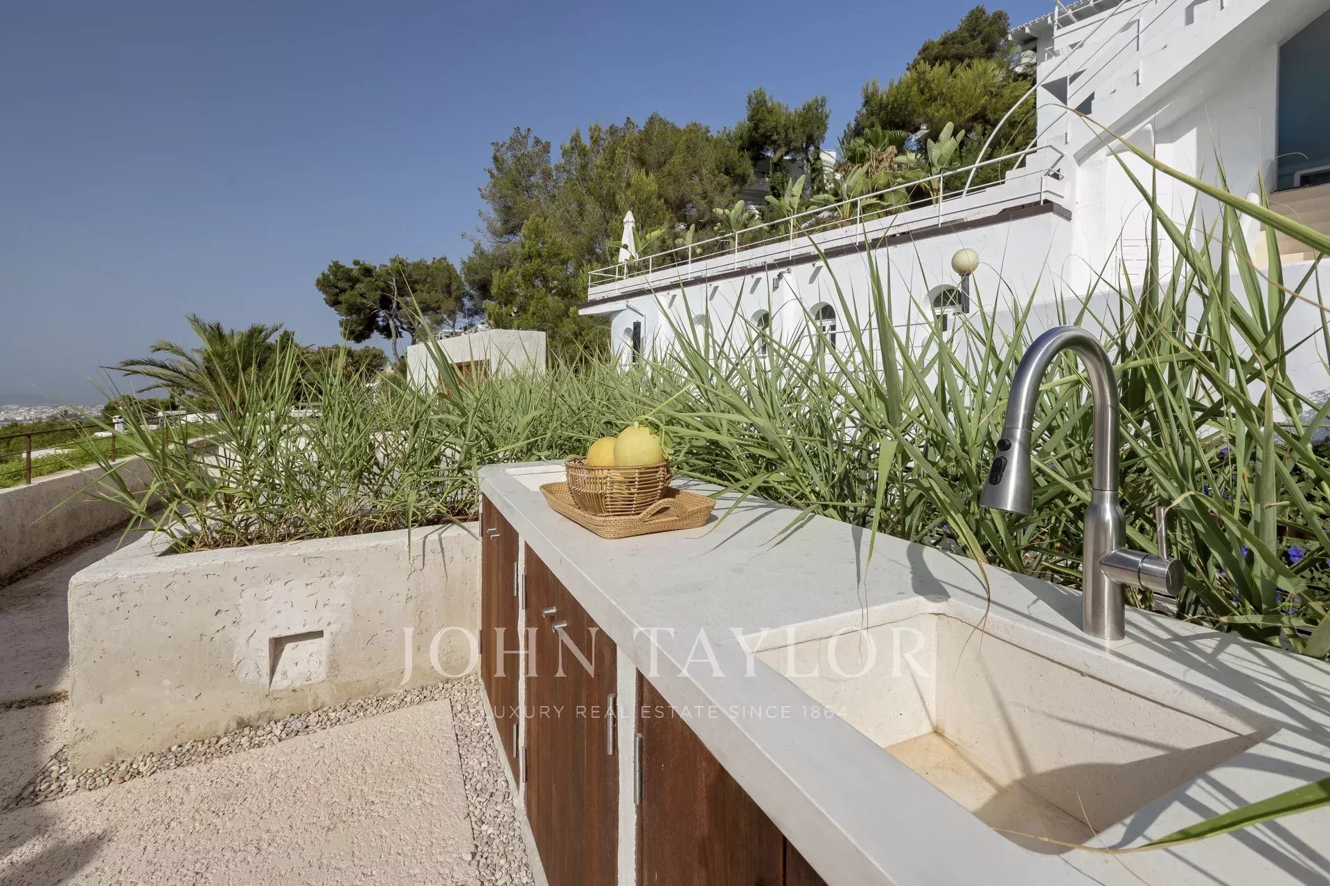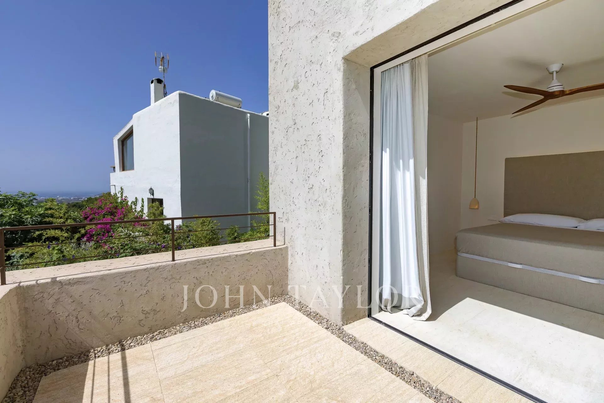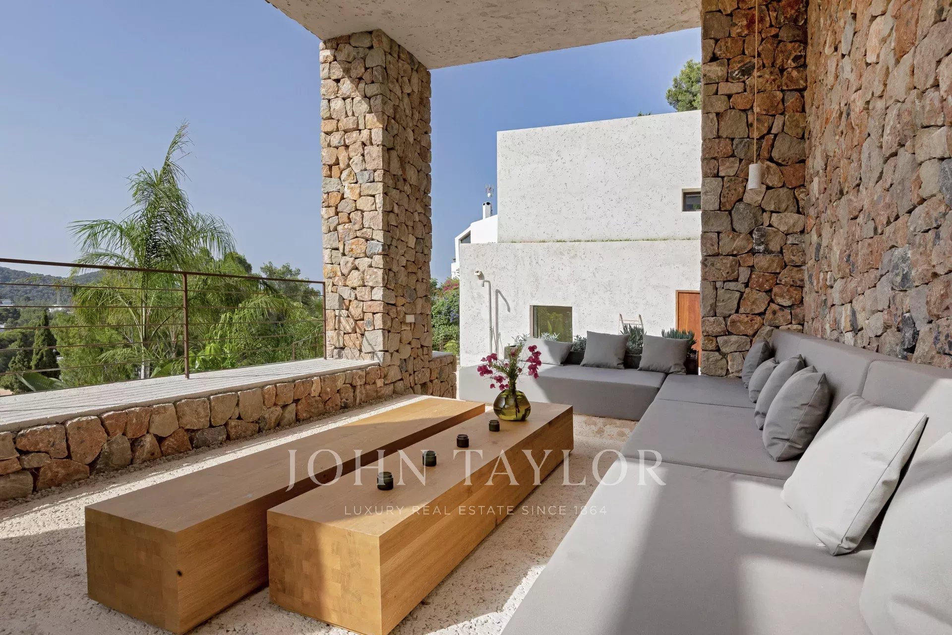 L'intera casa si affaccia su Ibiza e sul Mar Mediterraneo, con un'architettura molto mediterranea e le sue piante in piscina rendono questa casa unica nella zona.