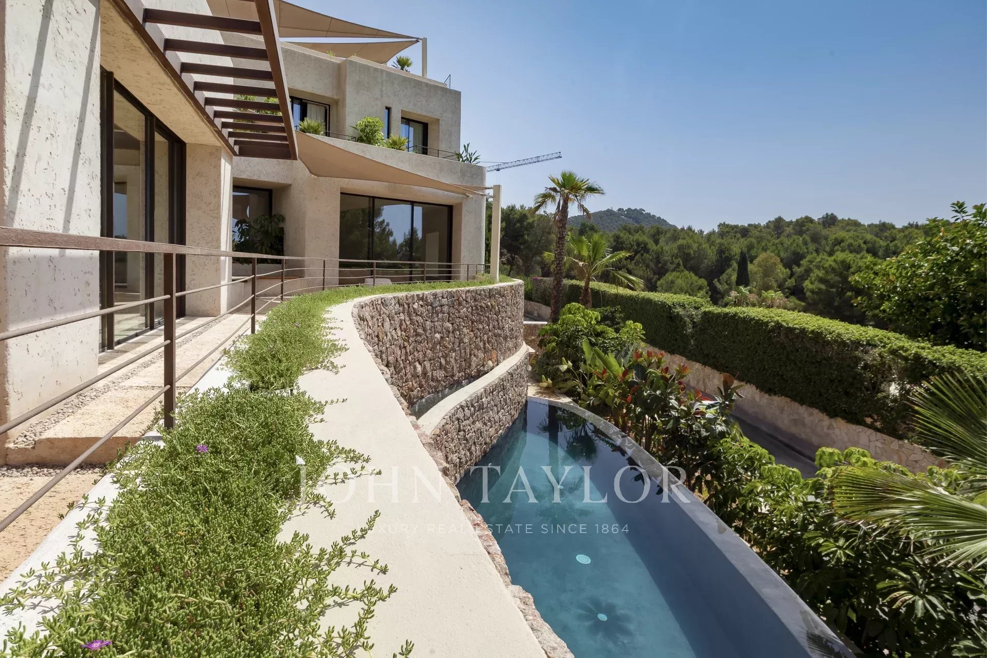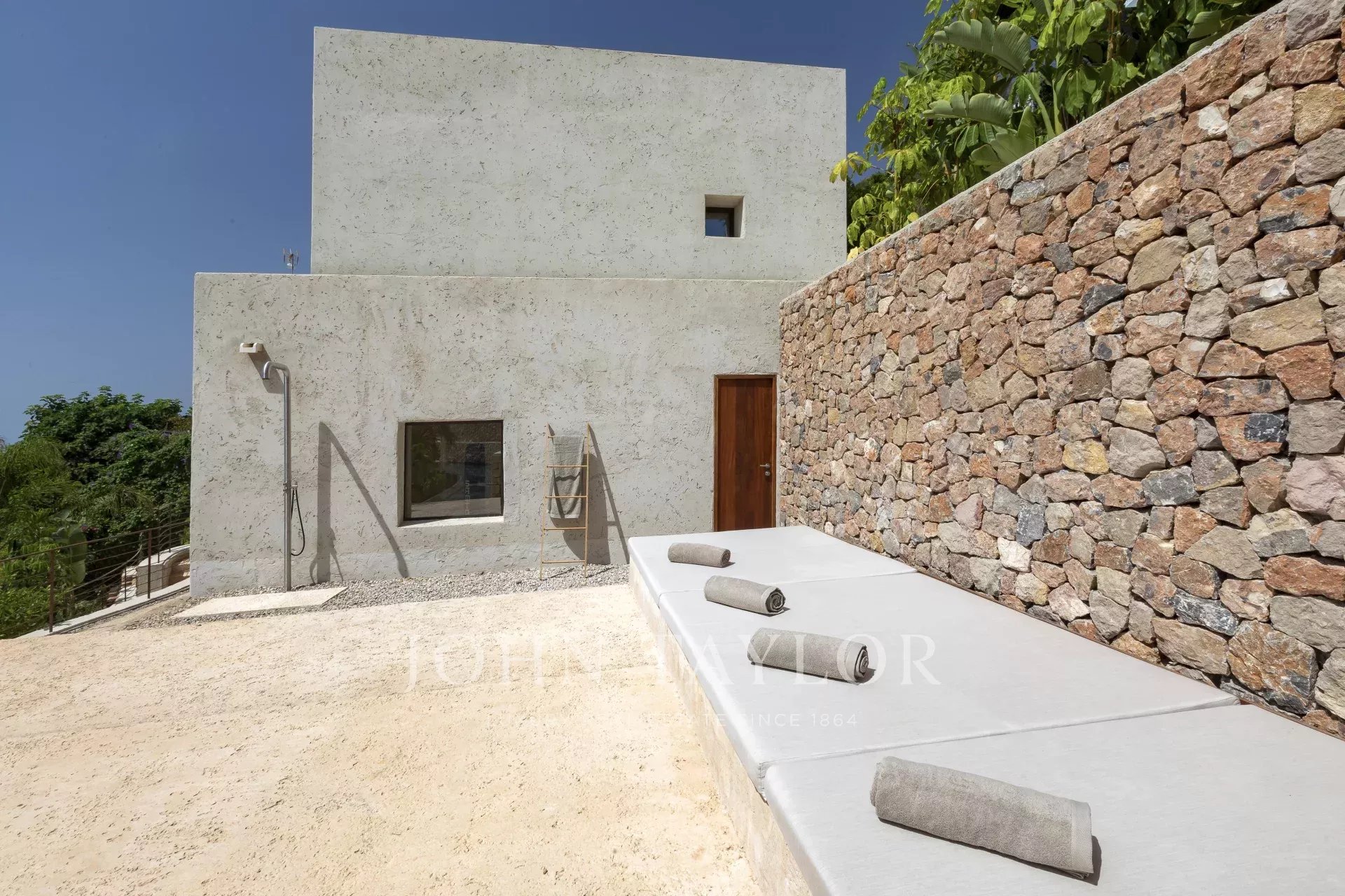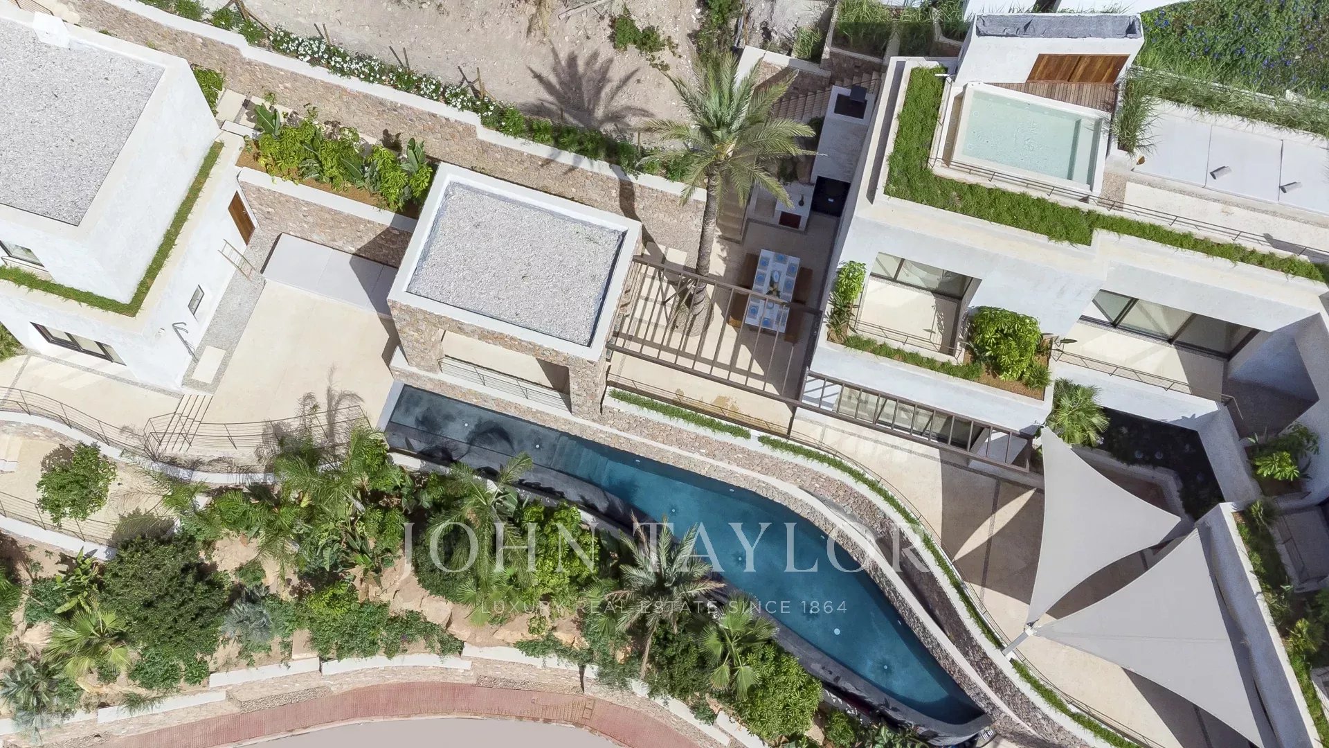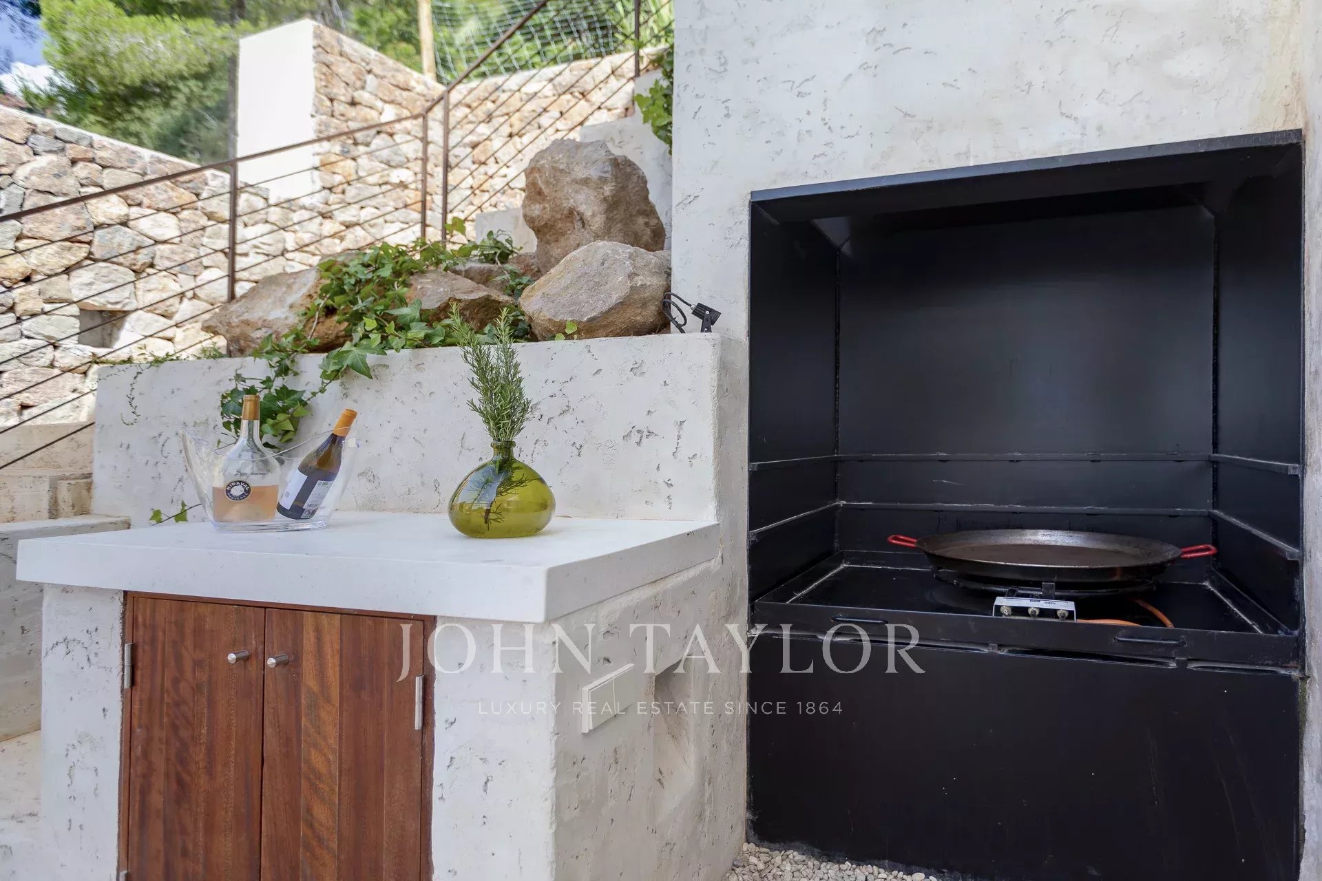 L'intera casa si affaccia su Ibiza e sul Mar Mediterraneo, con un'architettura molto mediterranea e le sue piante in piscina rendono questa casa unica nella zona.