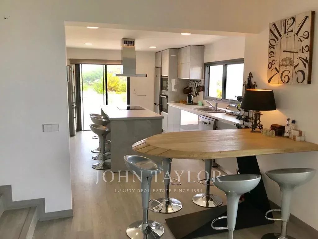 Con 560 m² costruiti, la villa dispone di ampi interni con grande potenziale di ristrutturazione, ideali per una residenza familiare o per ricevere ospiti. Comprende cinque camere da letto con bagno privato, assicurando comfort e riservatezza. Terrazze e balconi circondano la casa, perfetti per godersi l’atmosfera mediterranea, mentre l’orientamento sud-ovest permette luce naturale durante tutto il giorno e viste sul tramonto.