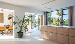 Ogni angolo della villa è arredato con mobili di design esclusivi e dettagli accuratamente selezionati. All'esterno, un giardino ben curato circonda una bellissima terrazza in legno africano e una grande piscina con un'area lounge, perfetta per godersi momenti indimenticabili con i propri cari.