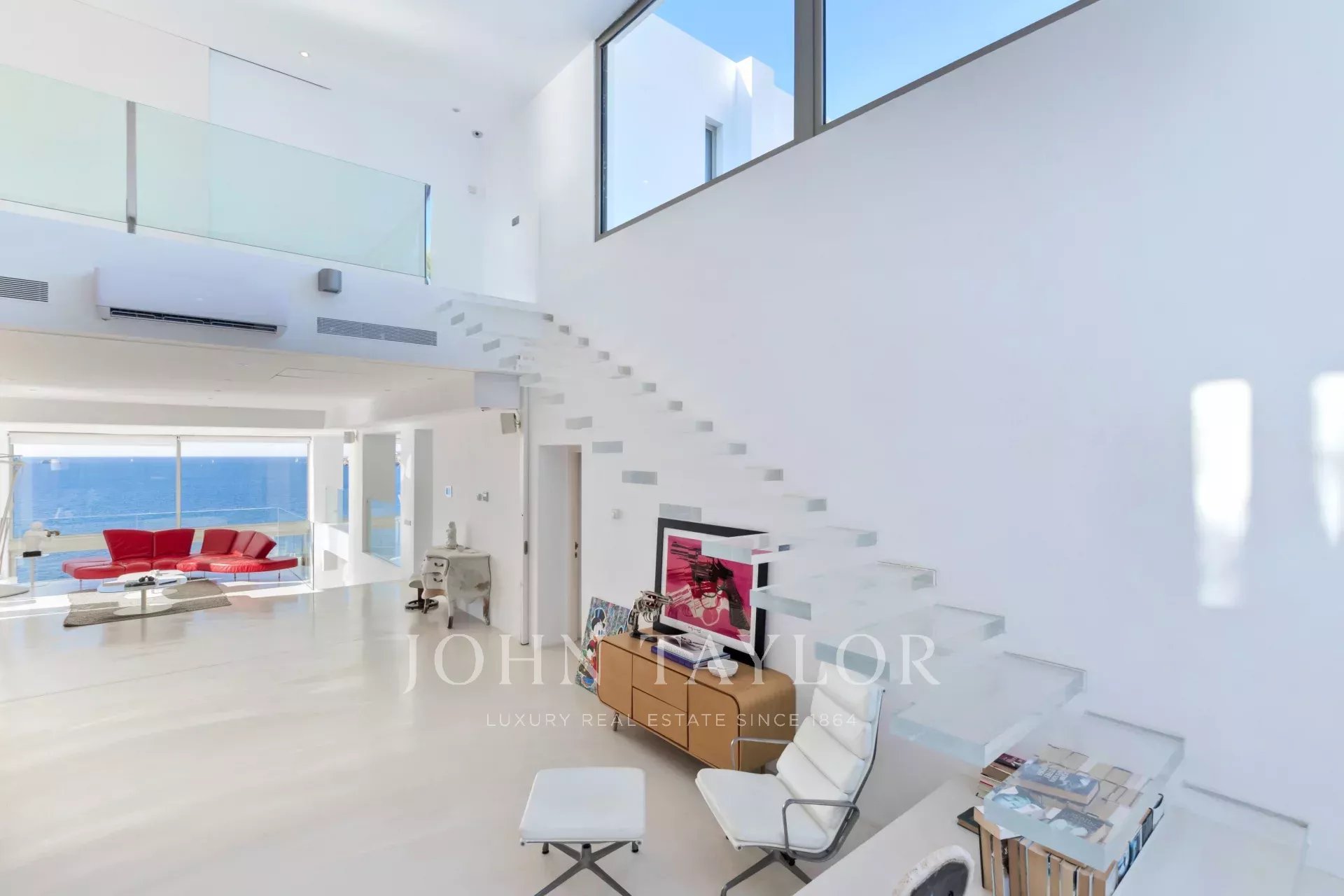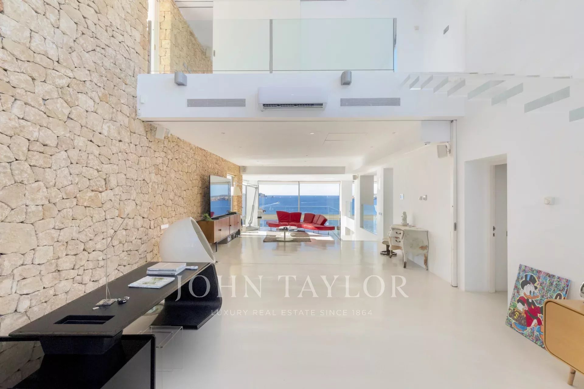La villa dispone inoltre di una palestra privata e di un accesso diretto al mare, un privilegio raro sull’isola.