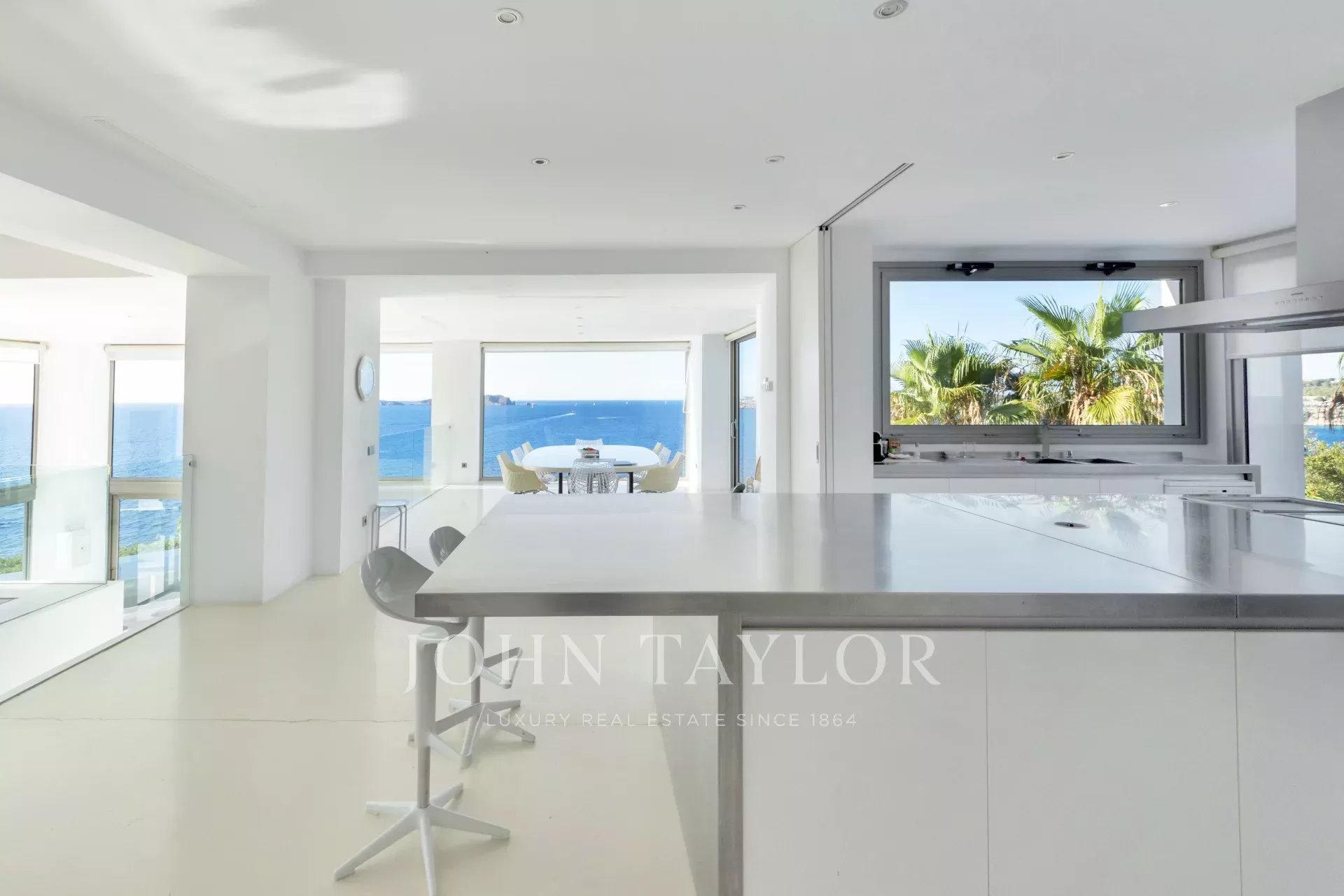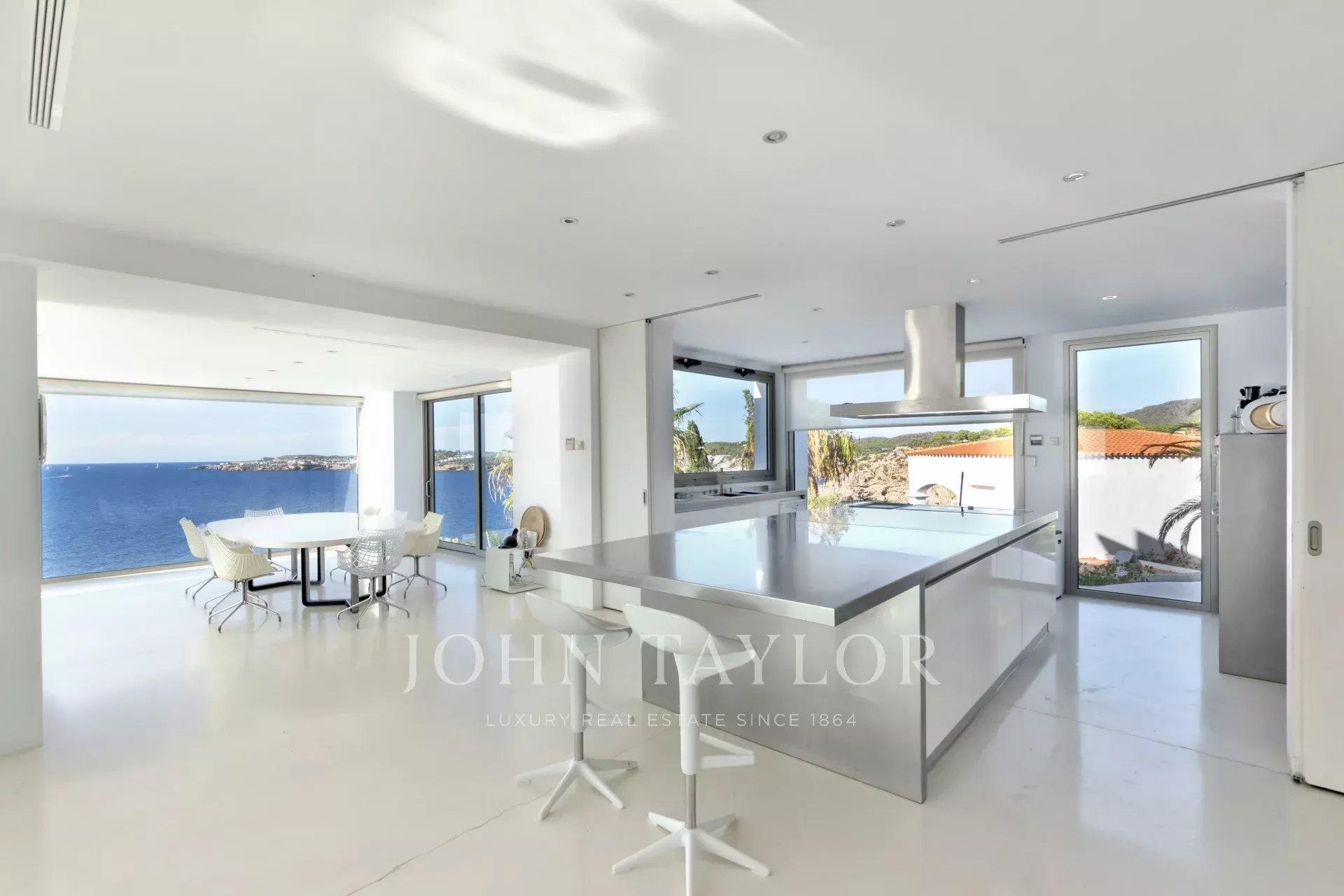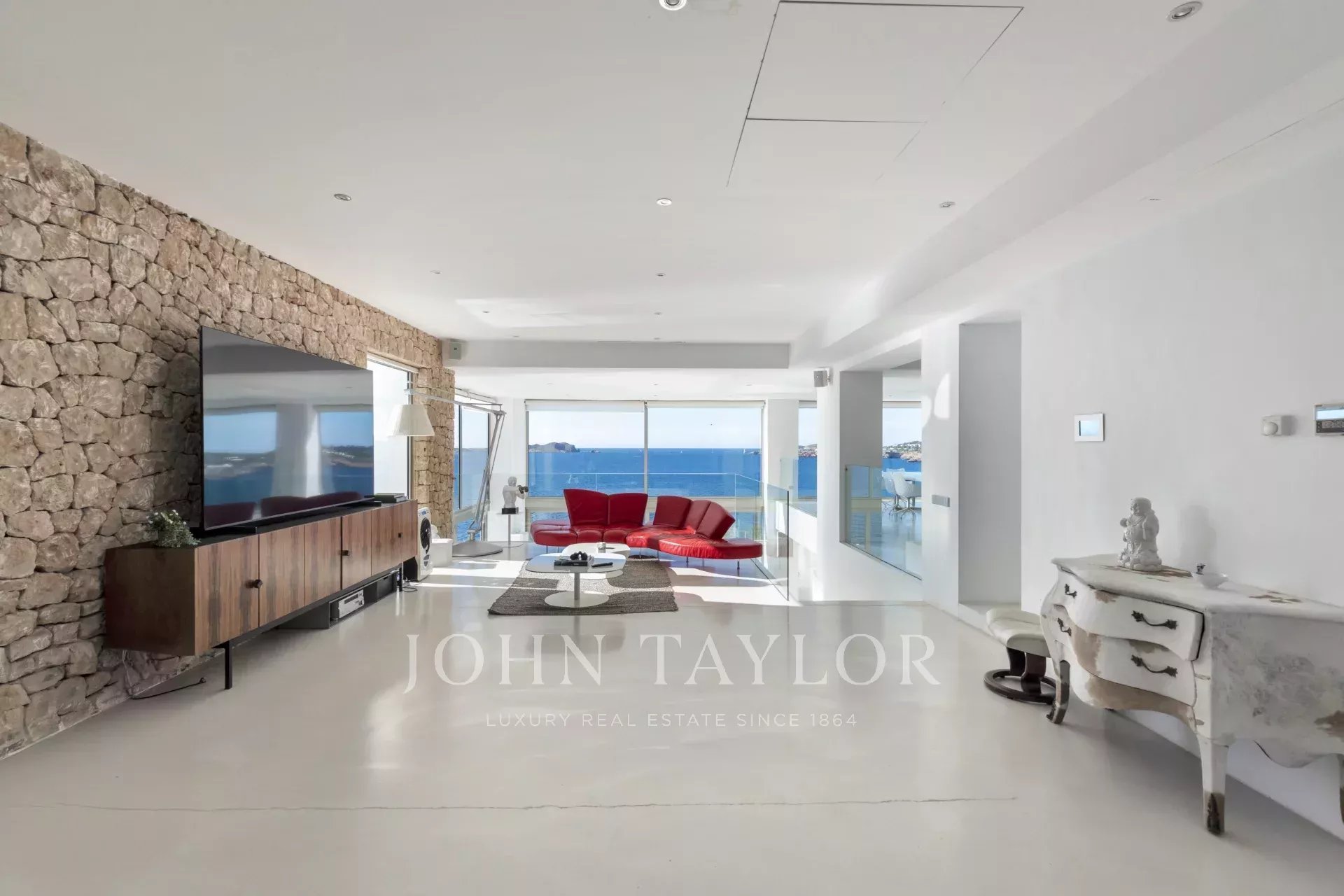 Con sette ampie camere da letto e sette bagni, la proprietà offre spazio e comfort per vivere appieno lo stile di vita mediterraneo. Gli interni luminosi e moderni si aprono su ampie terrazze con diverse zone chill-out, dove il mare è il protagonista, regalando una vista panoramica mozzafiato sul mare e sul tramonto.