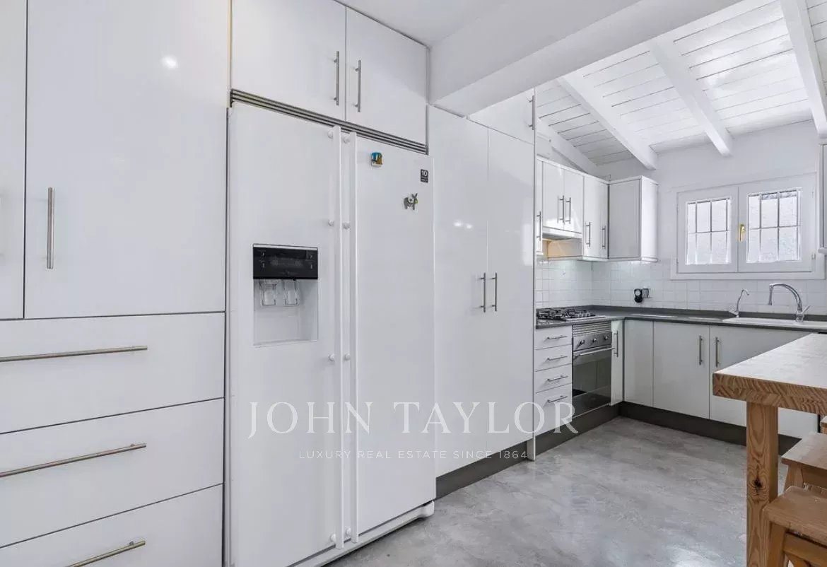 Al piano terra si trova un ampio appartamento che dispone di un grande soggiorno-sala da pranzo che si apre direttamente sul giardino, fondendo perfettamente la vita interna ed esterna. Il piano terra offre anche una cucina ben attrezzata e tre ampie camere da letto, ognuna con bagno privato. Inoltre, c’è una camera indipendente completamente attrezzata, che offre ulteriore flessibilità per gli ospiti o membri aggiuntivi della famiglia.