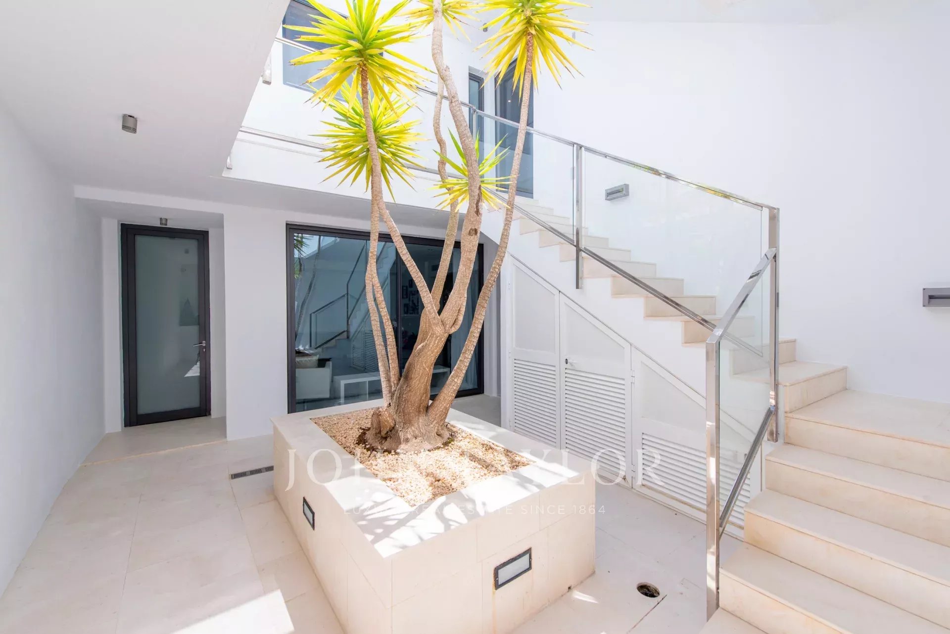 All'arrivo, troverete un parcheggio privato per due auto sopra la casa. Le aree esterne, ben curate, garantiscono la massima privacy. La terrazza sul tetto, allo stesso livello del parcheggio, offre una vista mozzafiato ed è perfetta per prendere il sole, fare yoga o gustare un cocktail. La terrazza principale, collegata al soggiorno, presenta una piscina a sfioro circondata da lettini e tavolo da pranzo, con un'area coperta che offre ombra e comfort. Godetevi i tramonti mozzafiato con una privacy totale dalle case vicine. Il piano terra comprende un patio aperto, perfetto per creare un'area esterna privata, nonché la zona lavanderia e un ulteriore spazio di stoccaggio.