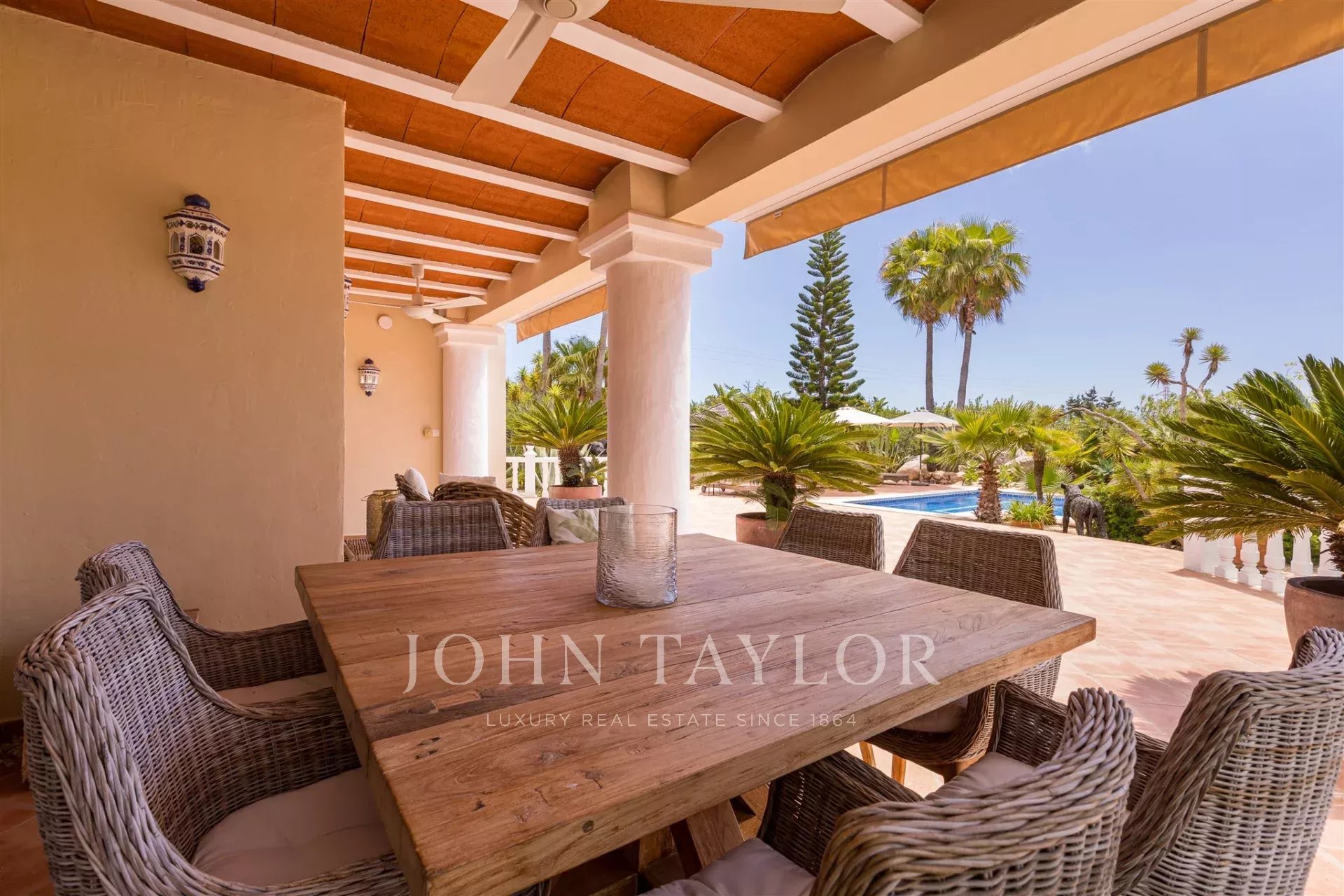 Costruita nel 2001 e rinnovata nel 2018 con materiali di alta qualità di Porcelanosa, la villa dispone di 300 m² di superficie abitabile distribuiti su due piani, dove il fascino classico si fonde con la comodità moderna. La casa principale dispone di tre ampie camere da letto, ciascuna con bagno privato, garantendo massimo comfort e privacy. Inoltre, c'è una dependance con una camera da letto aggiuntiva, un soggiorno accogliente, una cucina e una terrazza privata.