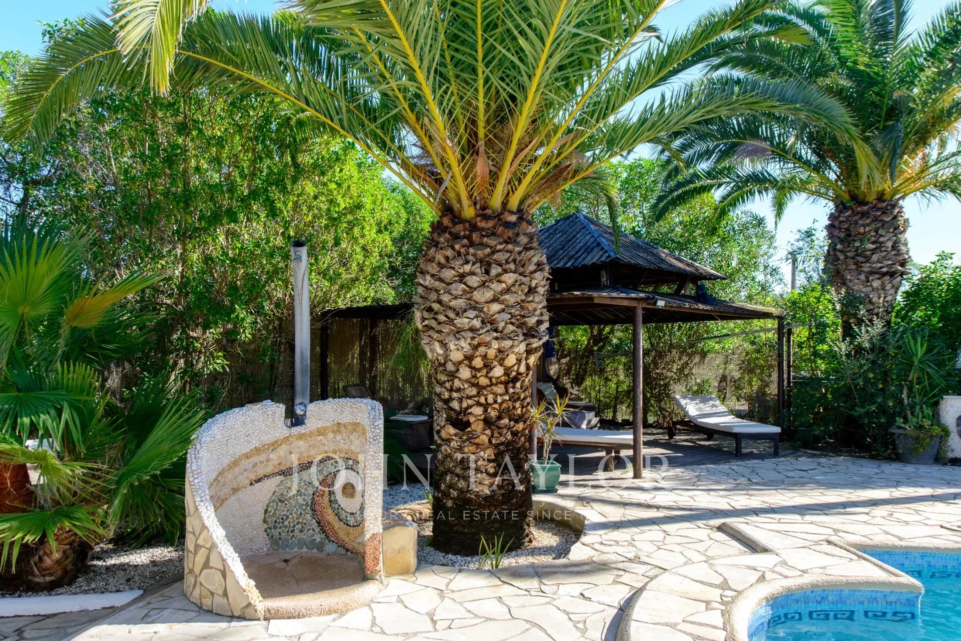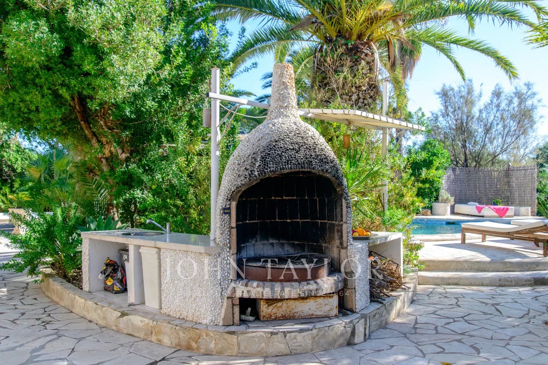 Al piano terra, il soggiorno spazioso con camino si collega a una cucina completamente attrezzata. La suite matrimoniale, con accesso diretto alla terrazza esterna, e due camere da letto aggiuntive che condividono un bagno, offrono uno spazio abitativo confortevole e luminoso. Tutte le camere sono dotate di aria condizionata e riscaldamento centralizzato, garantendo comfort in tutte le stagioni. La terrazza esterna, ideale per godersi il sole di Ibiza, dispone di una piscina con possibilità di riscaldamento e di una vasca idromassaggio riscaldata, perfetta per il relax. Inoltre, l'area esterna è dotata di una cucina all'aperto con barbecue e di una doccia esterna, permettendo di godere dell'aria aperta in totale comfort.