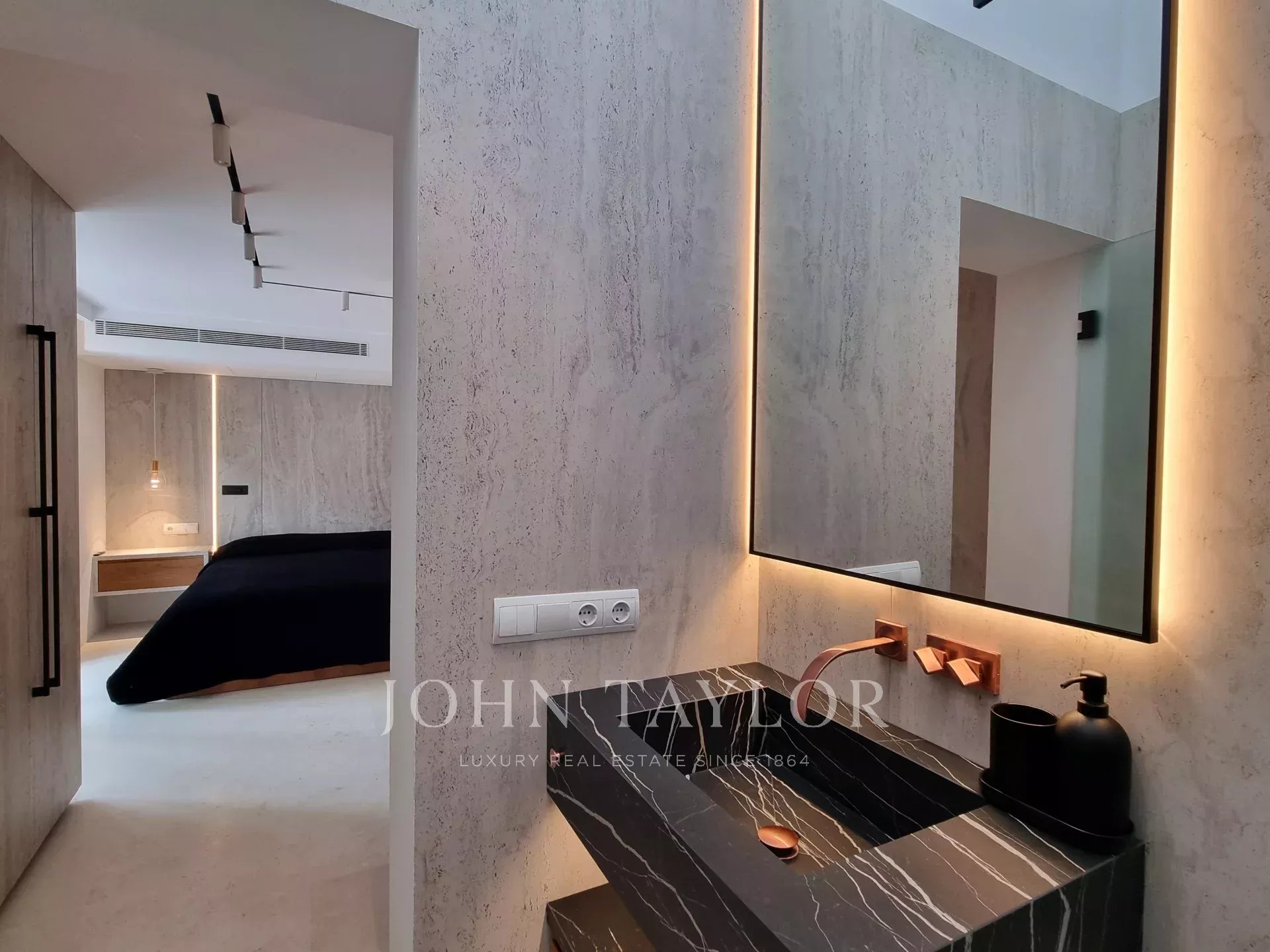 Nella casa principale, il luminoso soggiorno con zona pranzo open space sfrutta al massimo la luce naturale grazie alle finestre a tutta altezza che si aprono direttamente sulla terrazza e sulla piscina, offrendo viste mozzafiato sul mare. La villa dispone di sei camere da letto con bagno privato e armadi a muro. Al piano principale, tre camere doppie garantiscono comfort e privacy, una con vista diretta sulla piscina. Al piano superiore, altre due camere, raggiungibili tramite una scala esterna, si aprono su una terrazza panoramica con vista su Las Salinas e Formentera, completa di area relax con letto balinese. La sesta camera si trova nell’appartamento degli ospiti, garantendo indipendenza e privacy.