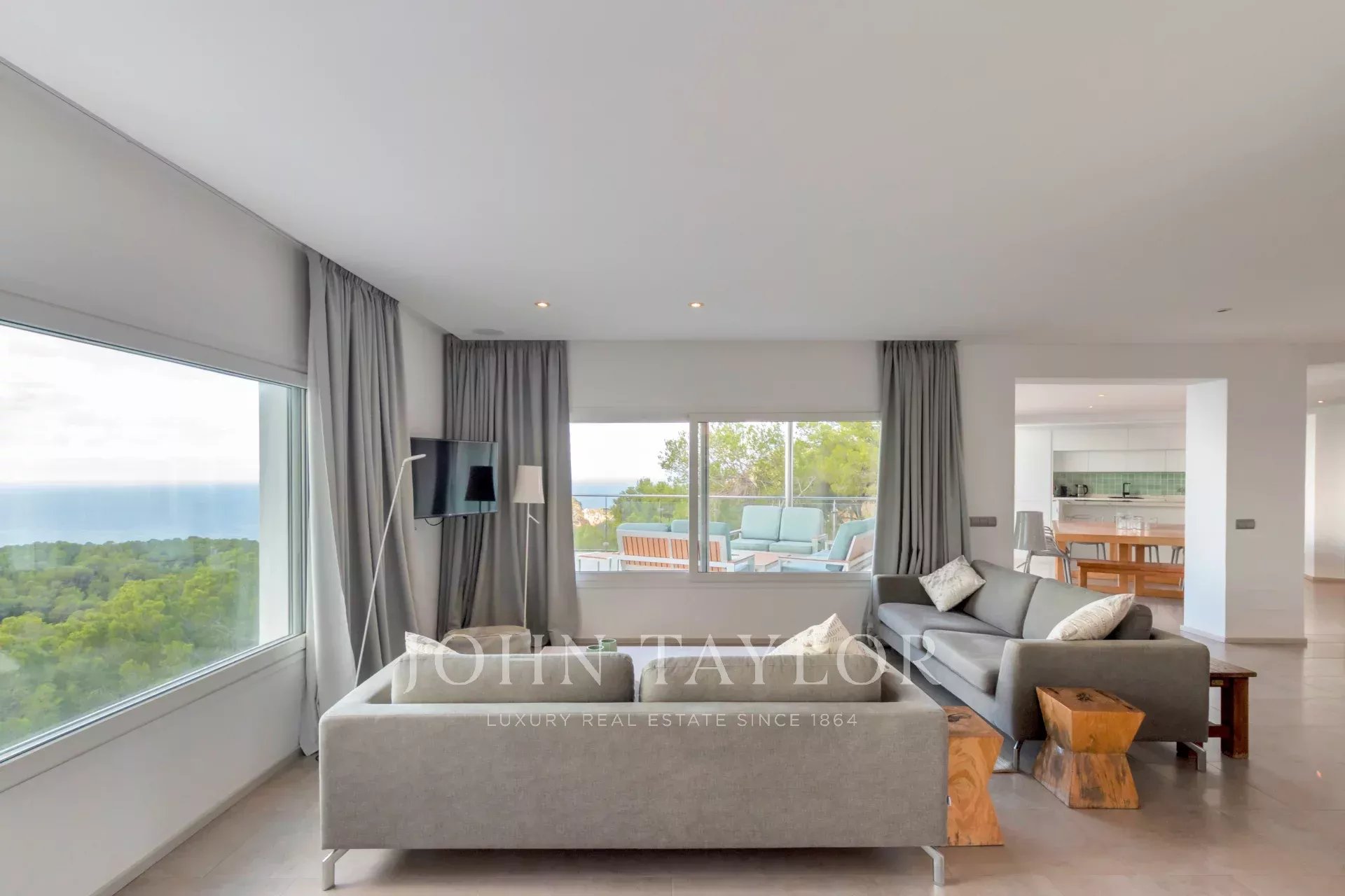 Situata su una collina, questa villa contemporanea colpisce per le sue spettacolari viste sul Mar Mediterraneo, visibili da quasi tutte le stanze. All'ingresso, si viene accolti da una zona giorno a pianta aperta, inondata di luce naturale, che si collega perfettamente a una cucina moderna. Le ampie finestre incorniciano il paesaggio naturale mozzafiato, creando una connessione diretta con l'esterno della villa.