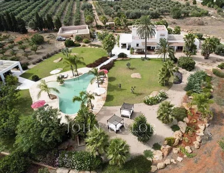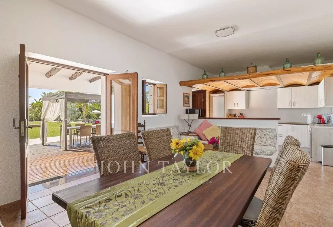 Benvenuti in un'autentica tenuta di campagna con mura massicce originali, situata con vista sulla costa di Es Canar. Questa villa, arredata nel tipico stile delle case di campagna di Ibiza, è ideale per famiglie o gruppi di amici. Potrete godere di ampi spazi esterni, di un vasto giardino e di una grande piscina che diventa il centro del divertimento.