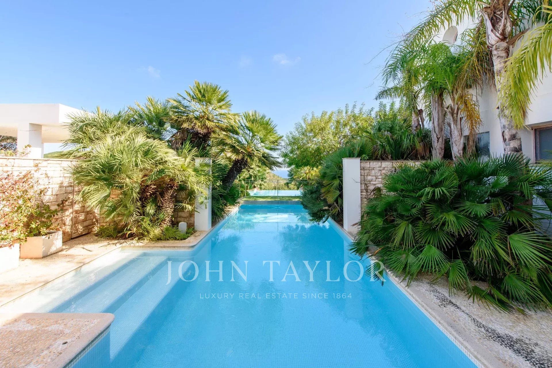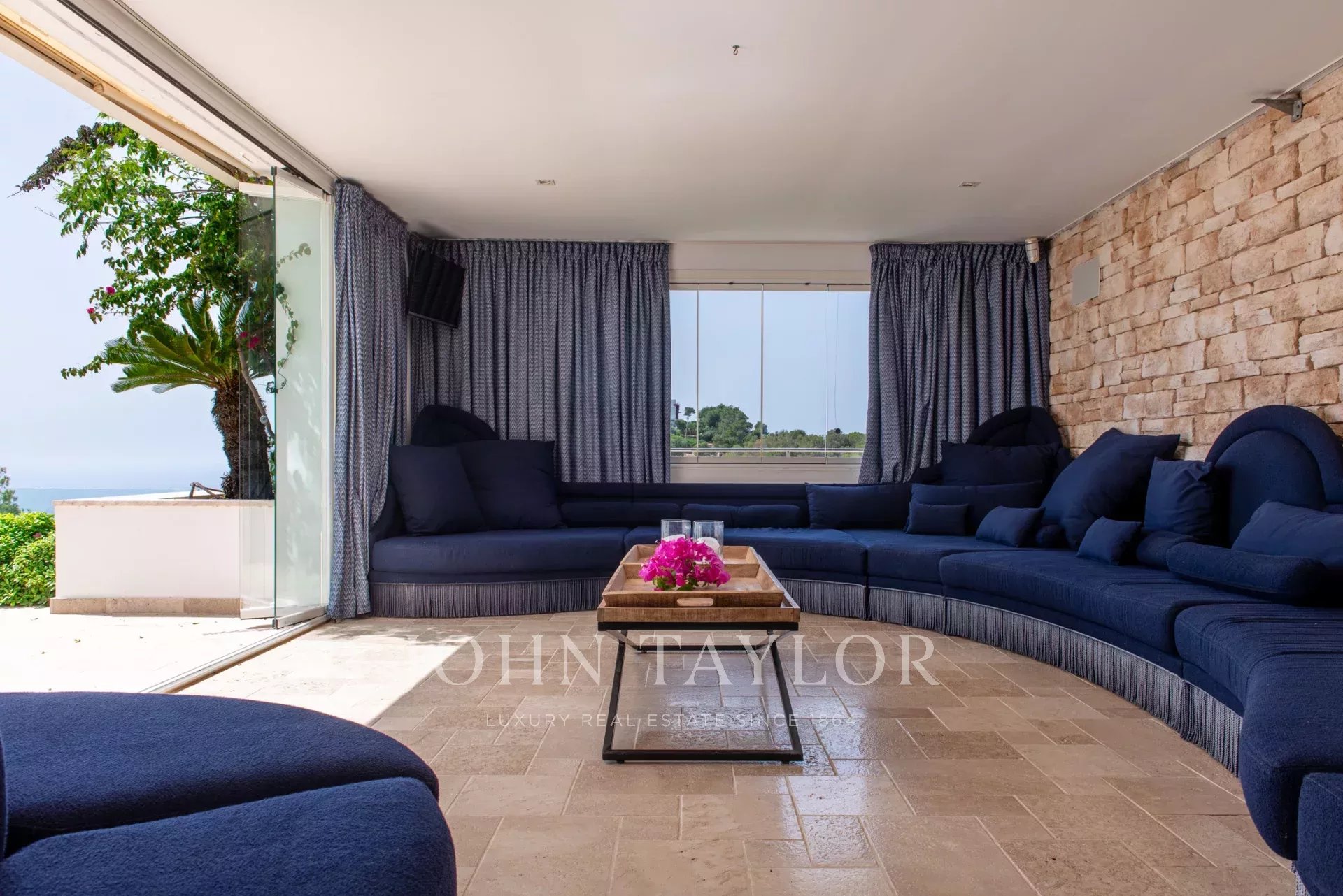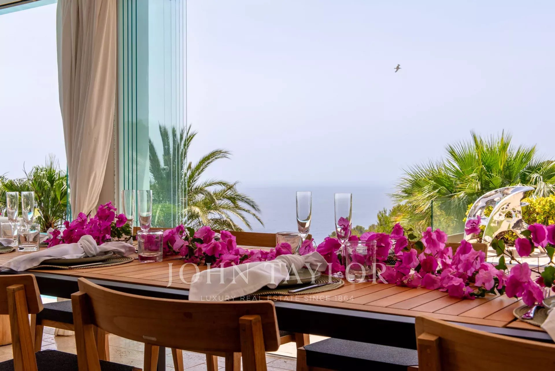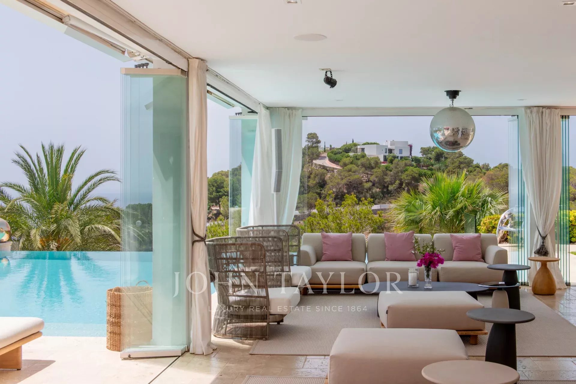 Situata in una delle zone più esclusive del sud-est di Ibiza, questa proprietà di lusso unisce privacy, design contemporaneo e viste panoramiche sul Mar Mediterraneo. Con oltre 1.300 m2 di spazio costruito su un terreno paesaggistico di 6.000 m2, offre una posizione privilegiata circondata da boschi di pini.