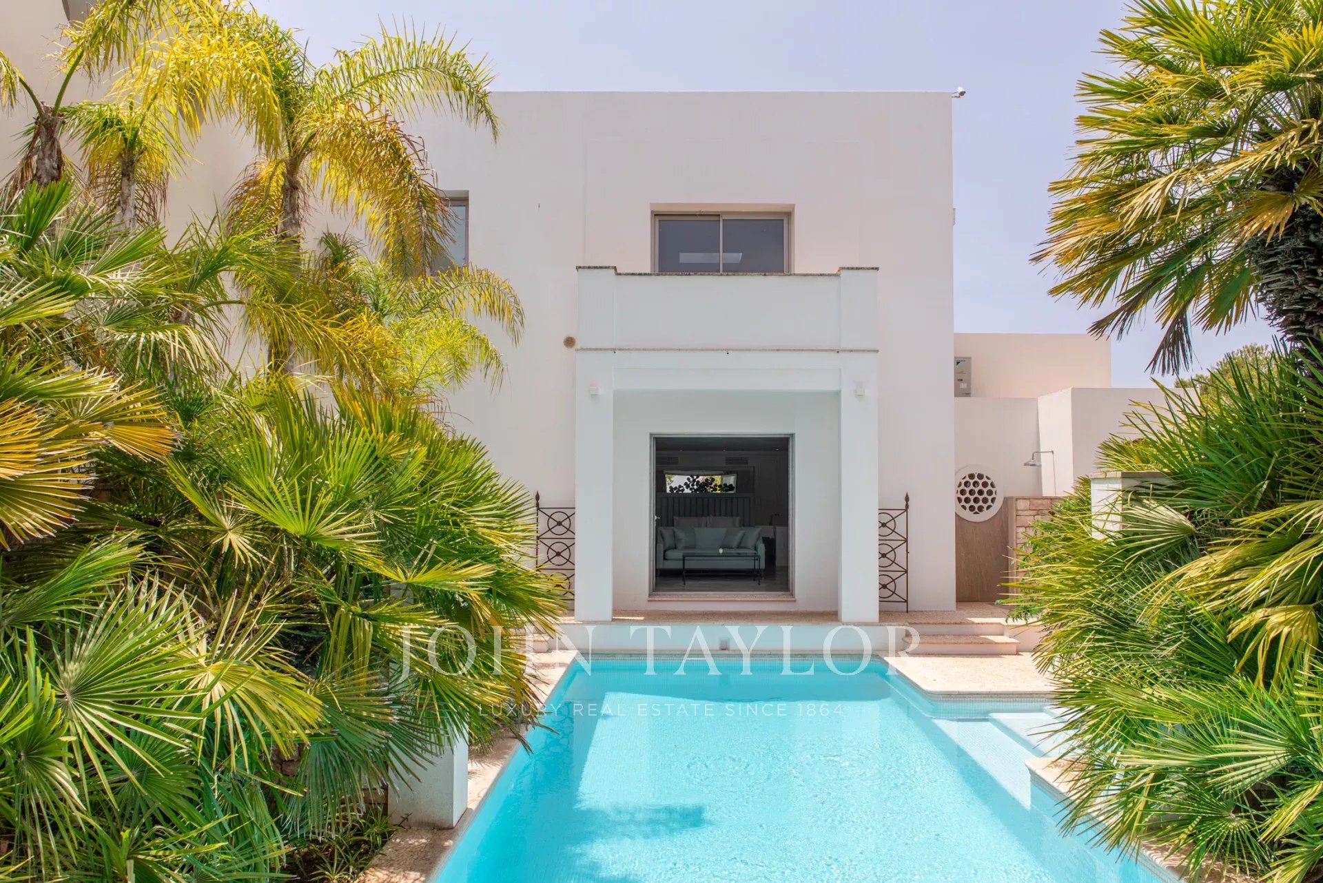 Gli interni offrono un ampio salotto panoramico, eleganti salotti, due raffinati sale da pranzo, una sala TV, una cantina privata e un pianoforte a coda. La villa principale dispone di due cucine completamente attrezzate, una domestica e una professionale. La villa principale ospita sei camere da letto con bagno privato, cabine armadio e bagni privati. La camera da letto principale ha accesso diretto alla piscina, un bagno turco e una cabina armadio. C'è anche una sala cinema con cucina indipendente e una zona di servizio con due camere per il personale.