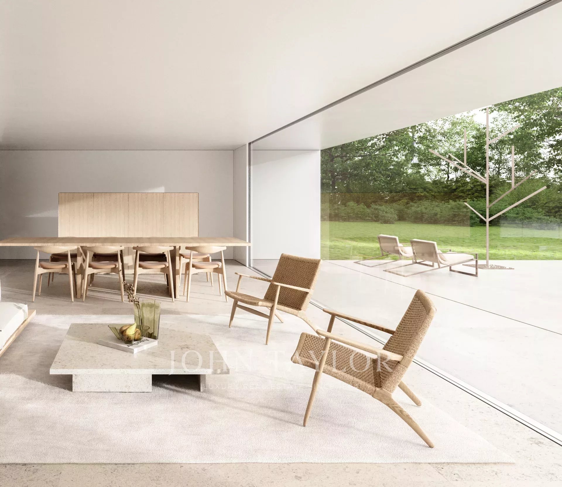 Con un'eleganza minimalista e una precisione tecnica straordinaria, la villa è concepita come un unico elemento continuo, formato da sottili lastre piegate di soli 9 centimetri di spessore, che seguono la topografia naturale del terreno. Architettura e paesaggio si fondono in un'espressione minimalista ampia e sofisticata.