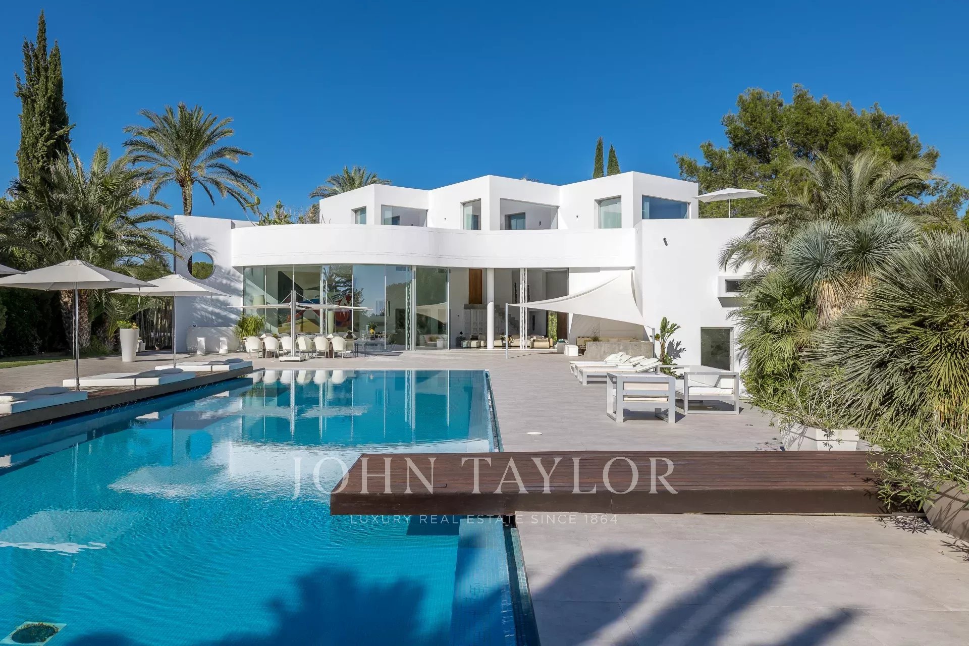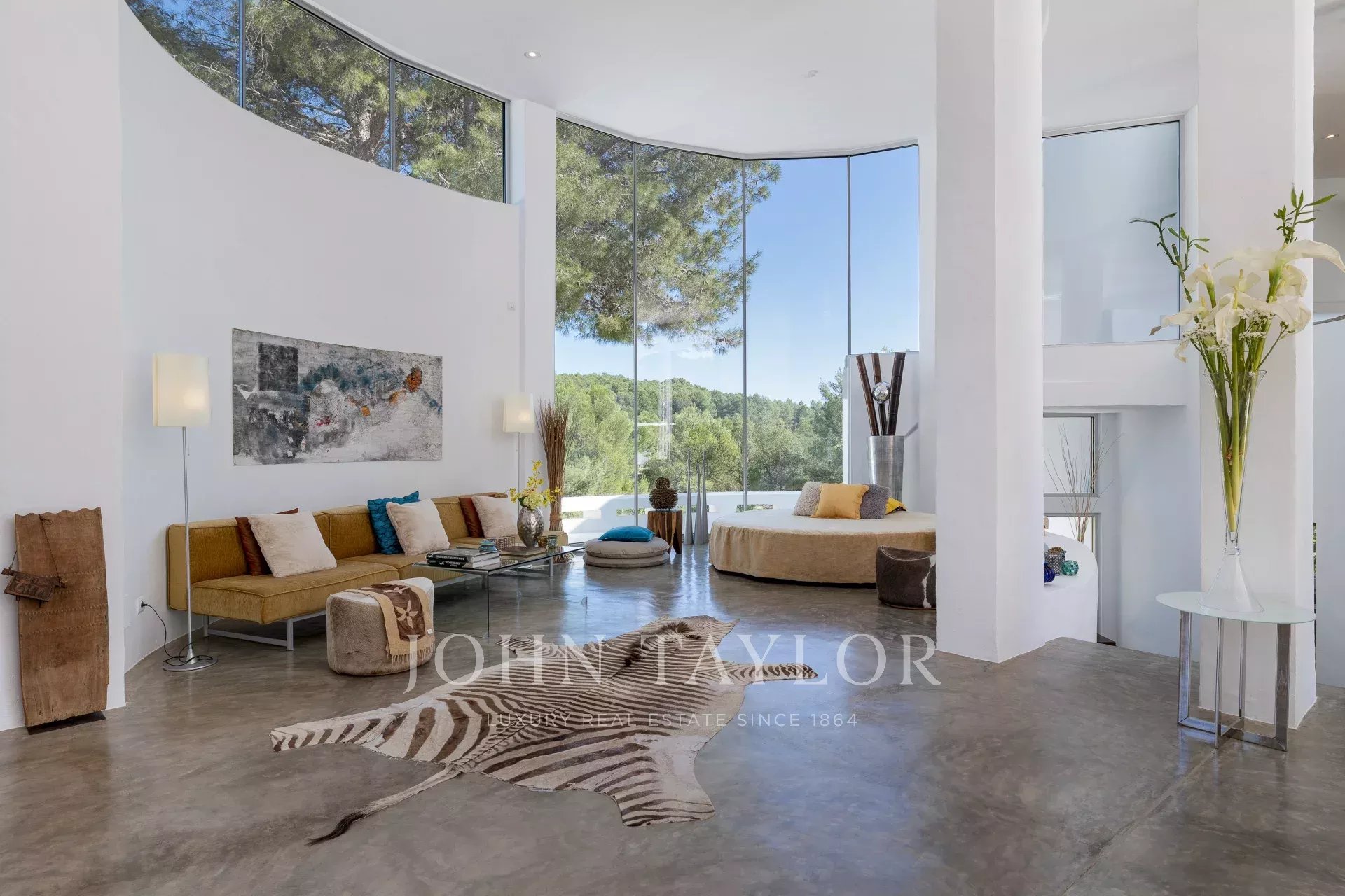 Situata a breve distanza dal cuore vibrante dell'isola, Santa Gertrudis, questa moderna villa si trova in una foresta verdeggiante, offrendo un perfetto rifugio per il relax e la fuga, ma al contempo pulsa di un'energia vivace e divertente impossibile da ignorare.