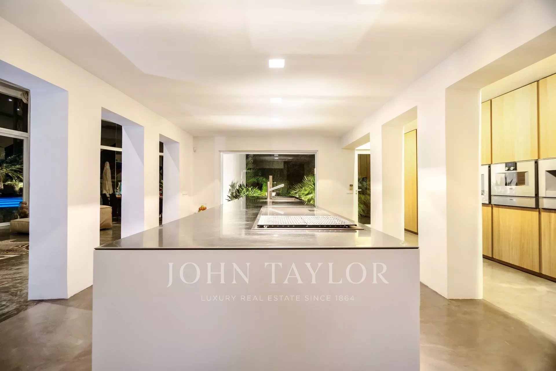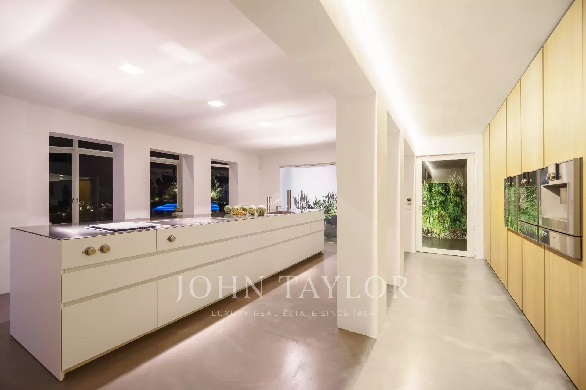La proprietà offre totale privacy, una piscina ampia, due case per gli ospiti indipendenti, un campo da tennis, una piscina interna e un magnifico giardino tropicale con alte palme e una ricca varietà di flora che offrono un viaggio sensoriale attraverso le essenze mediterranee.