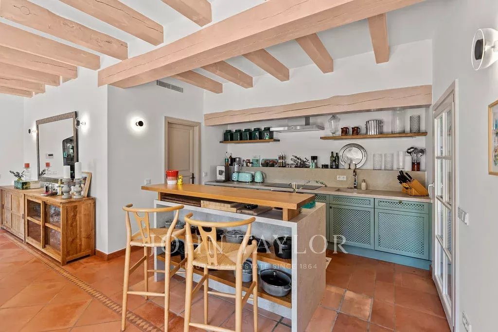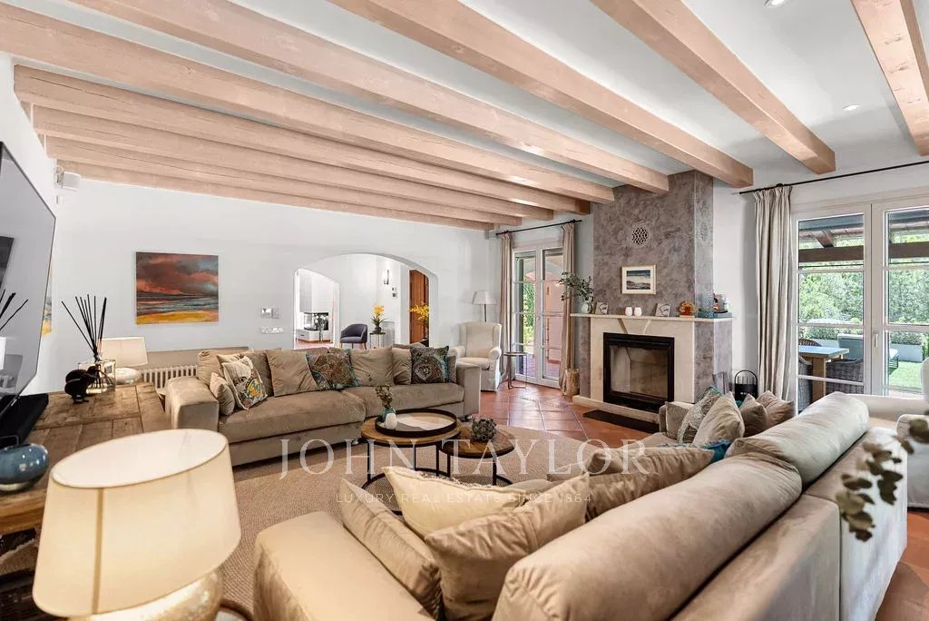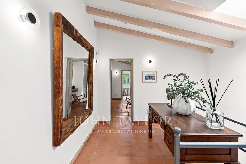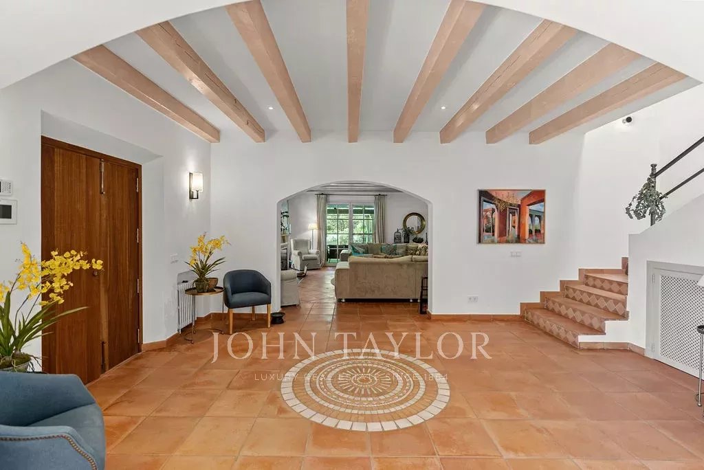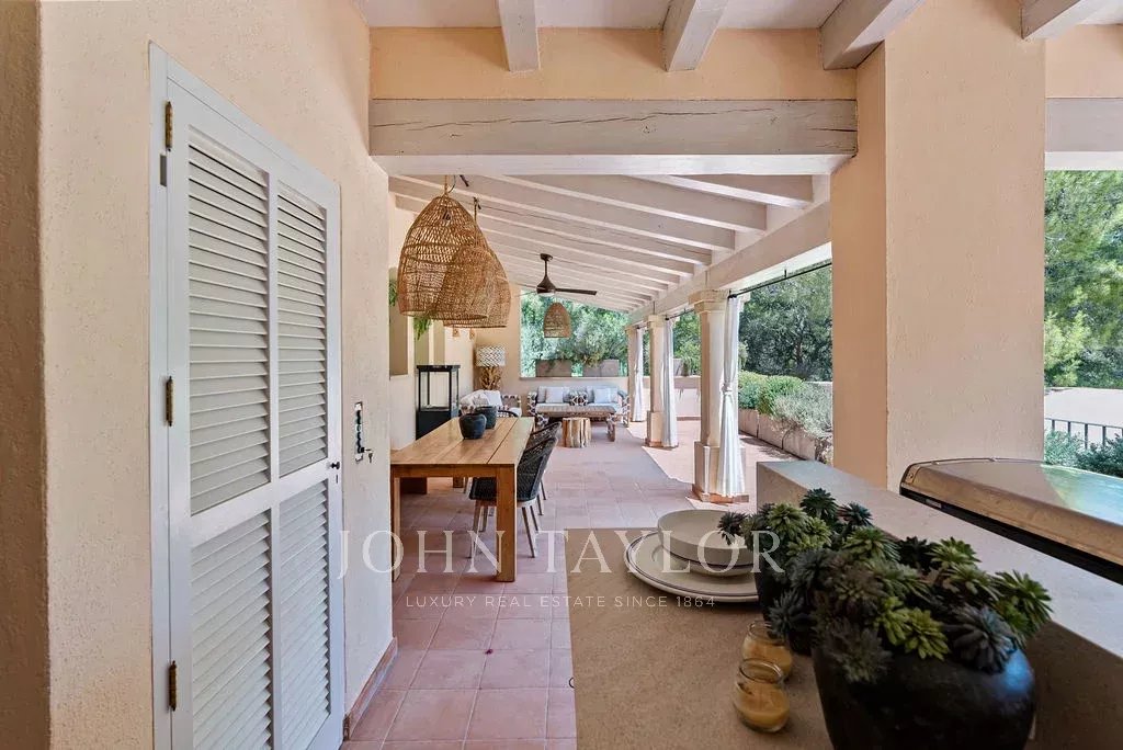 L'elegante soggiorno si estende su una terrazza coperta con vista sul mare, mentre l'esterno rivela un'oasi privata con una splendida piscina riscaldata di acqua salata, un'area barbecue e una cucina all'aperto, che invita a rilassarsi e distendersi nel cuore della campagna di Maiorca. La tenuta, con oltre 2200 m² di terreno e la particolarità di avere tre lotti aggiuntivi non edificabili, combina spaziosità e privacy in un ambiente di alto livello.