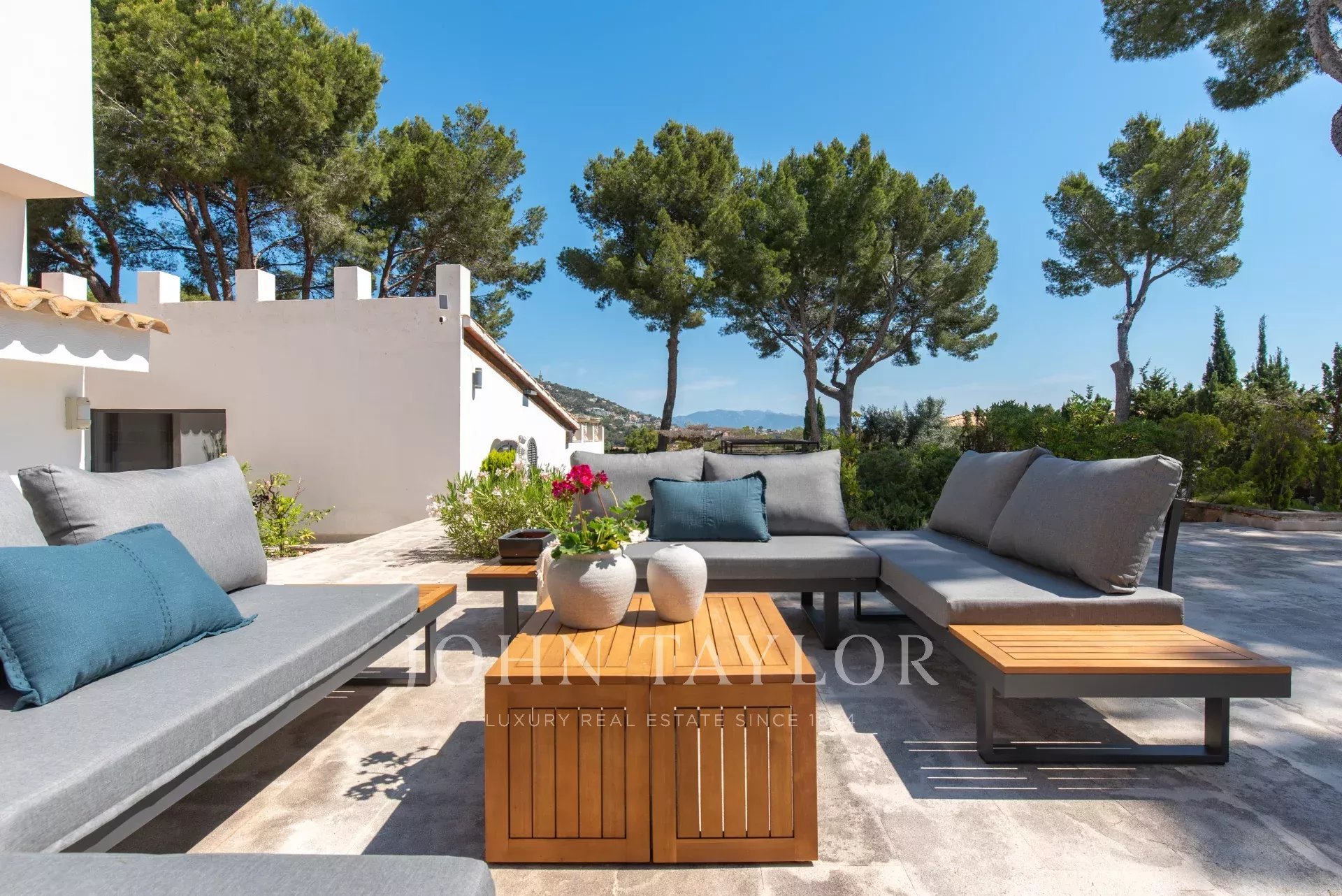 La villa si sviluppa in un'elegante zona d'ingresso, un ampio e luminoso soggiorno con accesso diretto all'area esterna, una cucina moderna completamente attrezzata, sei camere da letto e quattro bagni, due dei quali con bagno privato. La curatissima area esterna, impreziosita da una rigogliosa vegetazione mediterranea e da alberi che regalano freschezza e ombra, ospita una piscina, angoli ideali per il relax e un portico con area barbecue, perfetto per indimenticabili riunioni.
