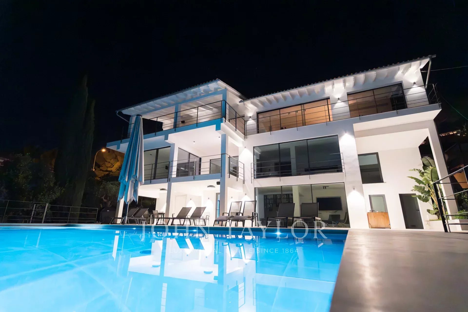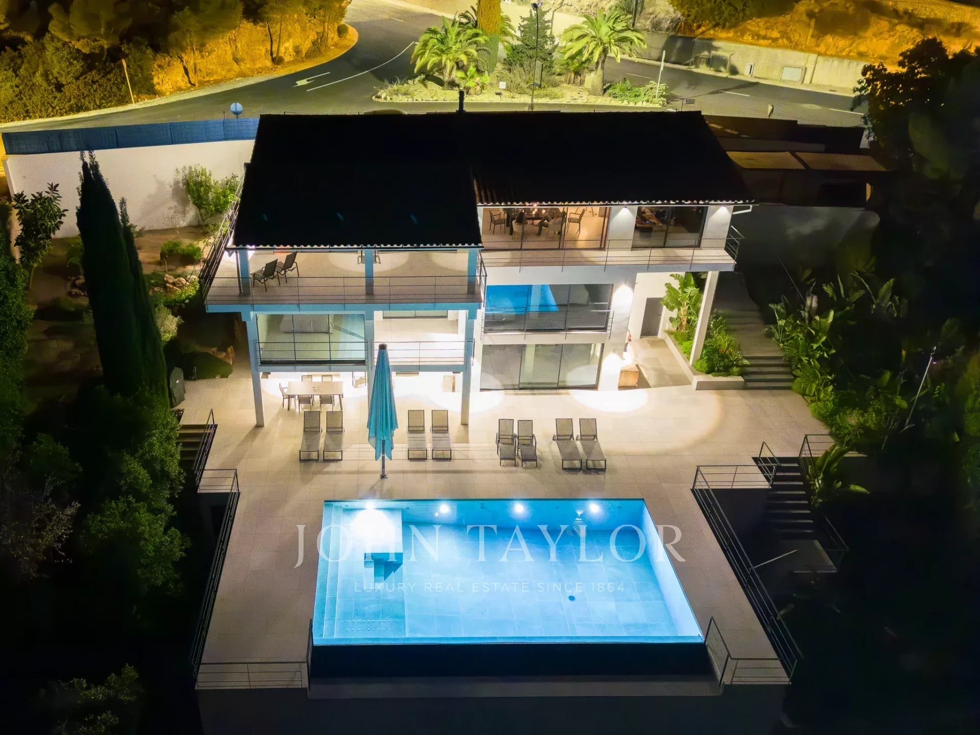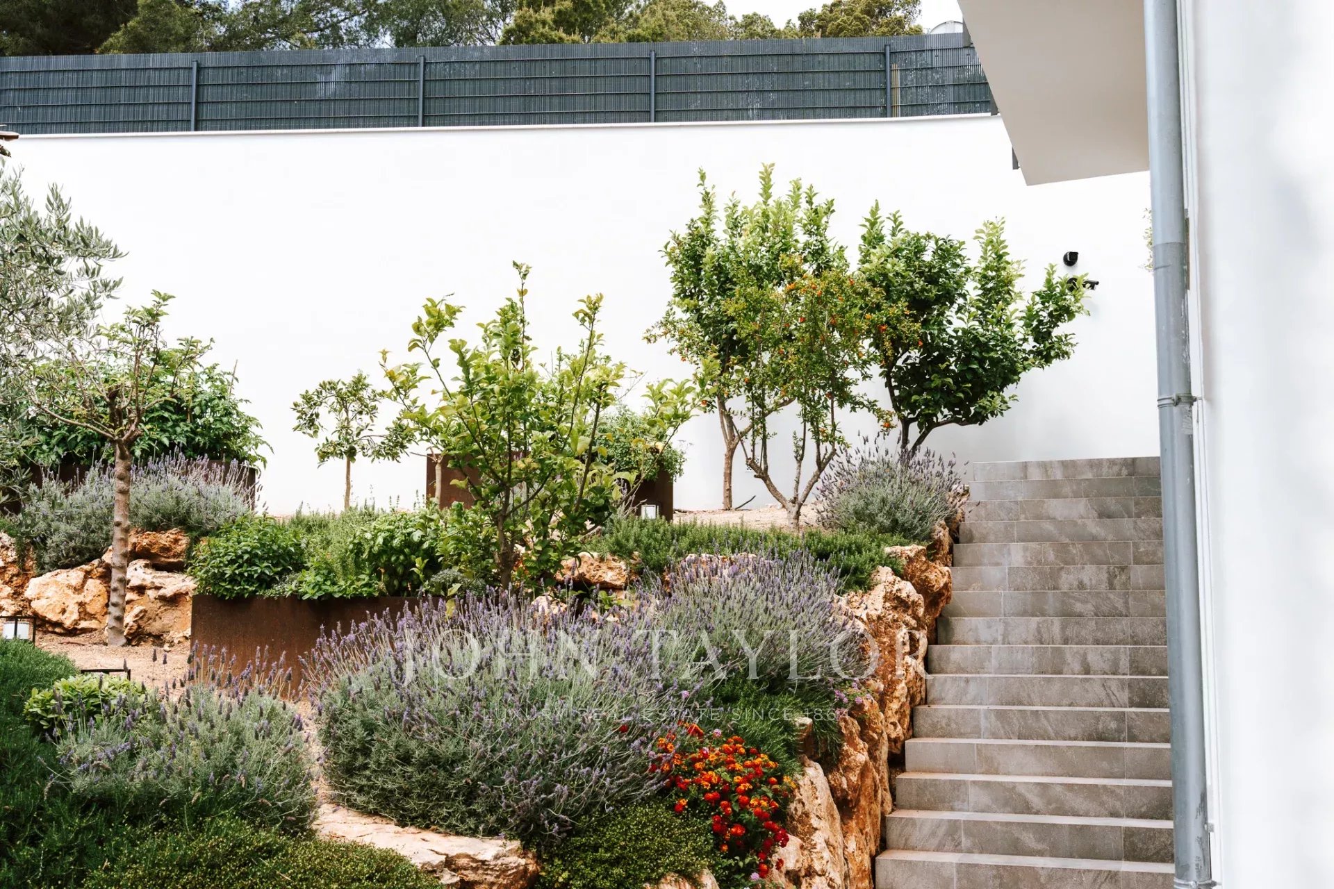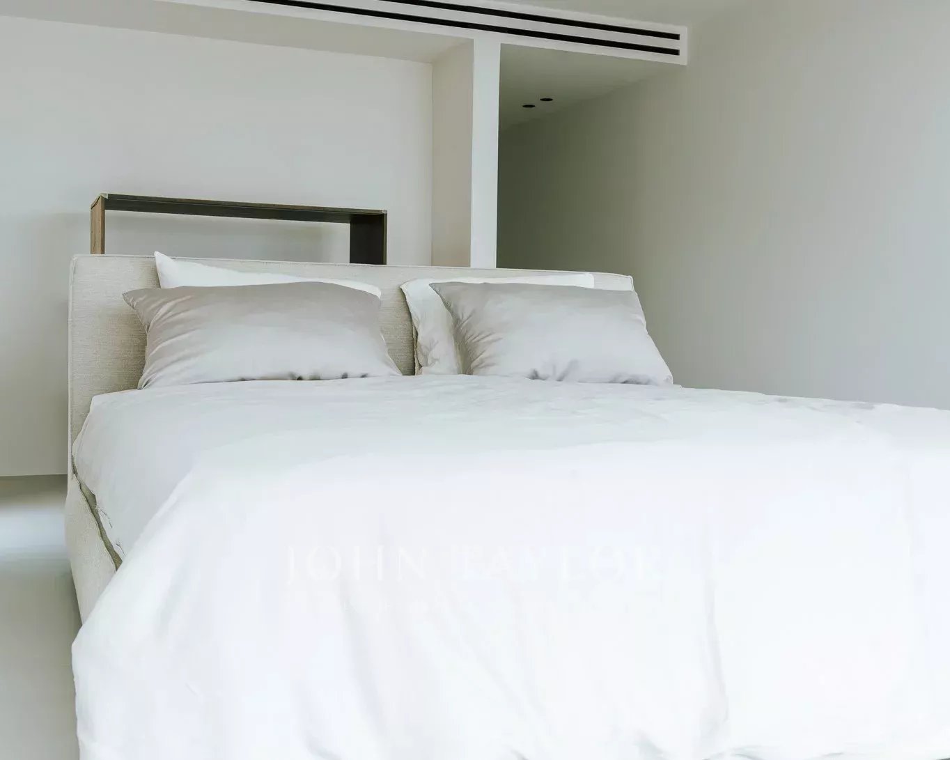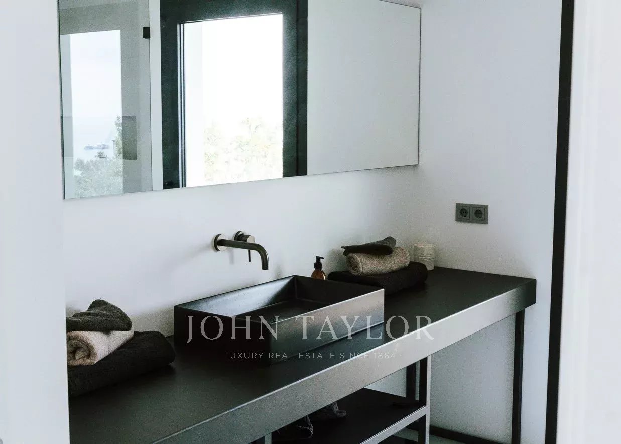 Una scala conduce alle camere da letto. Su questo livello, con sensazionali viste sul mare e affaccio sul cortile, si trovano tre camere da letto. Una di queste si trova in un grande appartamento per gli ospiti con accesso e spogliatoio privato. L'appartamento per gli ospiti è collegato alla camera da letto principale tramite una terrazza. La camera da letto principale ha un proprio spogliatoio e un lussuoso bagno interno. Accanto alla camera da letto principale si trova la terza camera da letto. Dal cortile, due scale (su ciascun lato della casa) conducono alla zona piscina con terrazza, dove si può ammirare il giardino di erbe e piante mediterranee.
