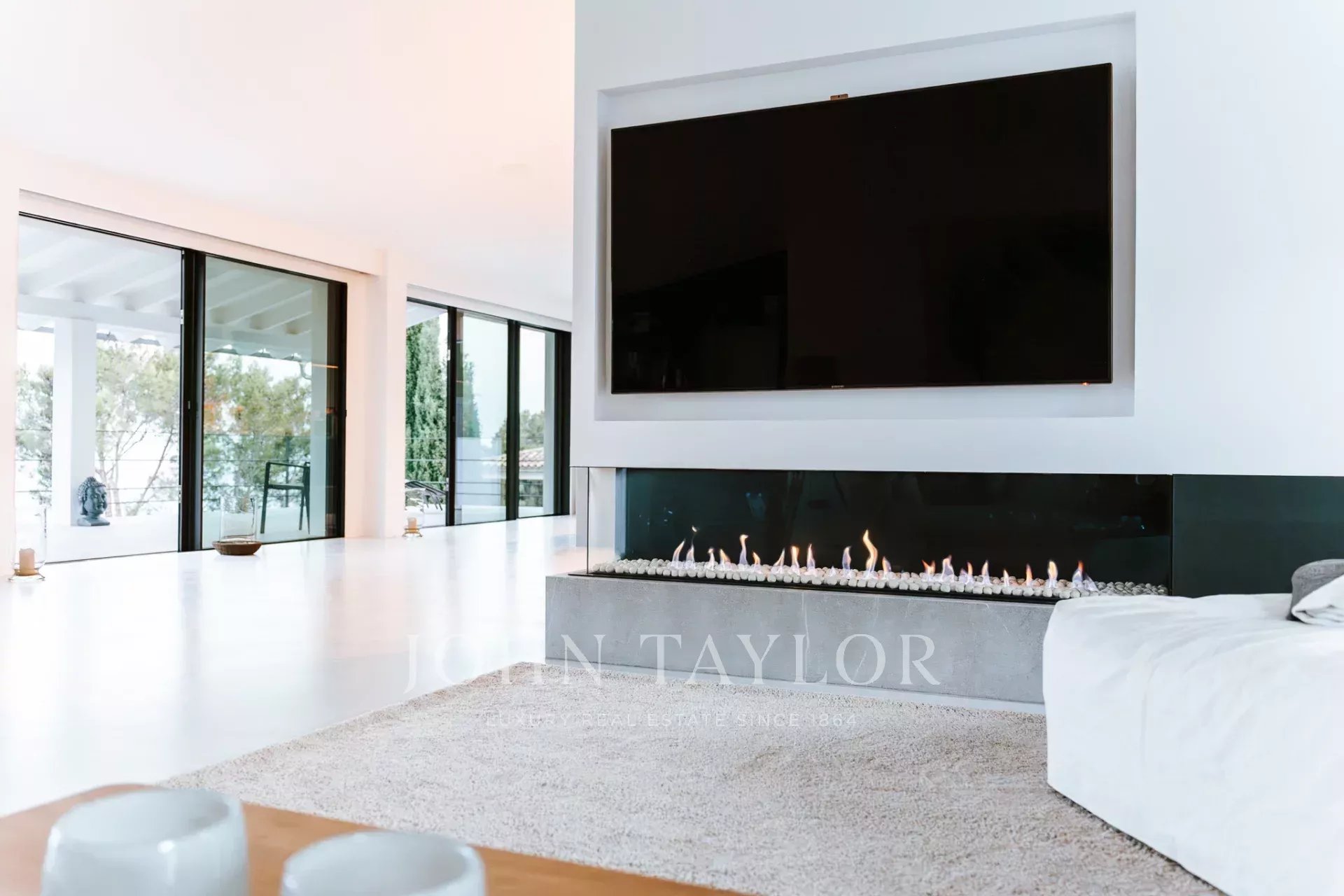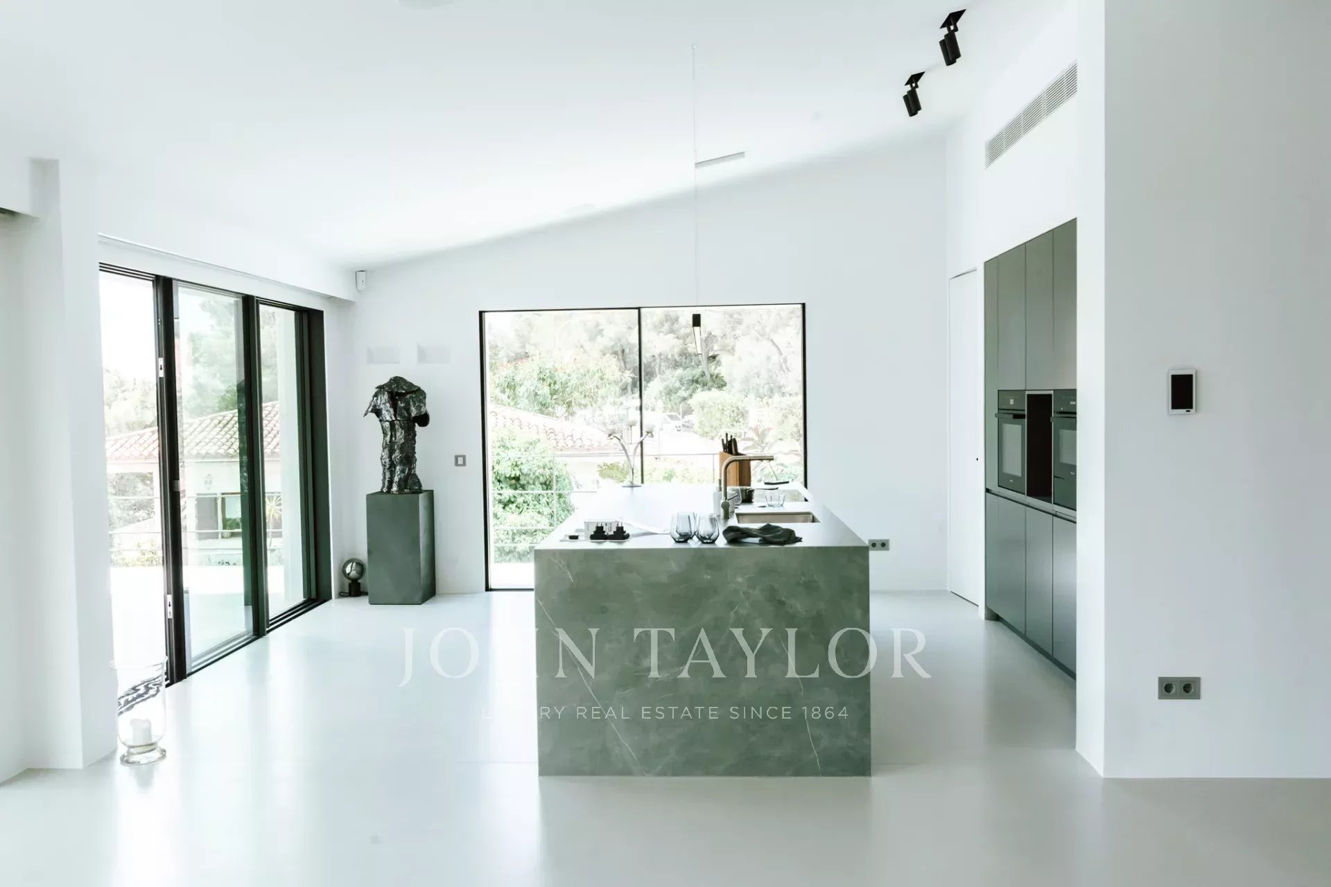 L'equipaggiamento all'avanguardia di questa villa unica comprende riscaldamento a pavimento con due pompe di calore, aria condizionata (freddo/caldo), moderni elementi di finestre strette, pavimenti in microcemento, un impianto fotovoltaico con batteria, un garage con wallbox per auto elettriche, un sistema di allarme, un impianto audio e domotico.