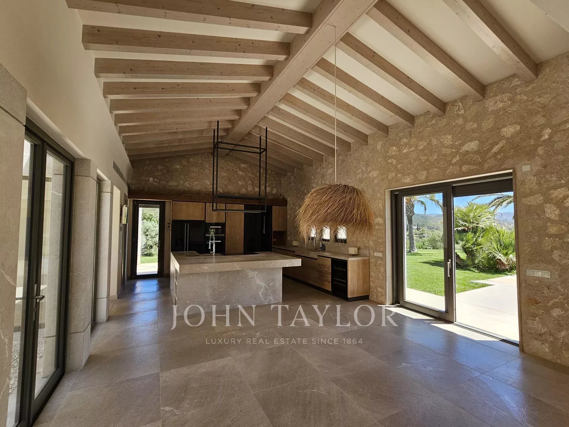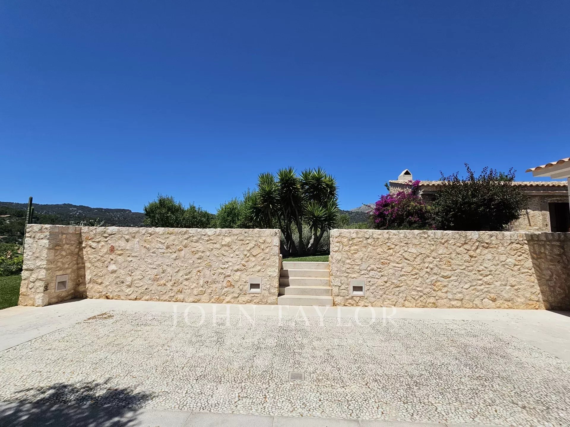 Situata su un ampio terreno sopraelevato vicino al villaggio di Es Capdella, Calvia, questa imponente casa di campagna offre tranquillità, privacy e la comodità dei servizi del villaggio a pochi passi. Progettata con cura e con materiali di alta qualità, questa proprietà su un unico livello presenta due cortili interni che inondano lo spazio di luce naturale e di una fresca brezza. Gli ampi soffitti a volta con travi a vista aumentano la sensazione di spaziosità delle zone giorno, mentre da ogni stanza si può godere di una vista mozzafiato a 360 gradi sulle montagne e sul paesaggio.