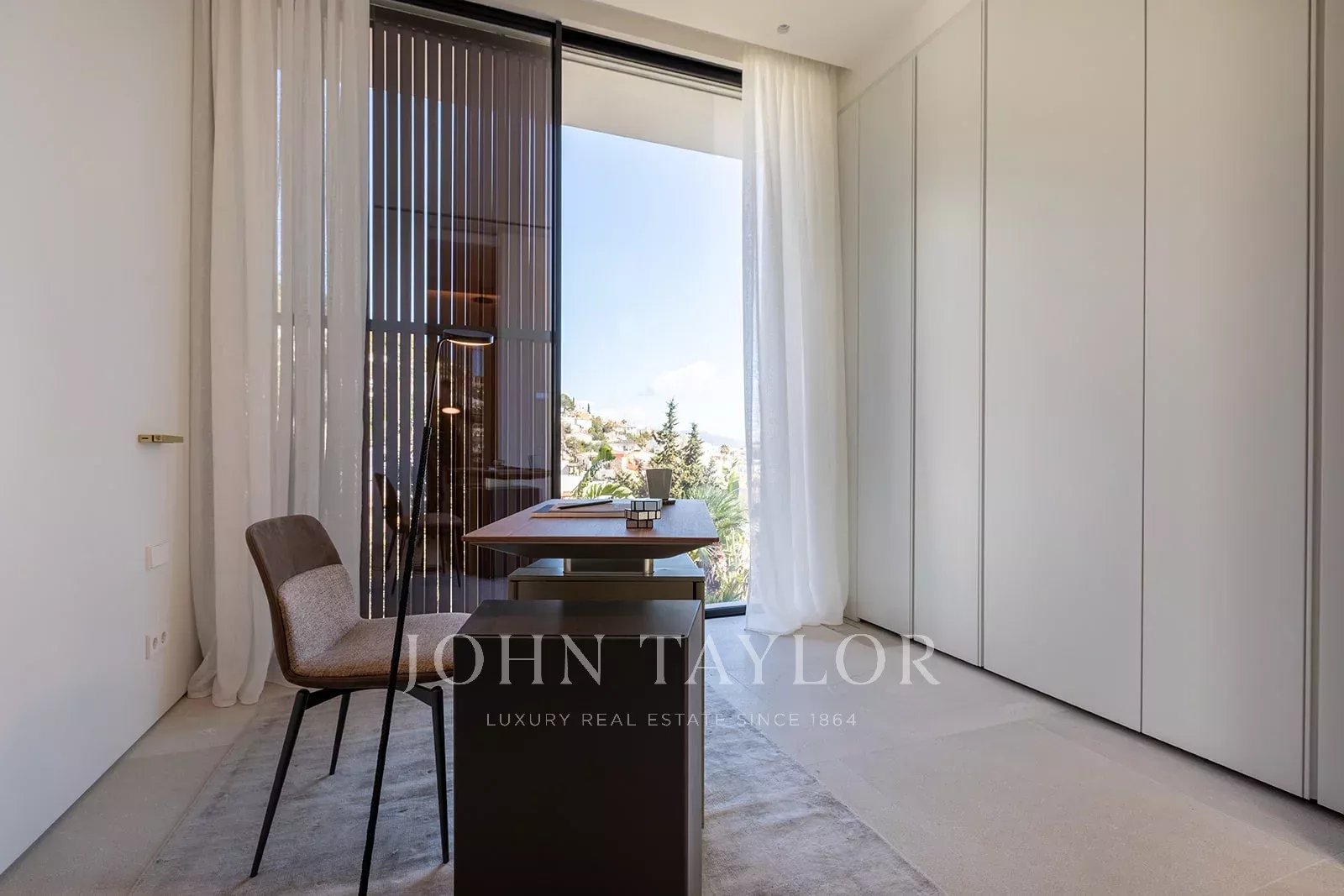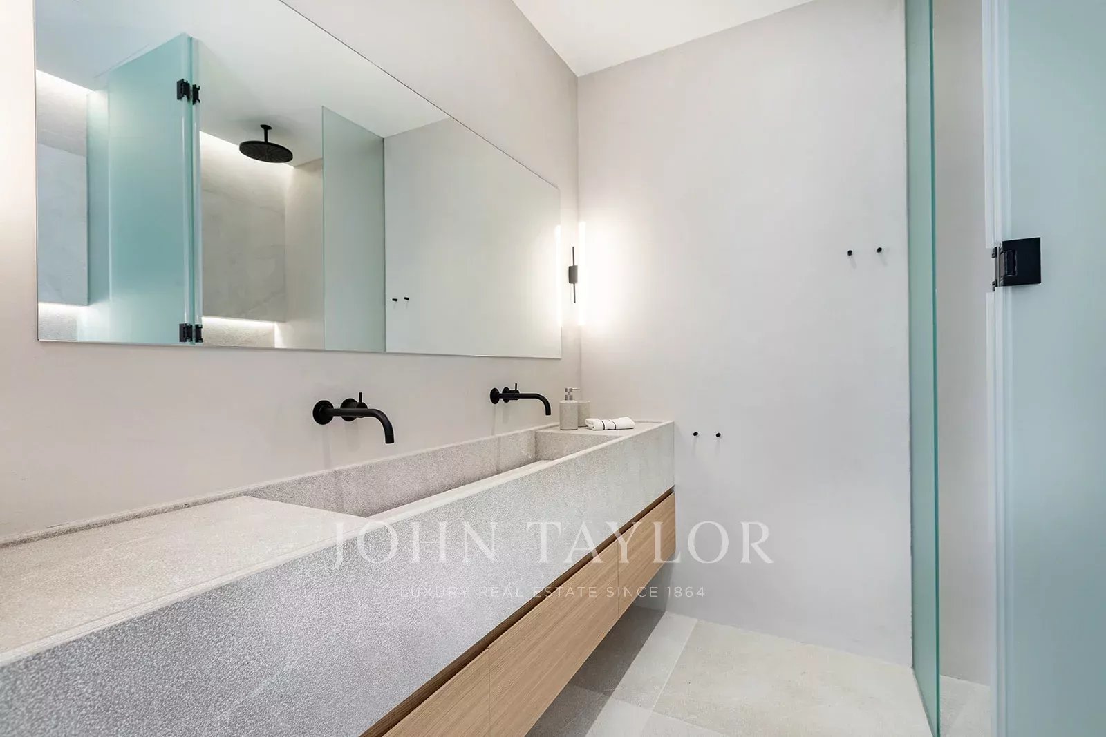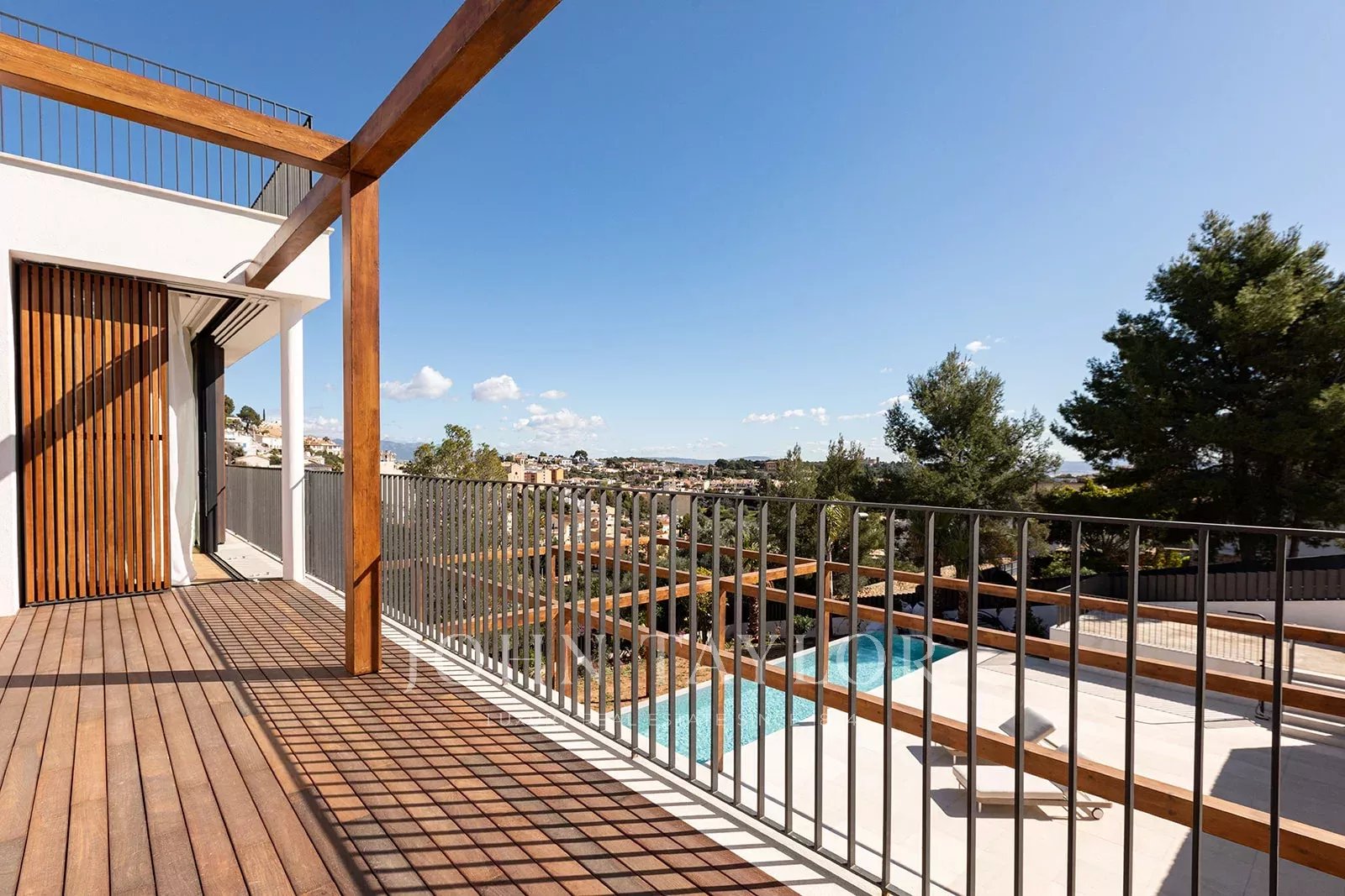 Questa villa contemporanea vanta oltre 400 metri quadrati di spazi abitativi sofisticati che sfumano i confini tra interno ed esterno. I punti salienti di questa eccezionale proprietà includono una piscina privata, ampie terrazze, un atrio centrale che porta la luce naturale all'interno e un parcheggio sotterraneo per tre auto. Costruita su un terreno in leggera pendenza, la proprietà è circondata da giardini paesaggistici con una piscina a sfioro nel punto più basso, terrazze e zone giorno orientate verso le montagne e un interno open concept. L'atrio pieno di piante è il cuore del piano terra e riempie lo spazio di luce naturale. Da esso si dipartono l'ingresso e la scala, una dispensa/ripostiglio, una camera da letto matrimoniale con bagno privato e un'ampia cucina, sala da pranzo e soggiorno open concept, disposti su livelli divisi che corrispondono alle terrazze esterne. I vetri a tutta altezza lungo un lato della zona giorno si affacciano sulla terrazza e sulle aree salotto, sfruttando al massimo il potenziale di vita all'aperto. Il primo piano, accessibile anche tramite una scala esterna, comprende altre tre camere da letto doppie e bagni. Due di queste si affacciano sull'atrio, assicurando molta luce, e hanno accesso a una terrazza condivisa con vista sulla campagna. La costruzione di prima qualità, i materiali più pregiati e gli elettrodomestici di alta qualità saranno utilizzati in questa moderna casa di Maiorca. L'uso continuo di legni chiari, rivestimenti in pietra naturale e un'abbondanza di vetro sia all'interno che all'esterno, lega questa proprietà dal punto di vista estetico, assicurando che sia calda, luminosa e contemporanea, pur godendo di una vicinanza alla natura e di un facile accesso a Palma e alla costa.