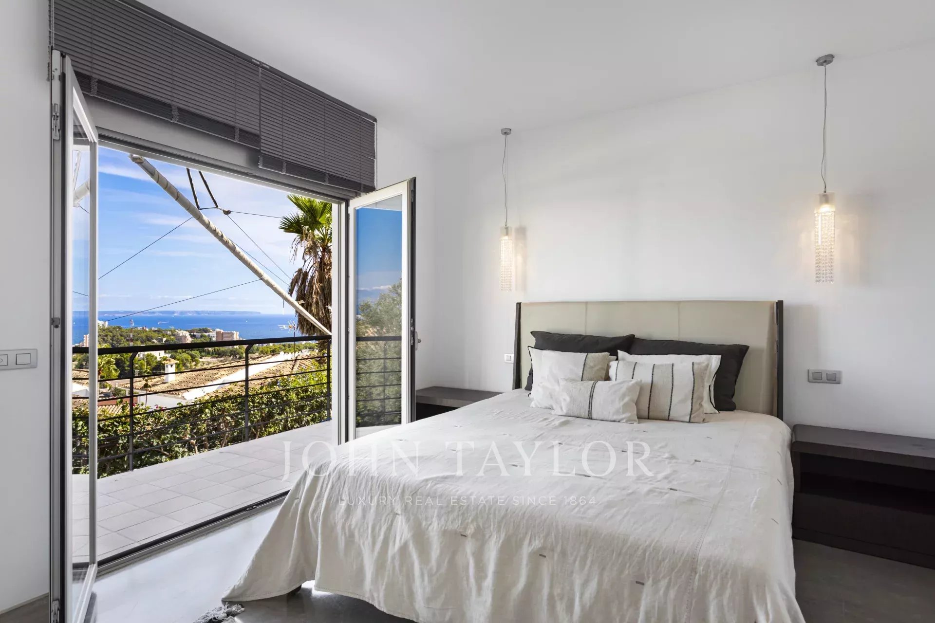 Situata nella parte alta di Génova, questa villa offre qualcosa di veramente raro: una vista panoramica mozzafiato sulla Baia di Palma, il Castello di Bellver, l’isola di Cabrera e il mare aperto. Dall’alba al chiaro di luna, il paesaggio cambia continuamente — uno spettacolo mediterraneo sereno che si può ammirare da ogni terrazza.