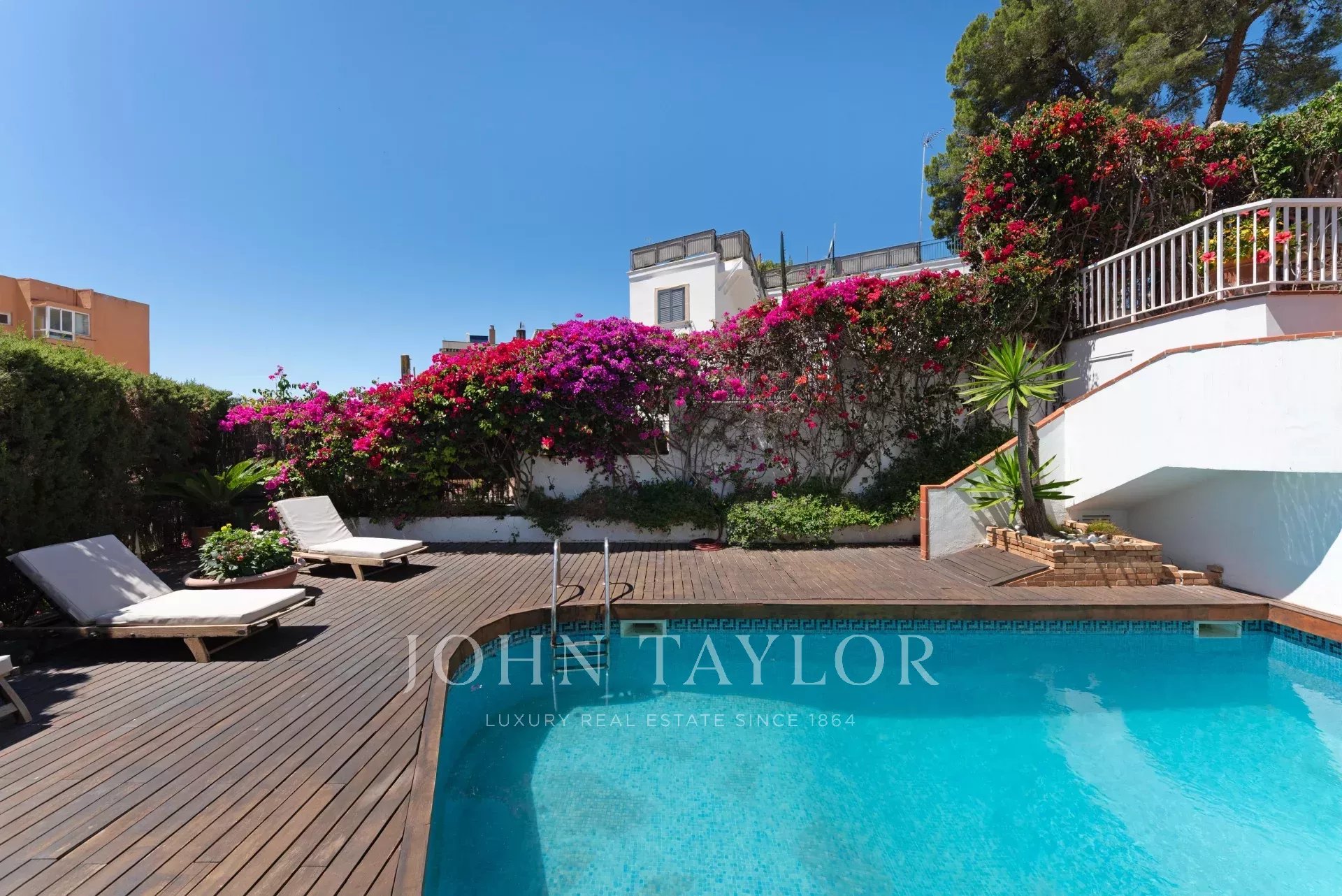 Questa bella casa con vista parziale sul mare, giardino e piscina è ideale per godersi l'aria aperta. La distribuzione su tre piani più garage offre molto spazio e versatilità. Al primo piano si trova un ingresso, un ampio soggiorno-sala da pranzo con terrazza, cucina con zona pranzo, dispensa, zona lavanderia. Dispone di 2 camere da letto, una delle quali con bagno privato e spogliatoio, oltre a un'ampia toilette. Il piano superiore è composto da un soggiorno, 2 camere da letto, 1 bagno e 1 terrazza. Il piano inferiore dispone di una sala TV con camino a gas, 2 camere da letto, 1 bagno e un'altra stanza, tutte con accesso alla terrazza e al giardino con piscina. Il seminterrato offre un ampio spazio per diverse auto.