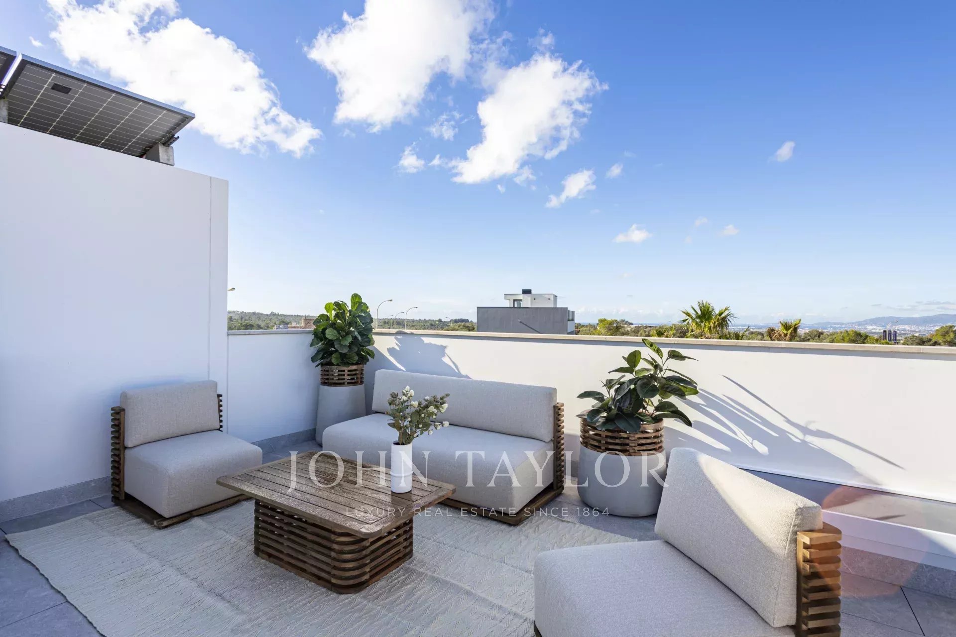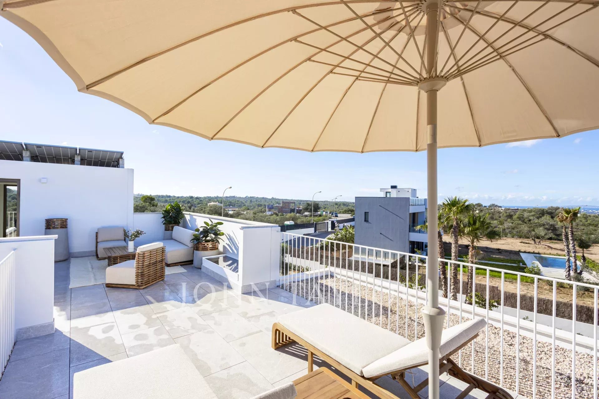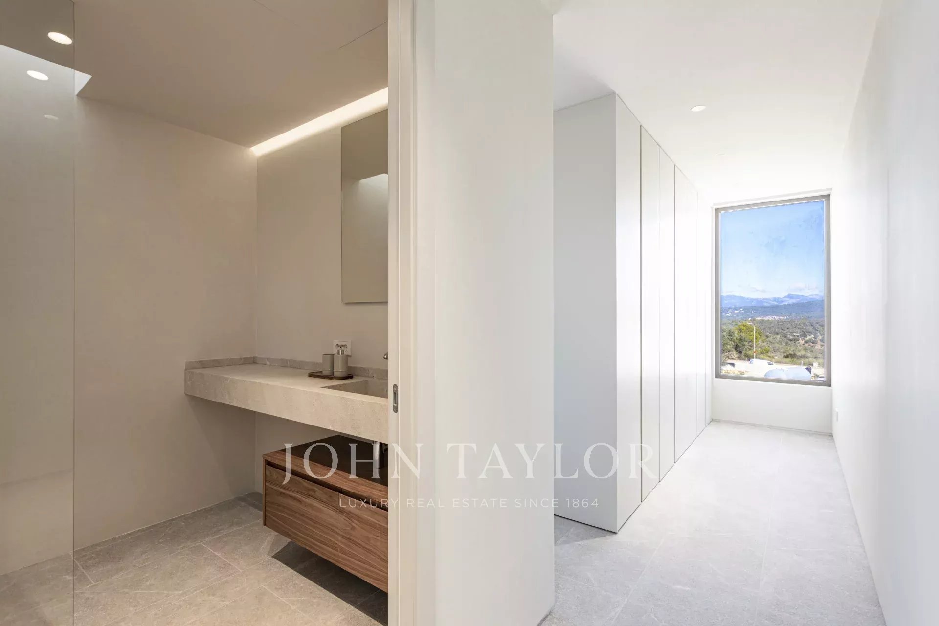 Il seminterrato della villa comprende un ampio garage, una lavanderia, una sala cinema e una palestra, per offrire il massimo della comodità e del comfort. L'imponente terrazza sul tetto offre una vista mozzafiato sulle montagne Tramuntana e sul mare, con uno spazio predisposto per una cucina all'aperto, ideale per cenare all'aperto.